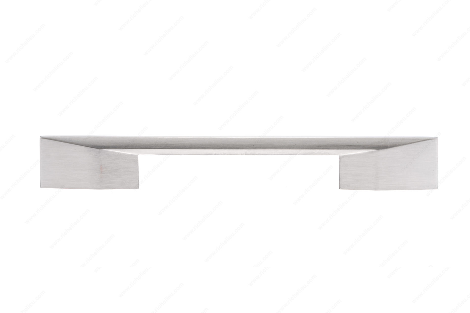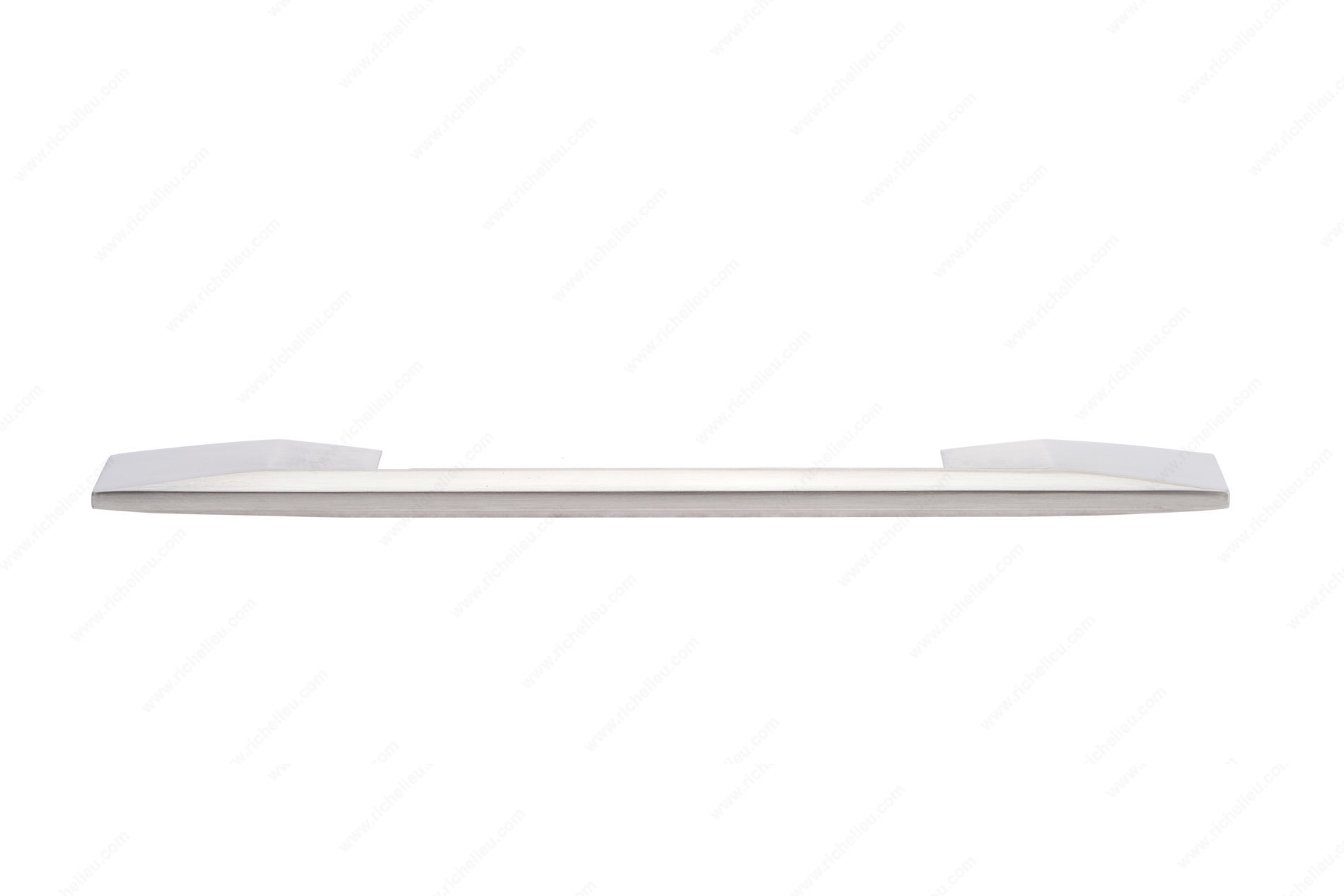 Richelieu 687160195 Modern Metal Pull - 687 enhances both furniture and cabinetry with its striking modern design. This multifaceted pull features wide posts, providing not just aesthetic appeal but also a comfortable grip, making it an ideal choice for contemporary interiors. Measuring 9 7/16 inches in overall length, with a sleek 7/16-inch width and a projection of 1 1/4 inches, it is perfectly suited for a variety of applications. Constructed from durable Zamac, this pull is finished in brushed nickel, complemented by a sophisticated gray and chrome color scheme that fits seamlessly into the Fusion Collection. The adjustable center-to-center dimensions range from 6 5/16 to 7 9/16 inches, offering versatility for different installations. Each pull is supplied with M4 screws, ensuring a straightforward installation process. Whether you are upgrading kitchen cabinets or refreshing furniture pieces, the Richelieu Modern Metal Pull is a stylish choice that combines functionality with a contemporary flair. Its robust construction and elegant finish make it a reliable addition to any project, appealing to both building professionals and discerning homeowners alike.