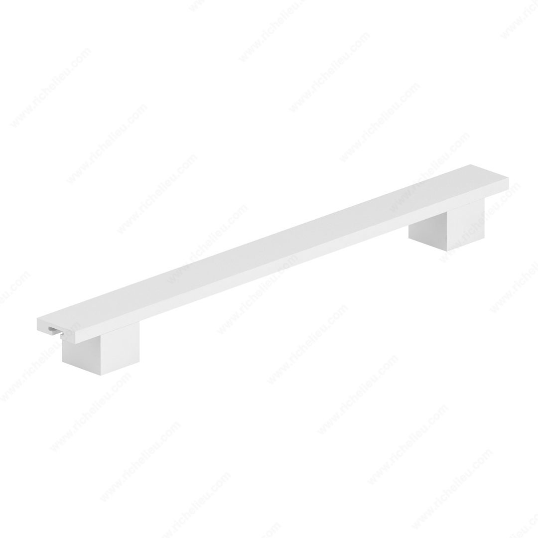 Richelieu 6899224300 Modern Metal Pull - 6899 is a chic and versatile addition to any contemporary space. This pull features adjustable posts that accommodate various center-to-center options, making it a flexible choice for a range of cabinetry and furniture. With an overall length of 11 1/8 inches and a projection of 1 1/32 inches, it provides a comfortable grip while maintaining a sleek profile. Crafted from durable zamak, this pull is finished in a stylish matte white that complements modern design aesthetics. The minimalist design, with a width of 31/32 inches, ensures it seamlessly integrates with various decor styles, from sleek kitchens to elegant bathroom cabinetry. The pull is part of the New Collection, showcasing Richelieu's commitment to innovation and quality. Installation is straightforward, as the necessary M4 screws are included. Whether you are a building professional or a knowledgeable homeowner, the Richelieu Modern Metal Pull enhances functionality while adding a touch of sophistication to your spaces. With its ability to ship via UPS, it’s an easy choice for anyone looking to elevate their interior design with contemporary hardware.