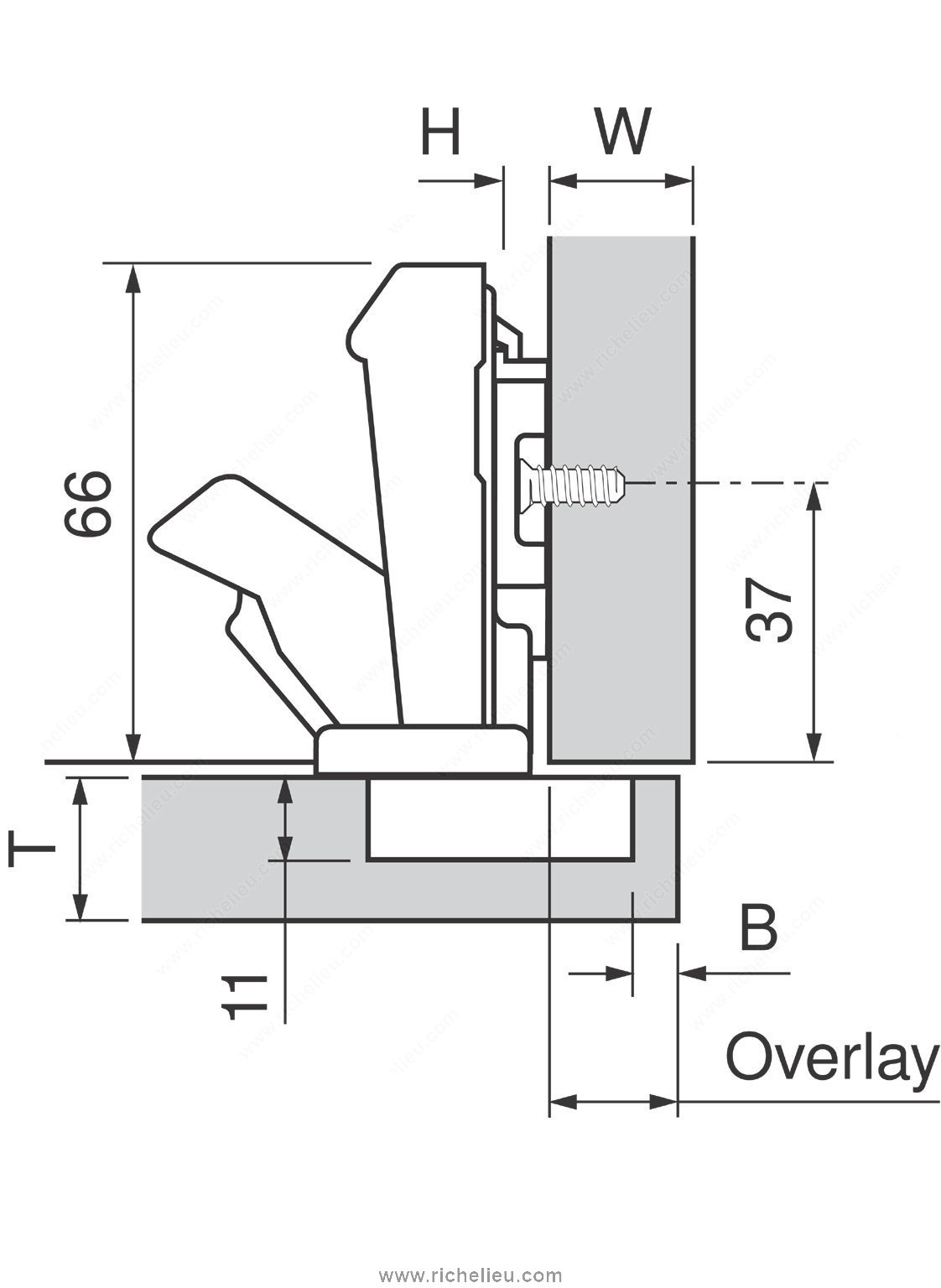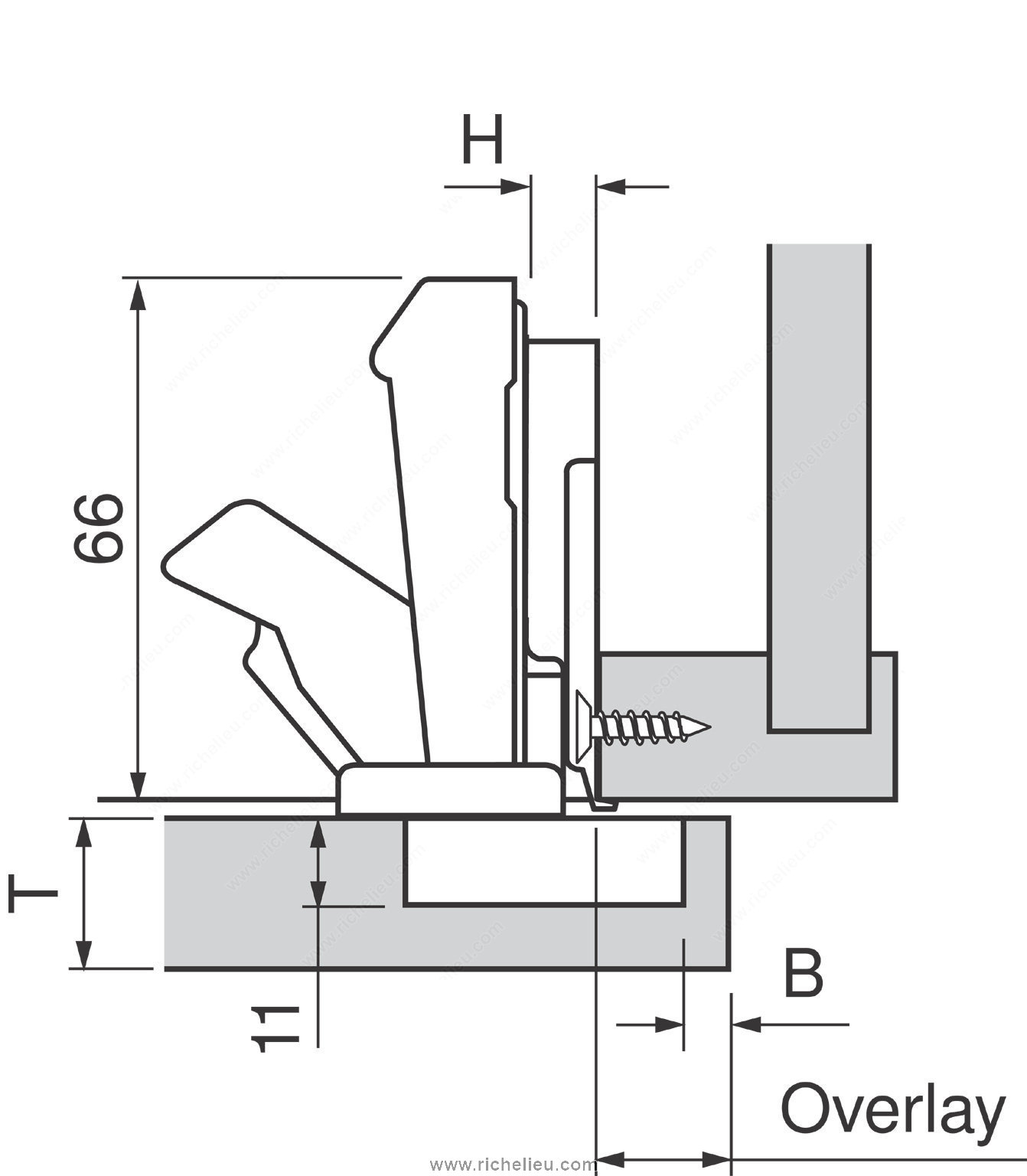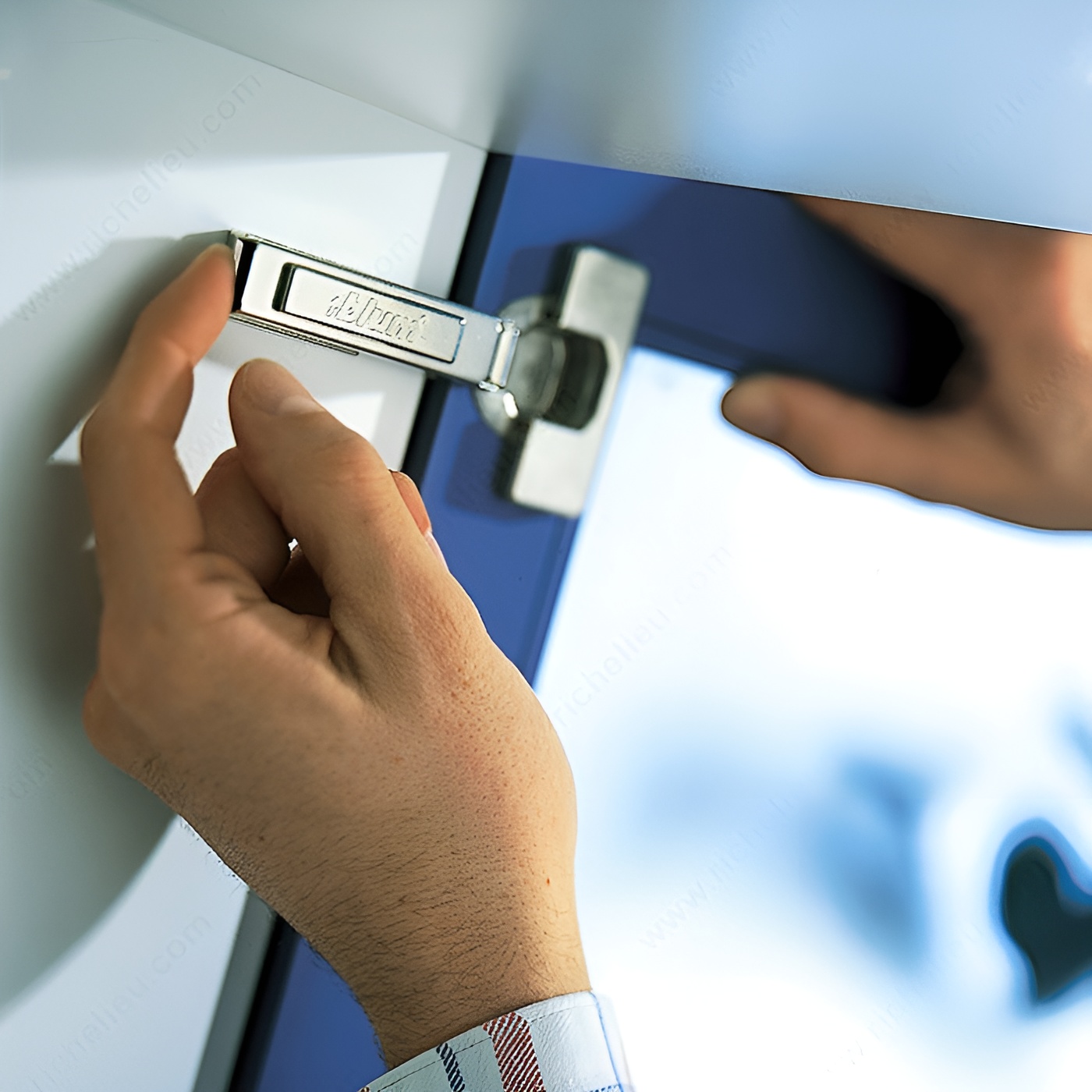 Richelieu 70T654180 CLIP top Hinge 170 offers a sophisticated solution for concealed cabinet door applications. Designed to remain invisible when the door is closed, these hinges are perfect for maintaining a sleek and modern aesthetic in both frameless and face frame cabinets. The hinge accommodates a minimum cabinet and door thickness of 5/8 inch, ensuring compatibility with various setups. With a remarkable opening angle of +170°, this hinge allows for easy access and functionality, making it an ideal choice for bi-fold door systems. The versatile Inserta fixing type simplifies installation, while the milling specifications of 13/32 inch depth and 1 3/8 inch diameter provide precise fitting for optimal performance. Crafted from durable steel and Zamac, the Richelieu CLIP top hinge boasts a free swing mechanism that enhances usability. For added convenience, it can be upgraded with the soft-closing BLUMOTION feature, providing a gentle and quiet closure that is both flexible and reliable. Whether you are a building professional or a discerning homeowner, the Richelieu 70T654180 CLIP top Hinge 170 is designed to meet your high standards for quality and functionality, ensuring your cabinets operate smoothly for years to come.