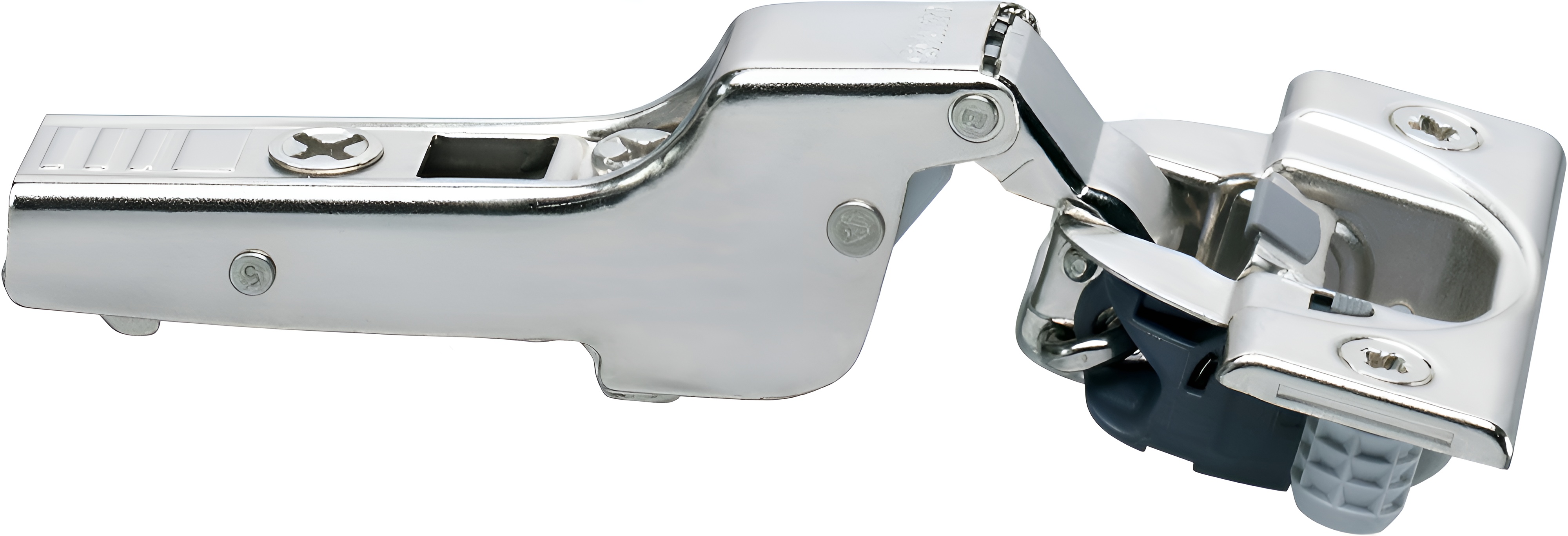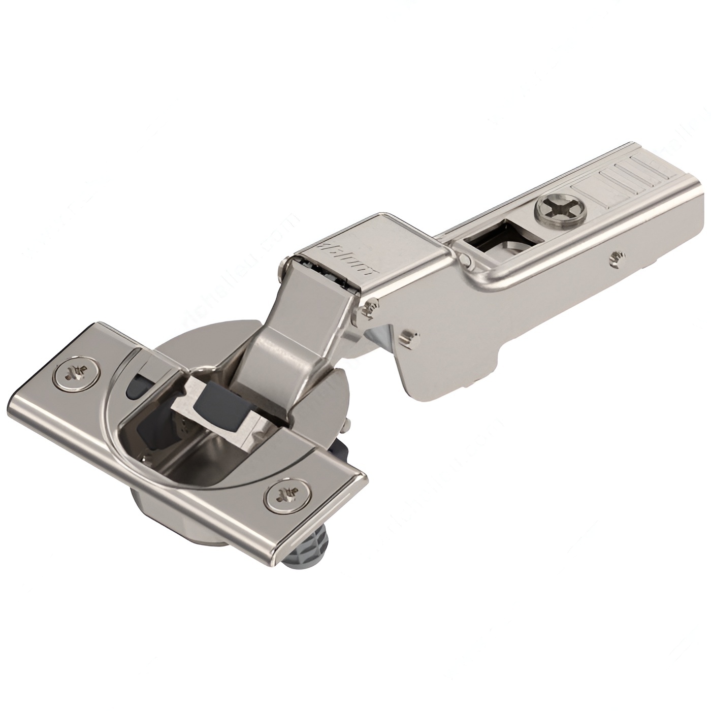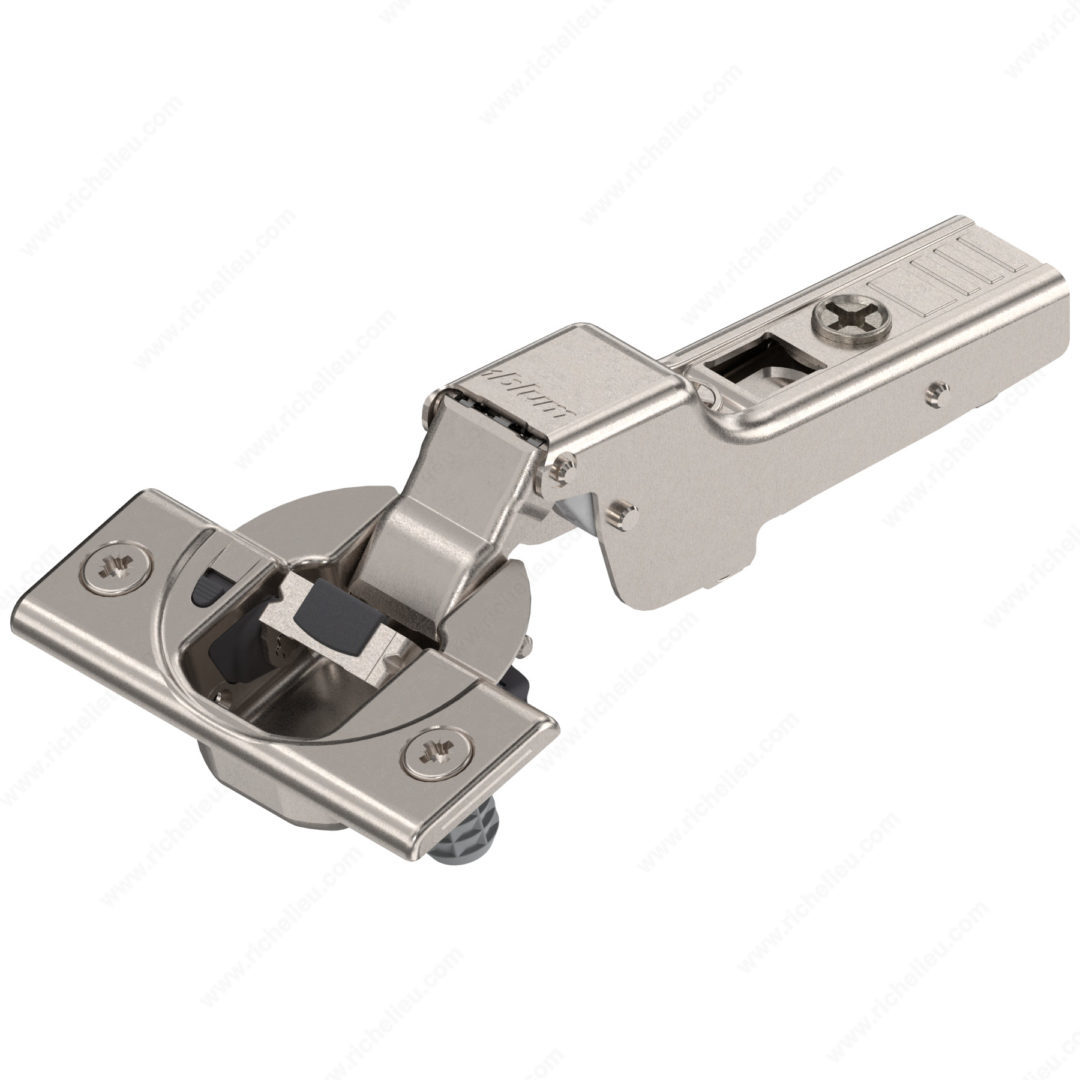 Richelieu 71B368180 CLIP top BLUMOTION - Hinge 110 offers a seamless blend of precision engineering and elegant functionality, making it an ideal choice for modern cabinetry. This hinge features an integrated BLUMOTION system that ensures your furniture doors close silently and effortlessly, enhancing the overall user experience. Designed to endure at least 200,000 cycles of opening and closing, this hinge promises to maintain its compelling motion quality throughout the lifetime of your furniture. Crafted from durable steel and finished in a sleek nickel, the hinge is suitable for frameless cabinet types with a minimum cabinet and door thickness of 5/8 inch. Its self-closing mechanism guarantees that doors close securely, while the hinge opening angle of +110° provides ample access to cabinet interiors. The CLIP top design simplifies installation with a knock-in fixing type, making it user-friendly for both professionals and skilled DIYers. The milling depth of 1/2 inch and diameter of 1 3/8 inches ensure compatibility with various cabinetry designs. Packaged per unit in industrial packaging, the Richelieu 71B368180 is ready for immediate use. Elevate your cabinetry with this reliable and sophisticated hinge solution.