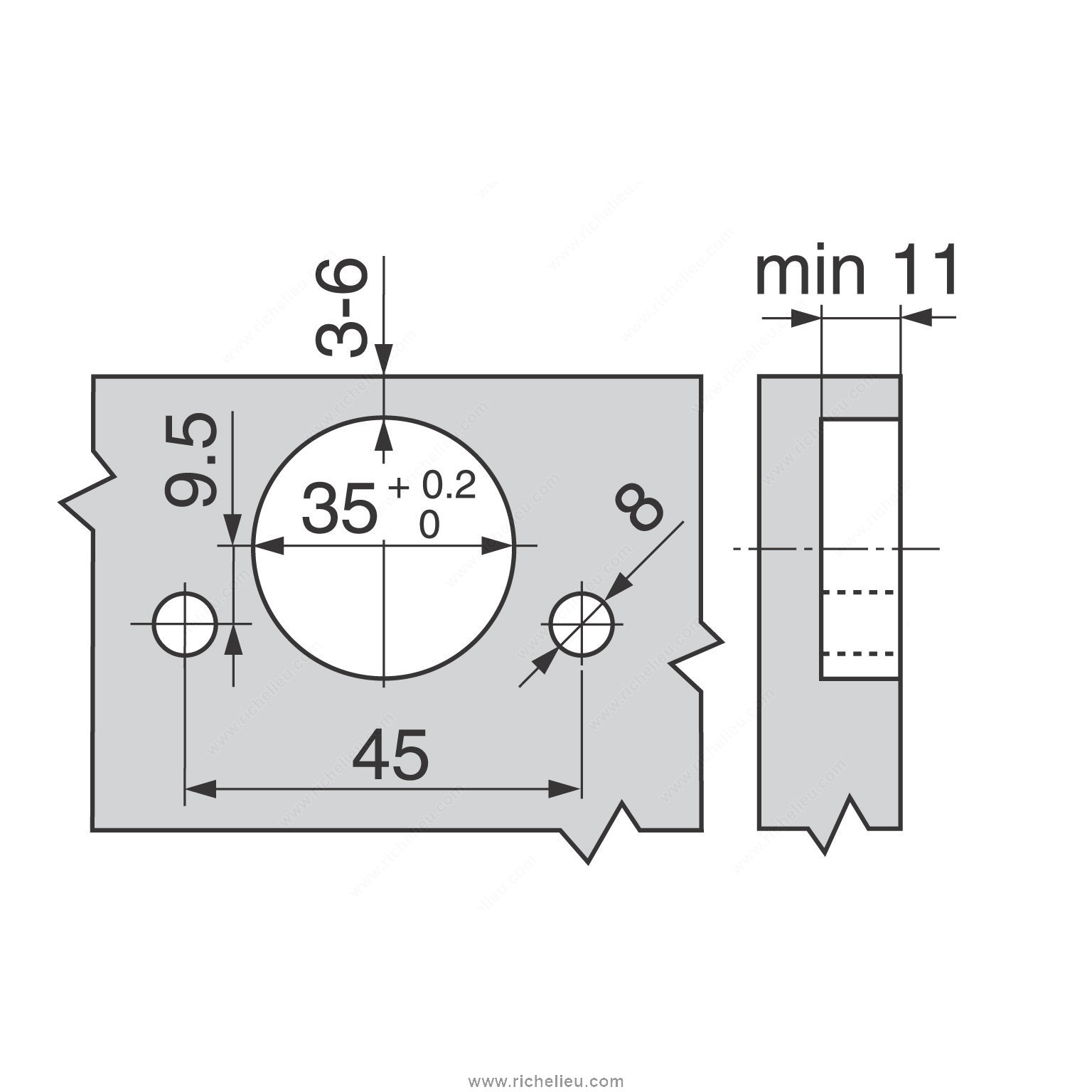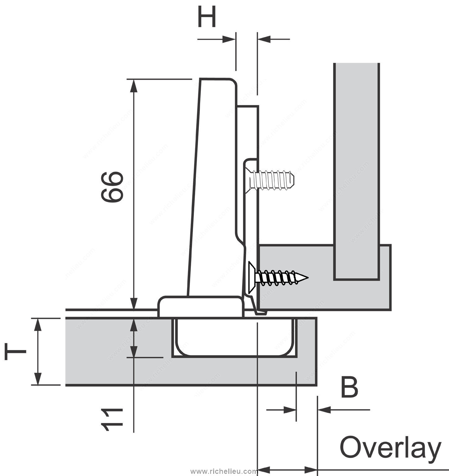 Richelieu 71M259180 CLIP Hinge – 100 is designed for ease of use and superior functionality in frameless cabinetry. Its ergonomic design ensures simple handling, making installation a breeze for professionals and DIY enthusiasts alike. The unique Inserta fixing mechanism allows for rapid and secure connections to the mounting plate, enhancing efficiency during assembly. This hinge is tailored for full overlay doors with a minimum thickness of 5/8 inches, ensuring a seamless fit and optimal aesthetic appeal. With a generous hinge opening angle of +100°, it provides wide access, making it ideal for standard doors. The spring closing mechanism adds convenience by automatically returning the door to a closed position, promoting a tidy finish. For installation, the milling depth required is 13/32 inches with a milling diameter of 1 3/8 inches, allowing for precise fitting within the cabinet structure. This product ships via UPS and is packaged individually for ease of handling. Richelieu's commitment to quality and innovation shines through in this hinge, making it an essential component for any cabinetry project. Choose the Richelieu 71M259180 CLIP Hinge for a reliable solution that combines functionality and style seamlessly.