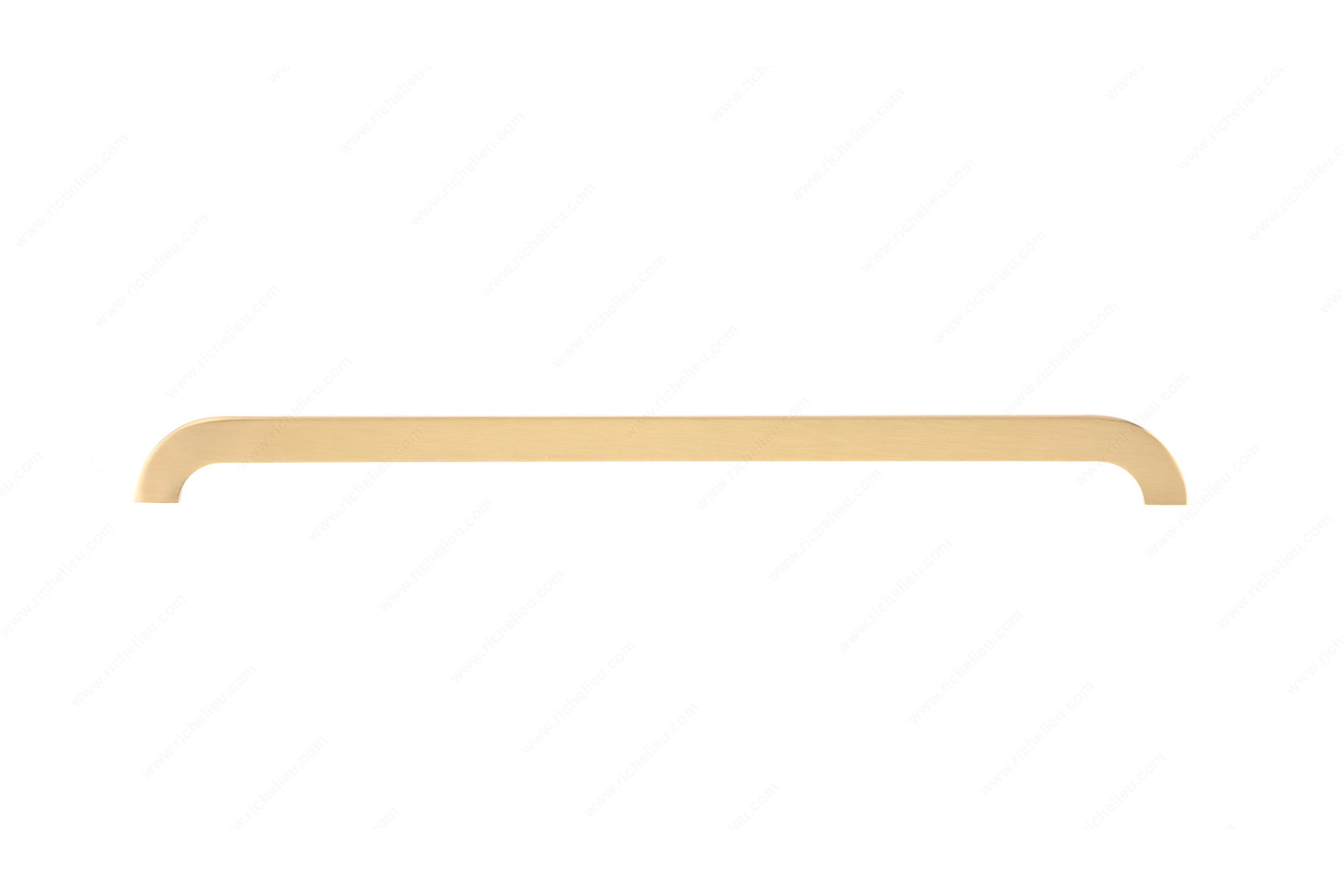 Richelieu 7381448165 Modern Metal Pull - 7381 showcases a striking design that marries functionality with contemporary elegance. With a center-to-center measurement of 17 5/8 inches, this pull is perfectly suited for a range of modern cabinetry and furniture applications. Crafted from durable aluminum, it features a brushed gold finish that adds a touch of luxury to any space, while the radiant yellow and brass color scheme enhances its aesthetic appeal. The overall dimensions of this pull are 18 3/8 inches in length, 1/4 inch in width, and a projection of 1 9/16 inches, making it easy to grip and operate. The clean lines and rounded corners create a sophisticated profile, ensuring it complements both minimalist and bold designs effortlessly. Installation is straightforward as it comes with M4 screws included, facilitating a secure fit. This pull is part of the complete 7381 collection, allowing for cohesive design integration throughout your project. Whether you're updating a kitchen, bathroom, or any cabinetry, the Richelieu 7381448165 Modern Metal Pull elevates the look and feel of your interiors with its refined style and robust construction. Choose this pull for a perfect blend of modern charm and practicality.