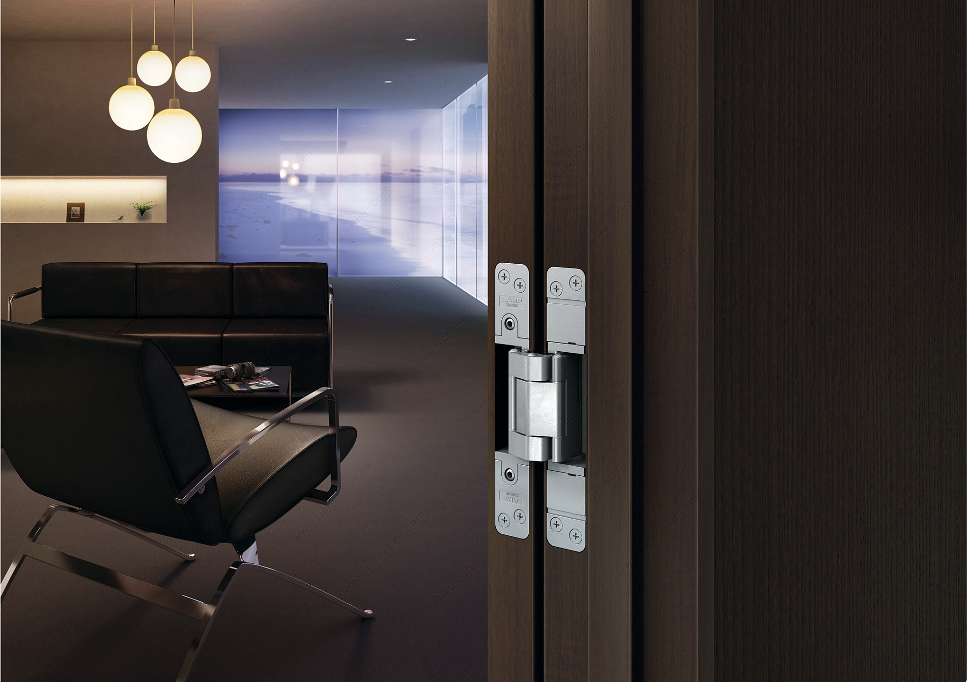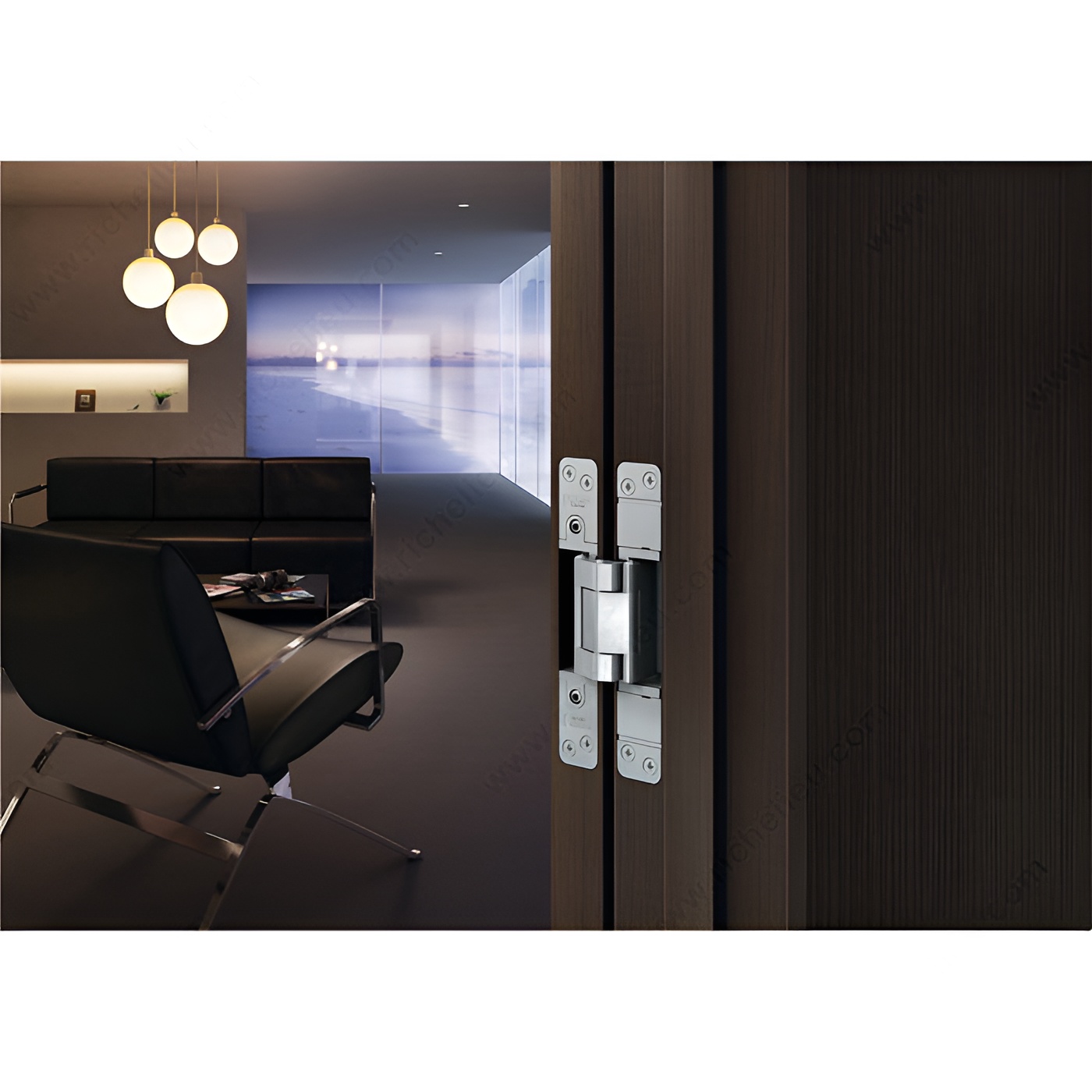 Richelieu 75319090 3-Axis Adjustable Concealed Hinge offers a sleek and efficient solution for wood door applications. Crafted from durable zinc alloy with a sophisticated black finish, this hinge seamlessly integrates into modern design aesthetics while providing robust functionality. With the ability to support a maximum weight capacity of 220 lb when using two hinges, or 276 lb with three, it ensures stability and smooth operation for heavier doors. The hinge is designed with a minimum door thickness of 1 7/16 inches, making it suitable for a variety of installations in both residential and commercial settings. Included with the hinge are stainless steel flat-headed screws, featuring painted screw heads for a polished look that complements the hinge's design. The 3-axis adjustability allows for precise alignment and easy installation, ensuring that your doors operate smoothly and close securely. Richelieu's commitment to quality is evident in this product, making it an ideal choice for builders, architects, and discerning homeowners looking for reliable hardware that doesn't compromise on style. Whether you're upgrading existing doors or embarking on a new project, the 75319090 hinge stands out as a testament to innovative engineering and design excellence.