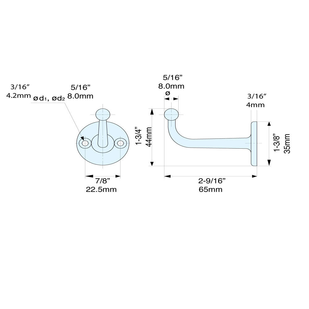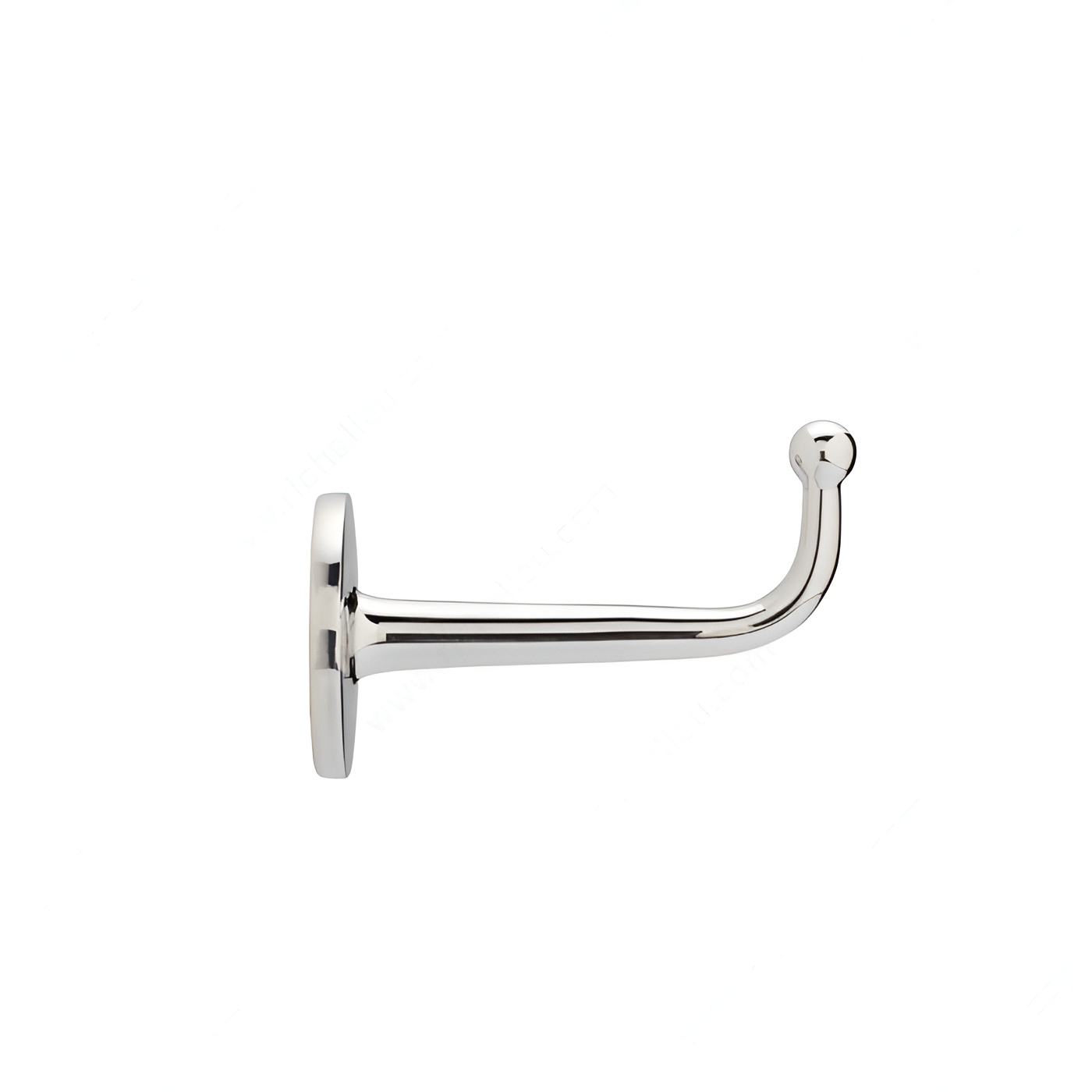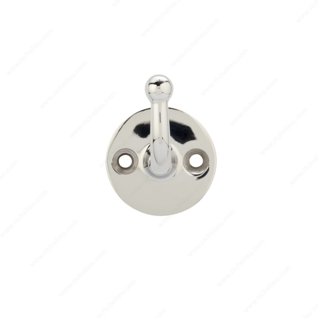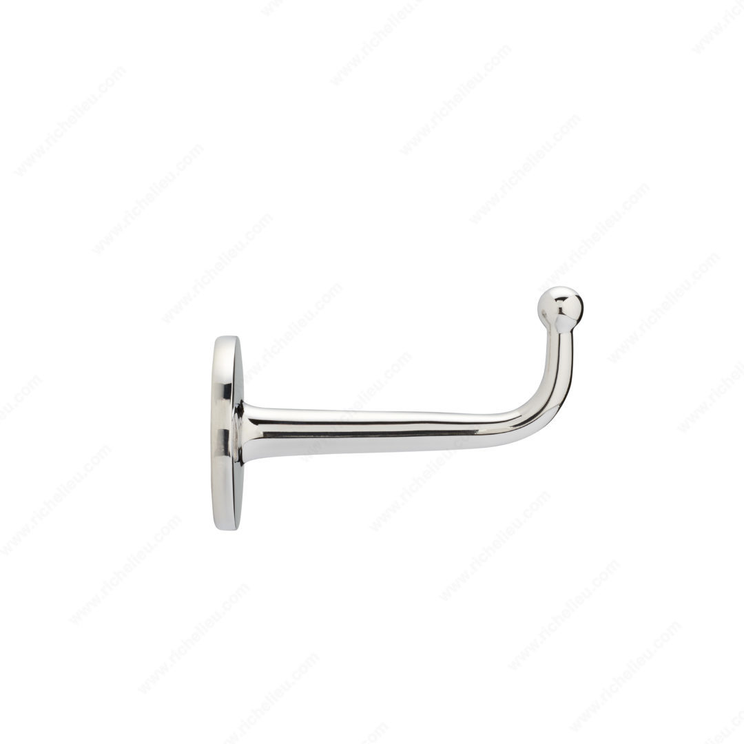 Richelieu 75720171 Utility Stainless Steel Hook is a versatile solution designed for small spaces, making it an ideal addition to any home or workspace. Crafted from durable 304 stainless steel with a polished finish, this hook not only provides functionality but also enhances the aesthetic appeal of your environment. Its sleek gray and chrome color scheme seamlessly integrates with a variety of décor styles. This simple hook features a ball end, which ensures that items are securely held in place. With a load capacity of 22 lbs, it is perfect for hanging coats, bags, or tools. For optimal performance, it is recommended to mount the hook directly to wall studs, typically found at 16" intervals. If stud mounting is not feasible, appropriate drywall anchors should be utilized, as the included plastic anchors may not be suitable for all wall types. Measuring 1 23/32 inches in height, 1 3/8 inches in width, and projecting 2 9/16 inches from the wall, this hook’s compact dimensions allow it to fit effortlessly into tight spaces. Each hook comes with wood screws included for easy installation, ensuring that you can quickly and securely add this utility hook to your space. Choose the Richelieu 75720171 for a reliable and stylish hanging solution.