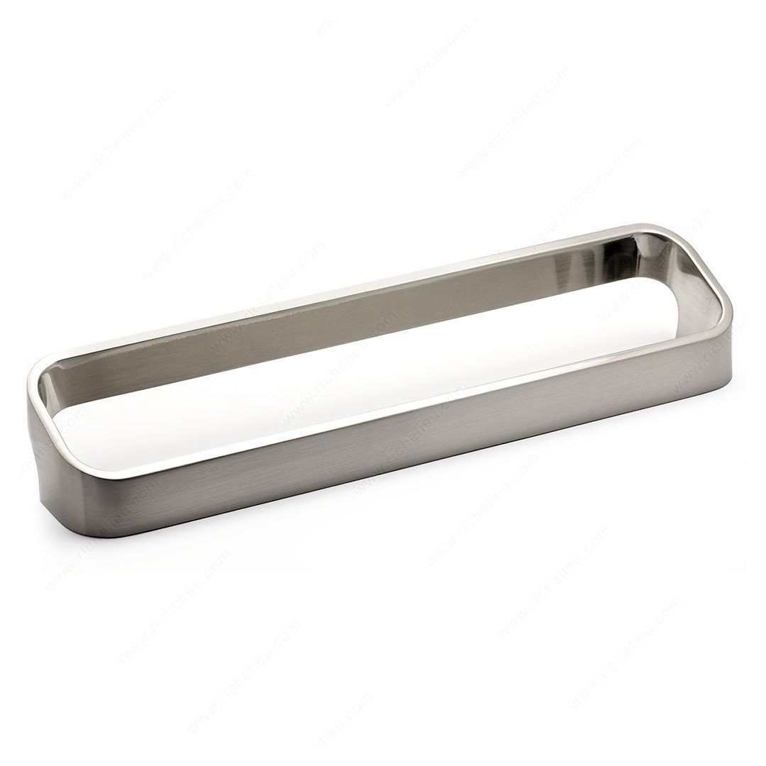 Richelieu 77150224195 Modern Metal Pull offers a sophisticated touch to any cabinetry or furniture piece, combining style with functionality. This sloped rectangular pull features a unique cutout center and rounded corners, creating a refined elegance that enhances contemporary designs. Measuring 9 1/4 inches in overall length and 2 1/8 inches in width, this pull provides a comfortable grip while adding a modern flair to your interiors. The brushed nickel finish, with a finish number of 195, complements the sleek gray and chrome color palette, ensuring it fits seamlessly into various design schemes. With a center-to-center measurement of 8 13/16 inches, the pull is ideal for standard cabinet configurations. It boasts an overall projection of 1 17/32 inches, striking the right balance between aesthetics and usability. Each pull comes with M4 screws included for easy installation, allowing you to upgrade your furniture with minimal effort. Crafted from durable metal, this pull is built to withstand daily use while maintaining its stylish appearance. Perfect for both building professionals and discerning homeowners, Richelieu 77150224195 is a standout choice for enhancing any modern space.
