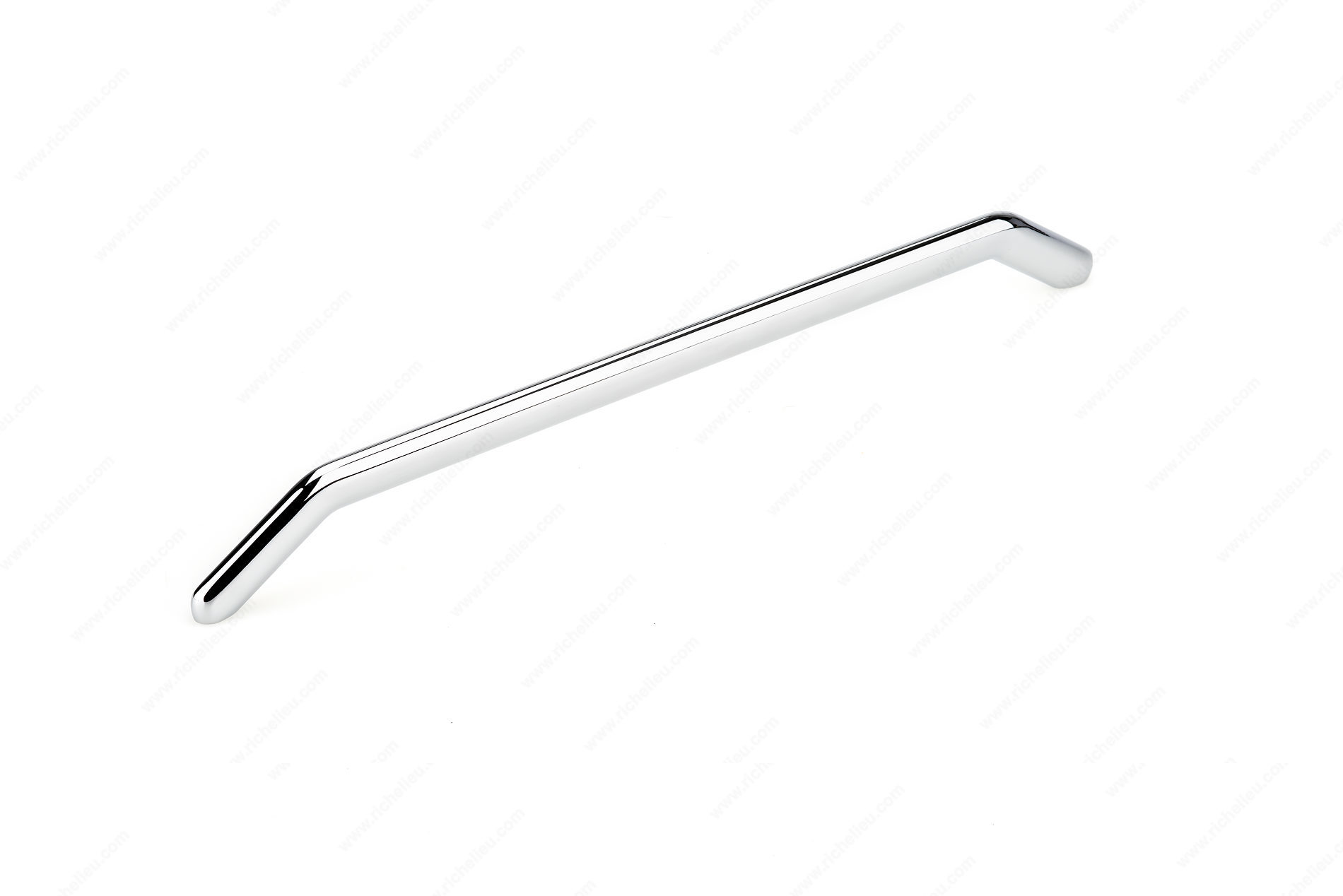 Richelieu 7777320140 Modern Metal Pull - 7777 showcases a trendsetting angled design that effortlessly enhances furniture and décor with a touch of sophistication. Crafted from durable zamak, this pull is not only stylish but also built to last, making it an ideal choice for both residential and commercial settings. With an overall length of 13 1/4 inches and a center-to-center measurement of 12 5/8 inches, this pull fits seamlessly into various cabinetry and furniture styles. Its sleek chrome finish, complemented by a contemporary gray and chrome color combination, adds a modern flair to any space. The pull measures 1 15/32 inches in projection, providing a comfortable grip while maintaining a low-profile aesthetic. Included with the product are M4 screws for easy installation, ensuring that you can enhance your cabinetry without hassle. The Richelieu 7777320140 is part of a new collection, demonstrating a commitment to modern design trends while prioritizing functionality. Whether you're upgrading your kitchen, bathroom, or office, this modern pull is the perfect finishing touch that balances elegance and practicality. Elevate your interiors with this stunning addition that speaks to quality and style.