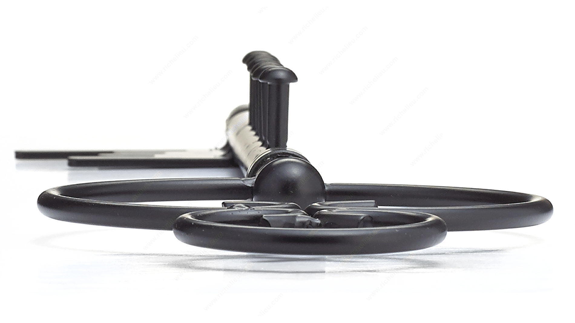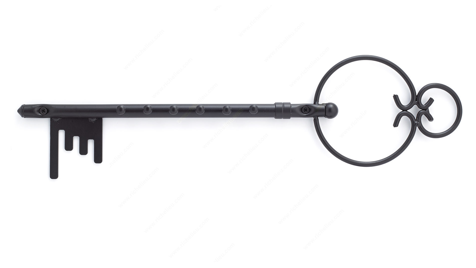 Richelieu 78029R Utility Key Hook - 770 offers a striking blend of functionality and style, making it an ideal addition to any entryway. Crafted from durable forged iron, this large wrought iron key hook not only showcases a timeless black finish but also holds a load capacity of up to 22 pounds, ensuring it can accommodate keys and other lightweight items with ease. Measuring 4 5/32 inches in height, 16 7/8 inches in width, and featuring a projection of 1 5/16 inches, the multiple hook design allows for ample storage without taking up too much space. Each unit comes packaged with screws included, simplifying installation and making it a convenient choice for both building professionals and homeowners. The utility hook's classic black color and robust construction add a touch of sophistication to your home while helping you stay organized. Whether you're looking to enhance the functionality of your entryway or simply want to express your personal style, the Richelieu 78029R Utility Key Hook is a perfect choice. With its combination of aesthetic appeal and practical utility, this key hook is sure to make a lasting impression.
