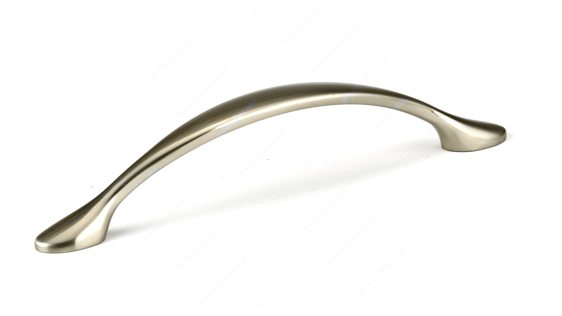 Richelieu 7815195 Traditional Metal Pull offers a classic and elegantly designed gently arched bow pull that enhances the aesthetic of any furniture or cabinetry. With a flared base at each end, this pull not only serves a functional purpose but also adds a touch of sophistication to your spaces. Measuring an overall length of 6 7/32 inches and a center-to-center distance of 5 1/32 inches, it is perfectly sized for various applications. The brushed nickel finish provides a sleek look, complemented by its gray and chrome accents, making it a versatile choice for both modern and traditional interiors. Crafted from durable zamak, this pull ensures longevity and strength, while its projection of 1 3/16 inches offers a comfortable grip for everyday use. Designed in a traditional style, the Richelieu 7815195 is packaged per unit and requires an 8/32 inch screw (not included) for installation, making it easy to upgrade your furniture or cabinets. Whether you are a building professional or a knowledgeable homeowner, this pull is an instant and elegant upgrade that will enhance the overall look and feel of your space. Choose Richelieu for quality and style in your hardware solutions.