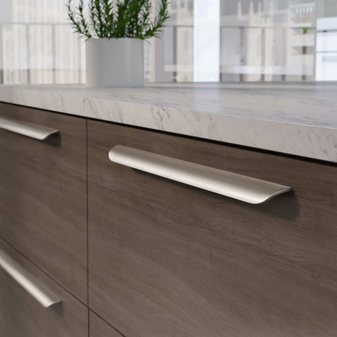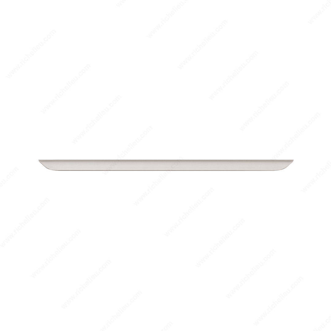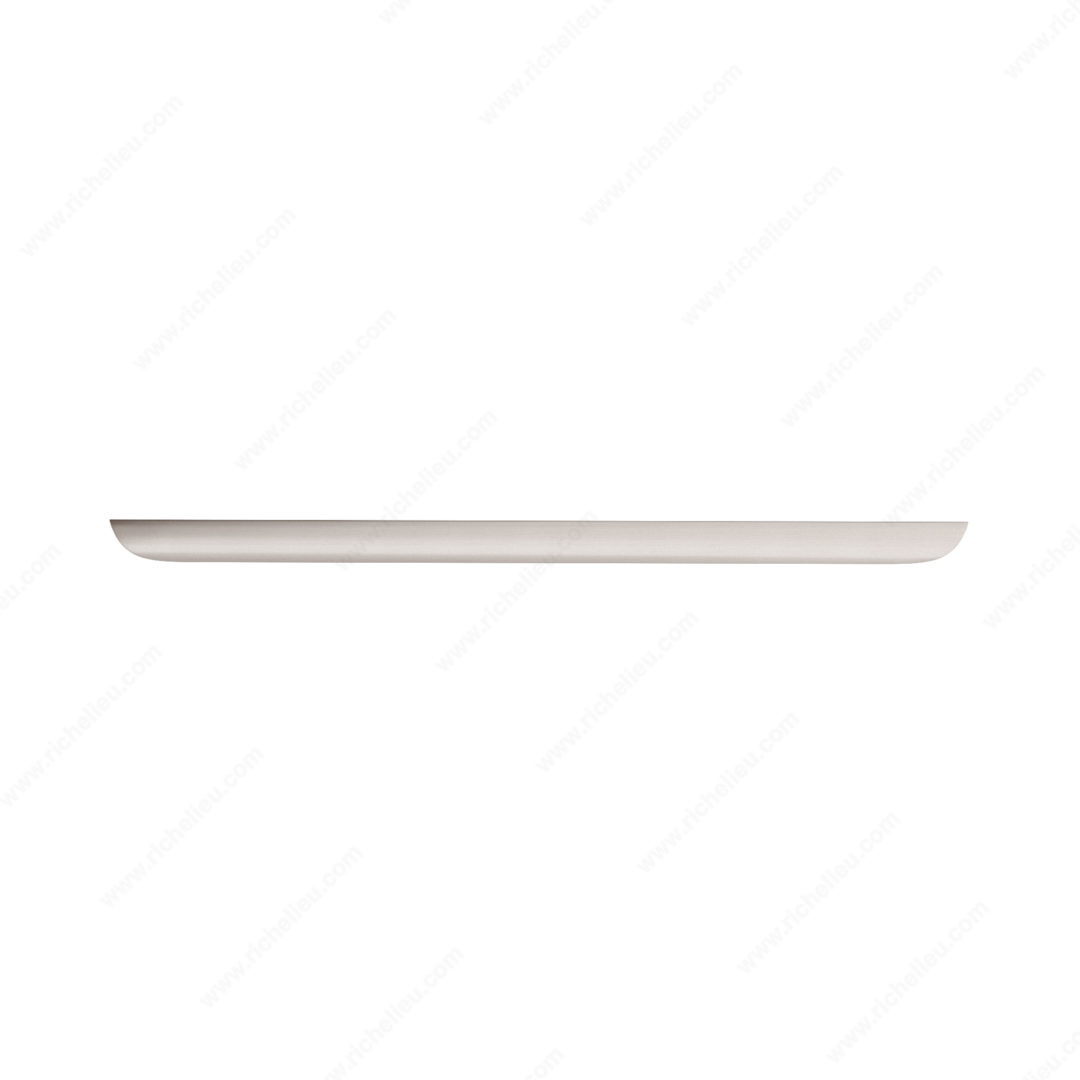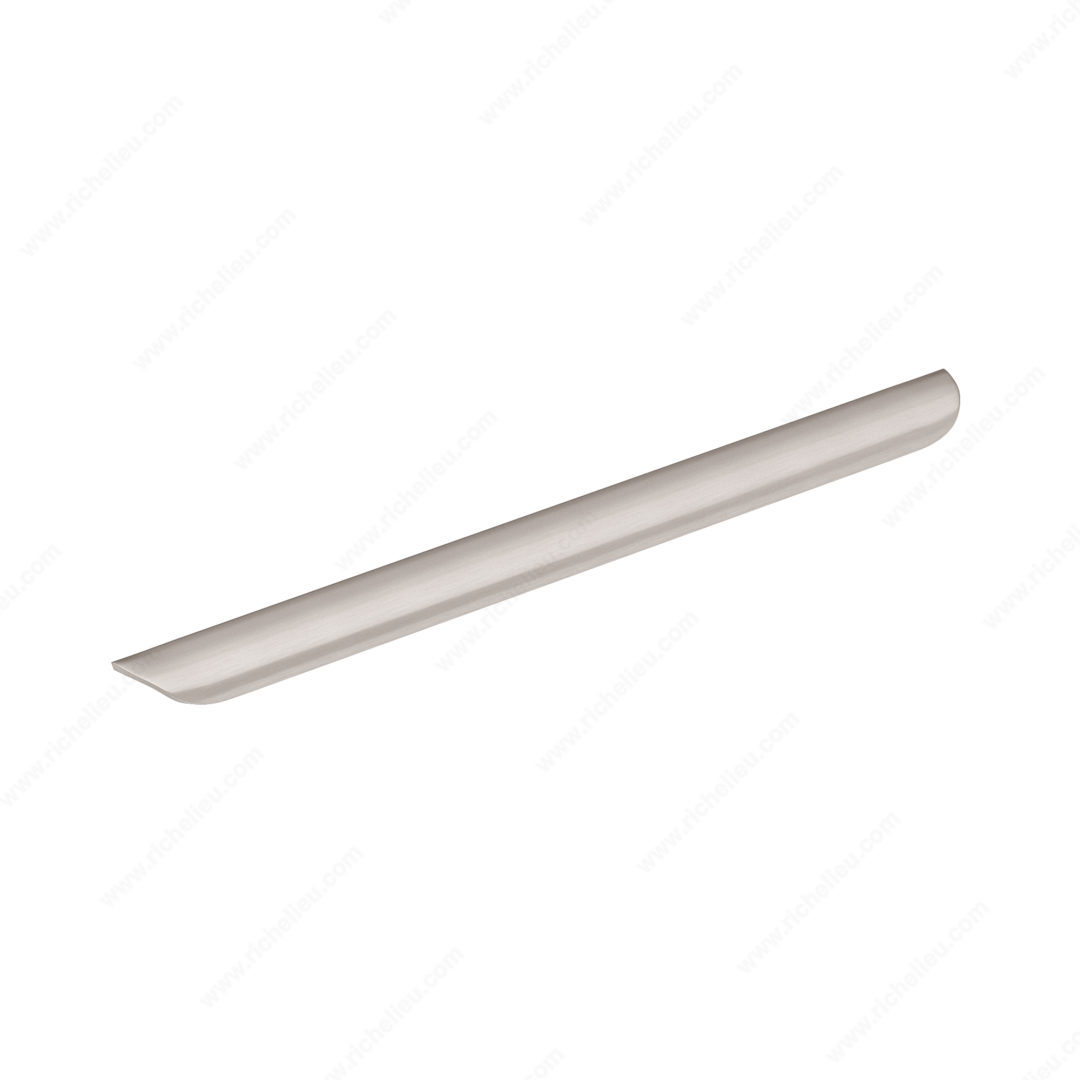 Richelieu 7975384195 Modern Metal Pull is a sophisticated addition to any furniture or cabinetry project. This elegantly curved pull features a slender grip that enhances both functionality and aesthetics, making it an ideal choice for modern interiors. With an overall length of 19 5/8 inches and a center-to-center measurement of 15 1/8 inches, it is designed to fit seamlessly into your existing setups. The pull is crafted from durable aluminum, ensuring longevity while maintaining a lightweight profile. Its brushed nickel finish, complemented by gray and chrome accents, adds a refined touch that can elevate the look of kitchens, bathrooms, or any living space. The pull's dimensions include a projection of 1 1/32 inches and a width of 7/8 inches, providing a comfortable grip for everyday use. Installation is straightforward, as it comes with included M4 screws, allowing for a hassle-free setup. Part of Richelieu's New Collection, this pull embodies modern design principles while offering practical versatility. Whether you are a building professional or a knowledgeable homeowner, the Richelieu 7975384195 Modern Metal Pull will enhance your cabinetry with style and substance.