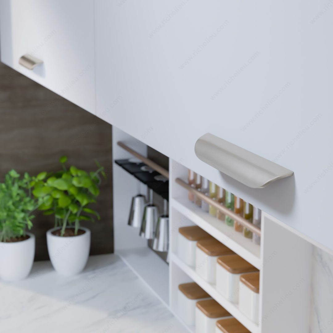 Richelieu 797596195 Modern Metal Pull - 7975 seamlessly combines style and functionality, making it an ideal choice for enhancing furniture and cabinetry. This elegant pull features a graceful curve and a slender grip, offering a refined aesthetic that complements contemporary designs. Crafted from durable aluminum, it ensures longevity while adding a sophisticated touch to any space. With a brushed nickel finish, this pull stands out in a striking gray and chrome color palette, making it versatile enough to suit various interior styles. The overall dimensions of 7 3/4 inches in length, 7/8 inch in width, and a projection of 1 1/32 inches provide an ergonomic grip that is both comfortable and stylish. Designed with a center-to-center measurement of 3 25/32 inches, it fits well with standard installation requirements. The Richelieu 797596195 is part of the New Collection and is complete with M4 screws included for easy installation. This modern pull not only elevates the appearance of cabinets and drawers but also enhances the overall functionality of your furniture pieces. Ideal for both building professionals and discerning homeowners, this pull is a perfect addition to any modern interior project.