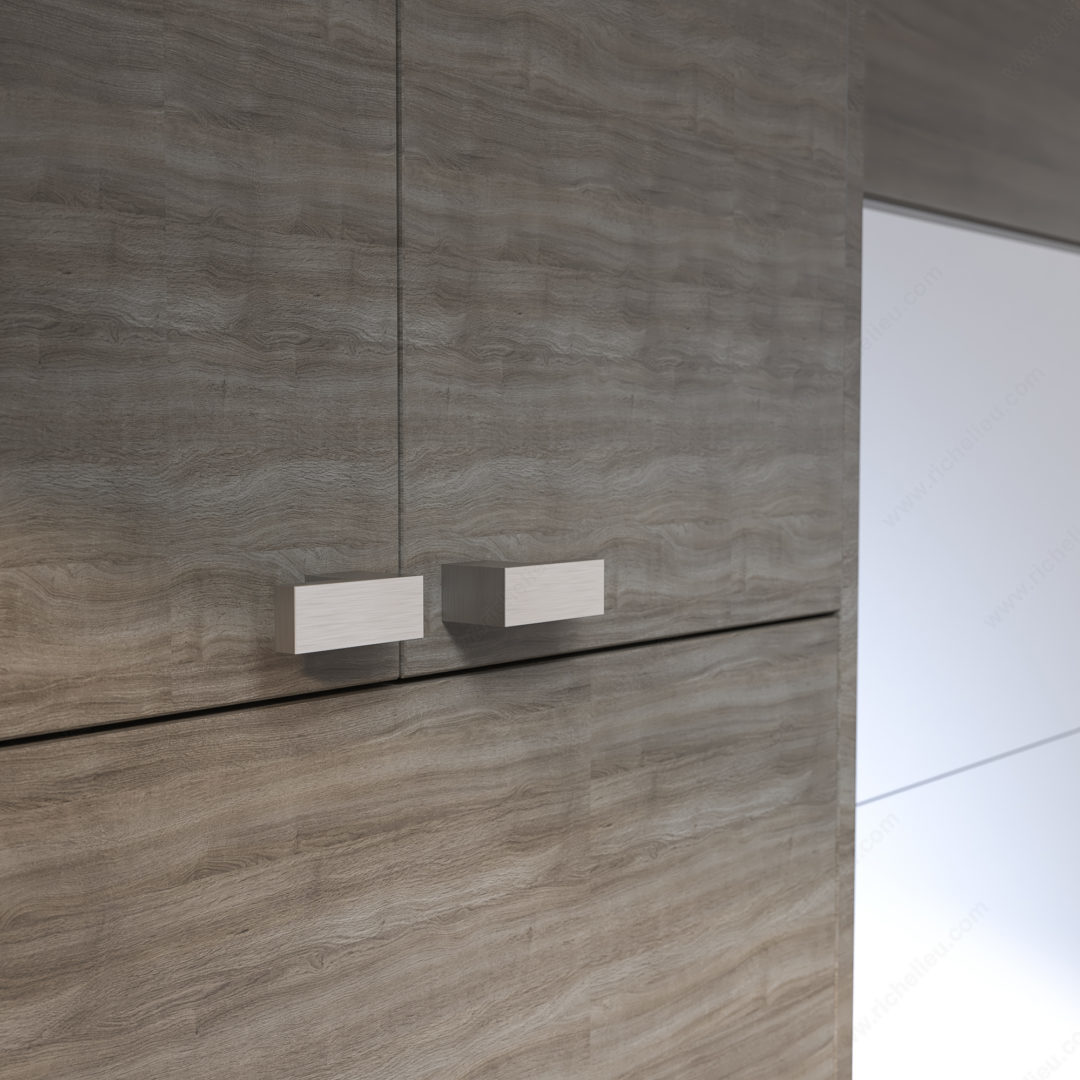 Richelieu 79761654195 Modern Metal Pull is a striking addition that embodies a contemporary aesthetic, perfect for enhancing the look of furniture and cabinetry. This L-shaped pull showcases a sleek design, available in a sophisticated brushed nickel finish, which seamlessly integrates with various décor styles. Measuring 2 5/32 inches in length, the pull features a comfortable 1 3/16-inch projection, providing easy grip and usability. With a center-to-center measurement of 5/8 inch, this modern pull is designed for effortless installation, and each unit comes with M4 screws included for convenience. Constructed from durable aluminum, it not only offers a lightweight feel but also ensures long-lasting performance. The color palette of gray and chrome adds a touch of elegance, making it suitable for both residential and commercial applications. As part of Richelieu's New Collection, the 79761654195 pull complements other items in the series, including models 7976 and 7981. Whether you're updating a kitchen, bathroom, or any living space, this modern pull will elevate your design while providing functional excellence. Perfect for building professionals and discerning homeowners alike, this hardware piece promises to make a lasting impression.