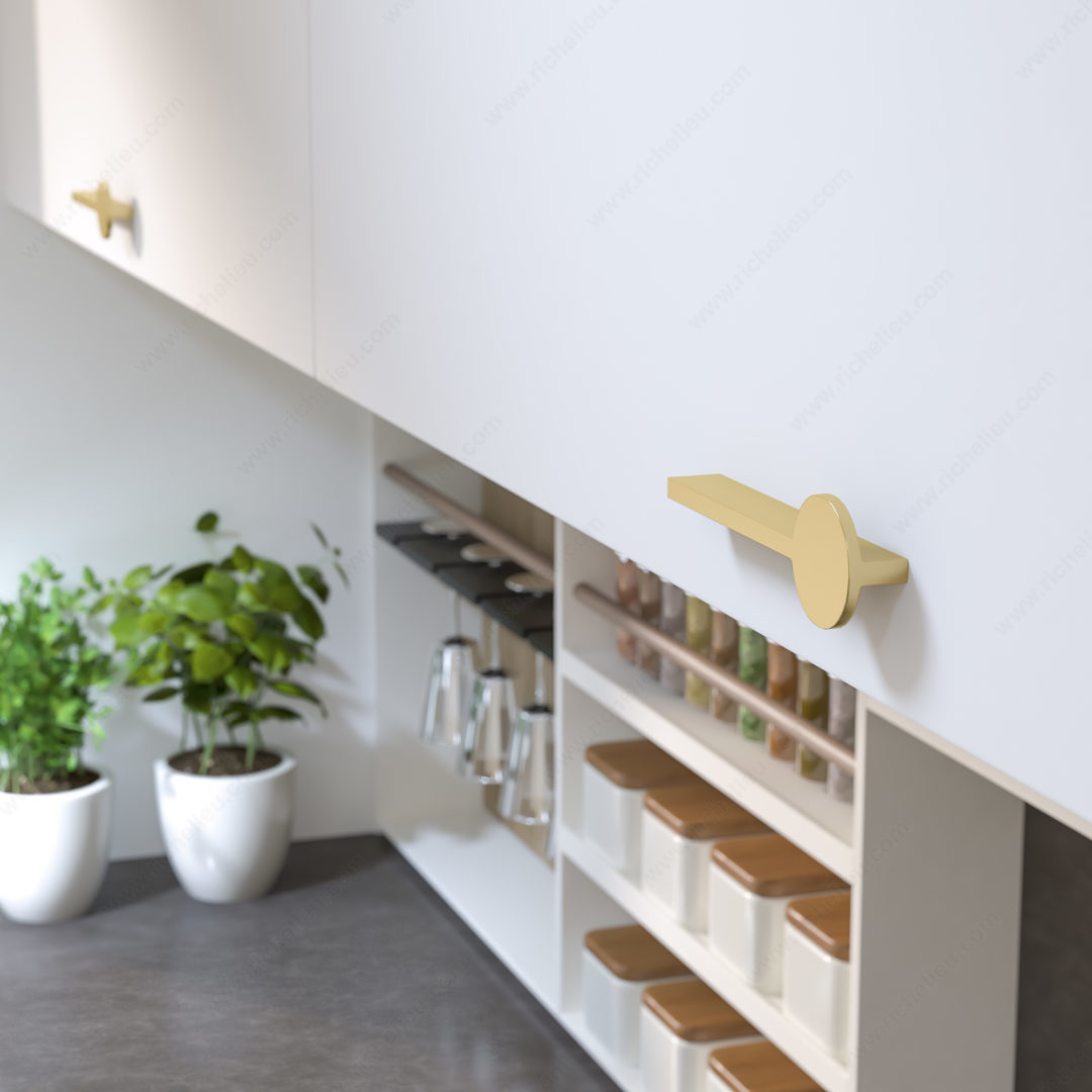 Richelieu 7979128165 Modern Metal Pull - 7979 effortlessly combines style and functionality, making it an ideal choice for enhancing furniture and cabinetry. With a sleek design featuring a smooth circular accent, this pull adds a contemporary touch to any space. The brushed gold finish imparts a warm and inviting glow, perfectly complementing a range of interior styles. Measuring 5 1/2 inches in length and with a center-to-center spacing of 5 1/32 inches, this pull is designed for easy installation and seamless integration into various cabinetry projects. Crafted from durable aluminum, it promises longevity while maintaining its striking appearance. The overall projection of 3/4 inch ensures a comfortable grip, making it functional as well as visually appealing. As part of the New Collection, the Richelieu 7979 model is a standout piece that can effortlessly elevate your design aesthetic. Each pull comes with M4 screws included, simplifying the installation process. Available in a captivating yellow and brass color scheme, it pairs beautifully with both modern and traditional décor. Choose Richelieu 7979128165 for a sophisticated upgrade that doesn’t compromise on practicality.