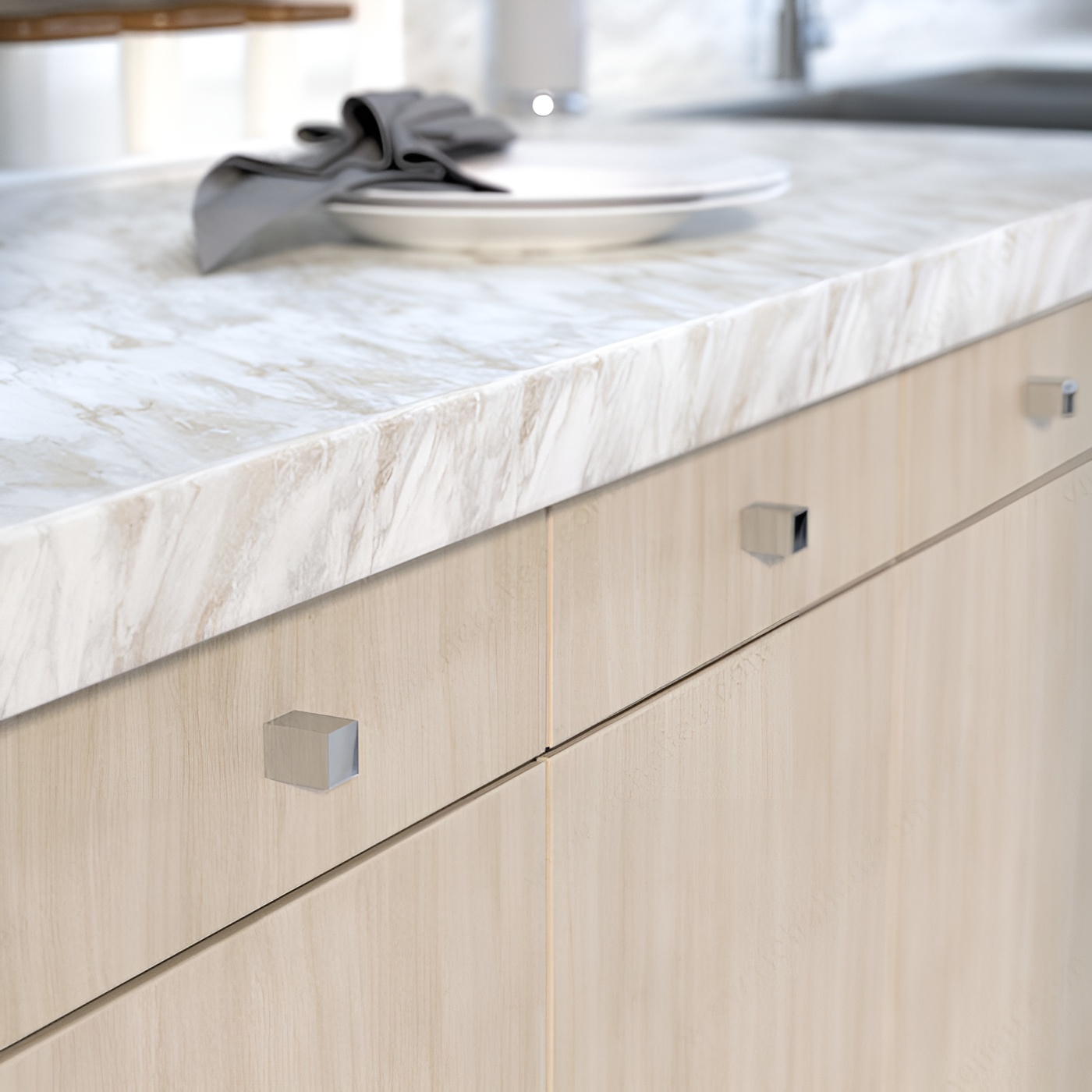 Richelieu 798118140 Modern Metal Knob - 7981 enhances contemporary furniture with its sleek and sophisticated square design. Crafted from durable aluminum, this knob is a perfect blend of strength and style, featuring a striking chrome finish that adds a touch of elegance to any cabinetry or furniture piece. Measuring 23/32 inches in length and width, with a projection of 15/16 inches, the knob offers a comfortable grip while maintaining a minimalist aesthetic. The center-to-center measurement of 13/32 inches ensures compatibility with various applications, making it a versatile choice for modern interiors. Part of Richelieu's New Collection, this knob is available in a sophisticated gray and chrome color scheme that complements a wide range of design themes. Each knob comes with an M4 screw included, facilitating easy installation and ensuring a secure fit. Whether you’re updating kitchen cabinets or enhancing furniture in living spaces, the Richelieu 798118140 knob is an ideal selection for building professionals and discerning homeowners alike. Transform your spaces with this stylish hardware that embodies both functionality and modern design.
