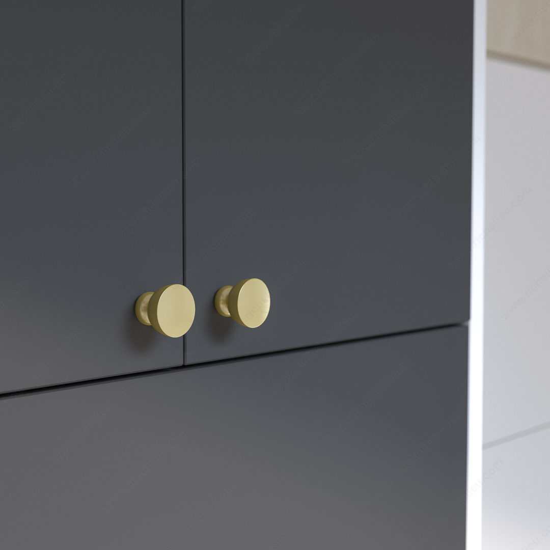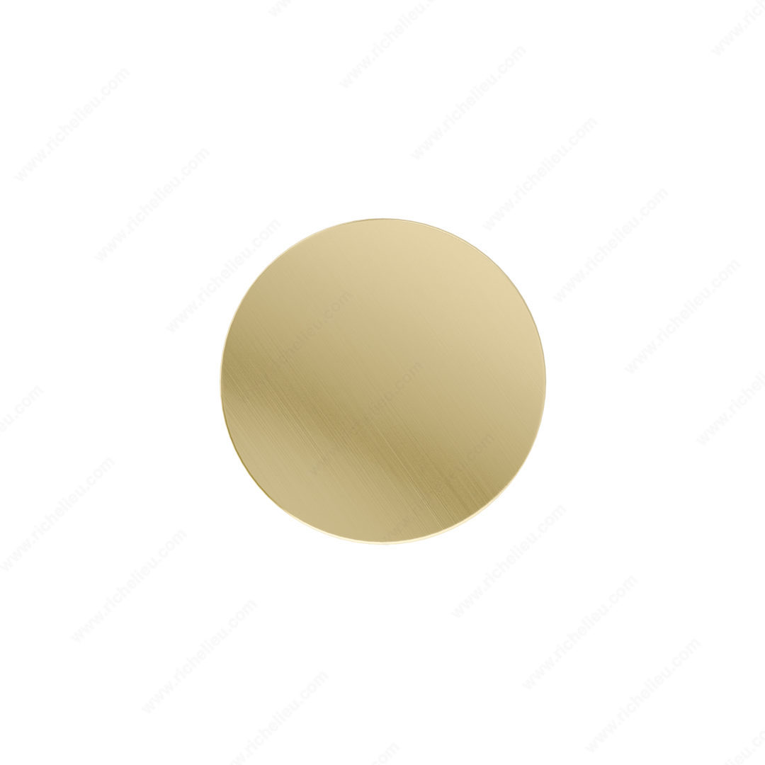 Richelieu 798626165 Modern Metal Knob offers a stylish and contemporary touch to your furniture. This round knob features a crisp, flat surface that enhances its charming appeal, making it an excellent choice for modern cabinetry or furniture projects. With an overall diameter of 1 1/32 inches and a projection of 29/32 inches, this knob is perfectly sized for easy grip and functionality. Crafted from high-quality aluminum, the knob boasts a brushed gold finish that adds a luxurious touch to any space. The striking combination of yellow and brass elevates its aesthetic, making it a standout element in your design. Part of the New Collection, this knob complements other items in the collection, including models 7979 and 7986, allowing for seamless coordination across your projects. Installation is straightforward, as each knob comes with an M4 screw included, ensuring a hassle-free setup. Designed for those who appreciate modern style and quality craftsmanship, the Richelieu 798626165 Modern Metal Knob is perfect for both building professionals and discerning homeowners looking to enhance their interiors with a sophisticated touch. Whether for a kitchen, bathroom, or living area, this knob is sure to impress.