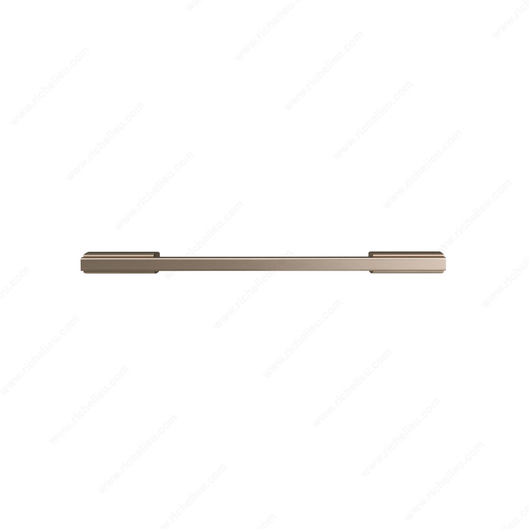 Richelieu 7990192OBRZ Modern Metal Pull showcases a striking design, combining wide posts with a sleek rectangular handle to create a bold statement for your furniture and cabinetry. Crafted from durable aluminum, this pull is not only stylish but also built to withstand daily use, making it an ideal choice for modern interiors. With an overall length of 8 1/32 inches and a center-to-center measurement of 7 9/16 inches, the pull offers a comfortable grip while enhancing the aesthetic of your space. The elegant Oriental Bronze finish adds a touch of sophistication, perfectly complementing contemporary décor. This pull is part of a new collection, ensuring that you can find matching hardware to create a cohesive look throughout your home. The overall projection of 1 13/32 inches allows for easy access, while the 1/2-inch width contributes to its sleek profile. Installation is straightforward with included M4 screws, making it a hassle-free addition to any project. Whether you're updating kitchen cabinetry or adding flair to furniture pieces, the Richelieu 7990192OBRZ Modern Metal Pull is designed to elevate your design with its modern aesthetic and high-quality materials.