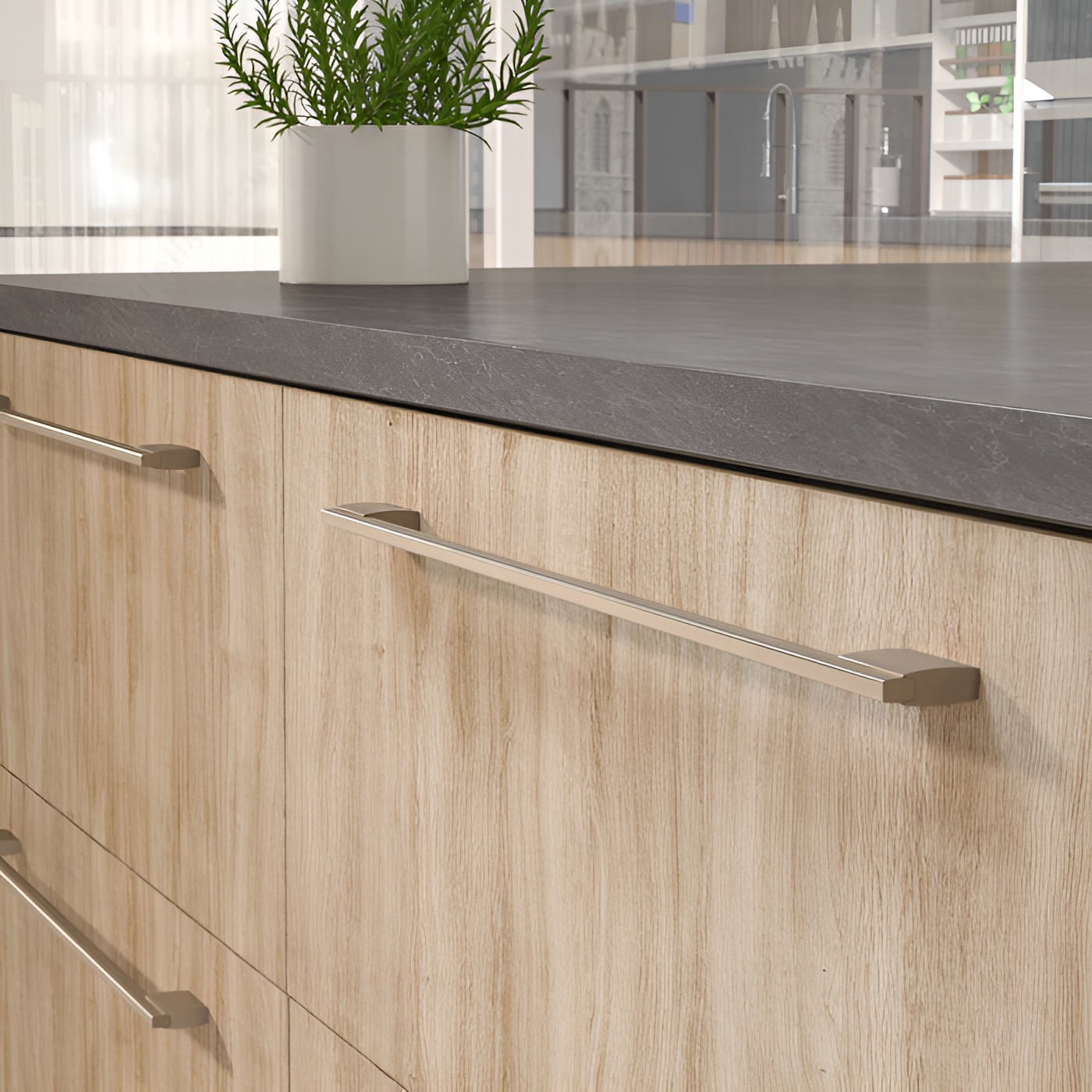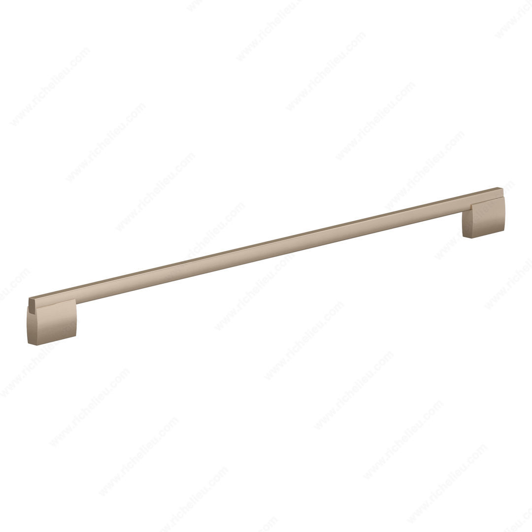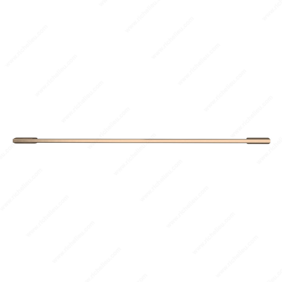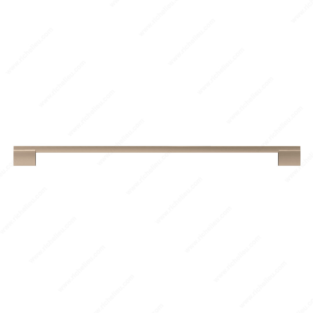 Richelieu 7990512OBRZ Modern Metal Pull is designed to elevate your furniture and cabinetry with its striking aesthetic. This pull features a contemporary blend of wide posts and a sleek rectangular handle, making it an ideal choice for those looking to make a bold statement in their space. The Oriental Bronze finish adds a touch of sophistication while ensuring durability, as it is crafted from high-quality aluminum. With an overall length of 20 5/8 inches and a center-to-center measurement of 20 1/8 inches, this extra-long pull is perfect for larger drawers or doors, enhancing both functionality and style. The pull boasts a projection of 1 13/32 inches, offering a comfortable grip for everyday use. Included with the pull are M4 screws, making installation straightforward and hassle-free. This piece is part of the New Collection, ensuring it aligns with the latest design trends. Whether you're renovating a kitchen, updating furniture, or designing a new space, the Richelieu 7990512OBRZ Modern Metal Pull is a versatile and stylish option that will complement various design themes. Transform your cabinetry with this elegant pull and enjoy both form and function in your home.