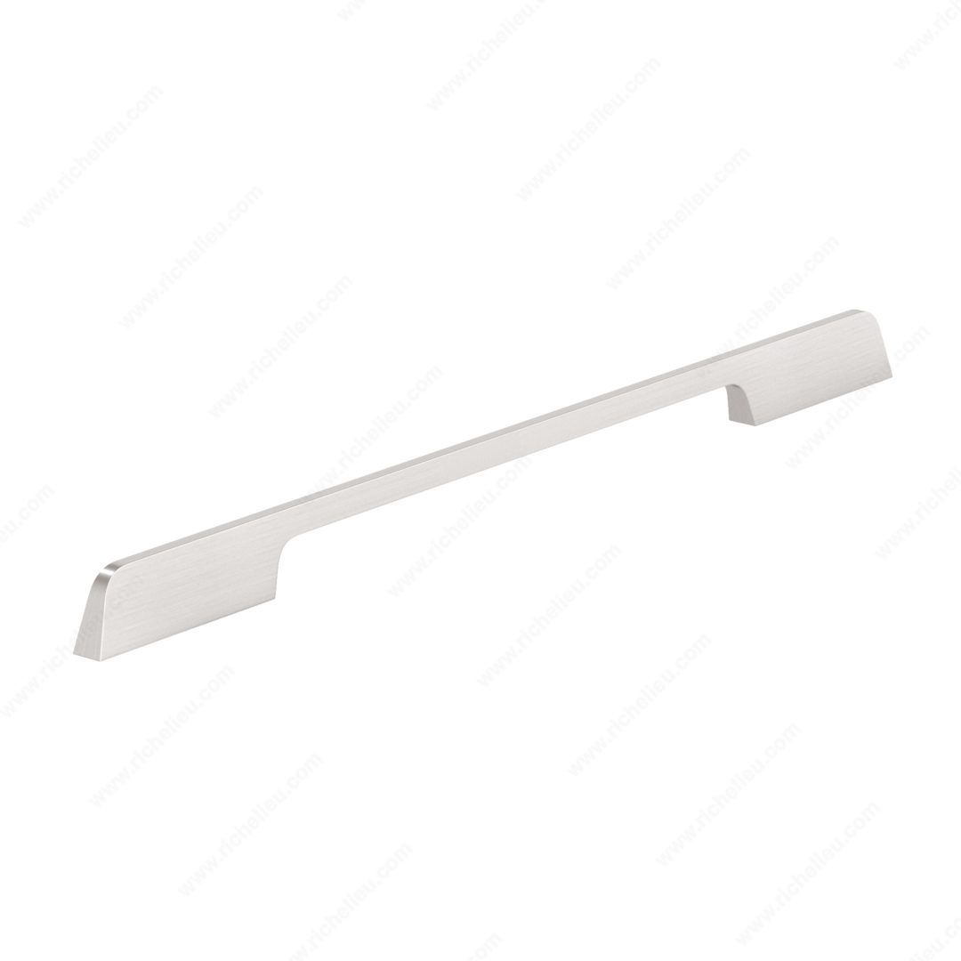 Richelieu 7996320195 Modern Metal Pull combines style and functionality, making it an ideal choice for contemporary furniture and cabinetry. With its sleek design featuring flared posts and a curved internal grip, this pull elevates the aesthetic of any space while providing a comfortable hold. Designed with a center-to-center measurement of 12 5/8 inches, the pull is versatile enough to complement various cabinet sizes. The overall dimensions of 18 7/8 inches in length, 1/2 inch in width, and a projection of 1 1/4 inches add to its modern appeal. Crafted from durable aluminum, this pull is finished in brushed nickel, ensuring both elegance and longevity. Belonging to Richelieu's New Collection, the 7996 model is available in a sophisticated gray and chrome color scheme, seamlessly fitting into any contemporary decor. For hassle-free installation, M4 screws are included. Whether you're a building professional or a savvy homeowner, the Richelieu Modern Metal Pull offers a sophisticated touch that enhances cabinetry and furniture. Upgrade your projects with this stylish hardware that perfectly balances form and function.