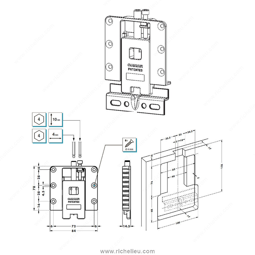Richelieu 814642G Suspension Bracket for Panels provides a robust and reliable solution for hanging decorative wall panels. Crafted from high-quality steel, this suspension bracket is designed to support a substantial weight capacity of up to 66.1 lbs, making it ideal for various applications in modern interior design. The zinc finish not only enhances durability but also ensures an aesthetically pleasing appearance that complements any decor. This product includes one suspension bracket, a wall plate, a white cap, and six screws (ø4mm), offering everything you need for a complete installation. With a height of 5 31/32 inches and a width of 3 15/16 inches, the bracket is engineered to provide a secure fit while maintaining a low profile against your walls. Once installed, the Richelieu suspension bracket enables you to create stunning arrangements and patterns with your panels, adding depth and character to any room. Whether you are a building professional or a knowledgeable homeowner, you can trust that this bracket will deliver both functionality and style. Easy to ship via UPS, the Richelieu 814642G is an essential component for your next interior project.