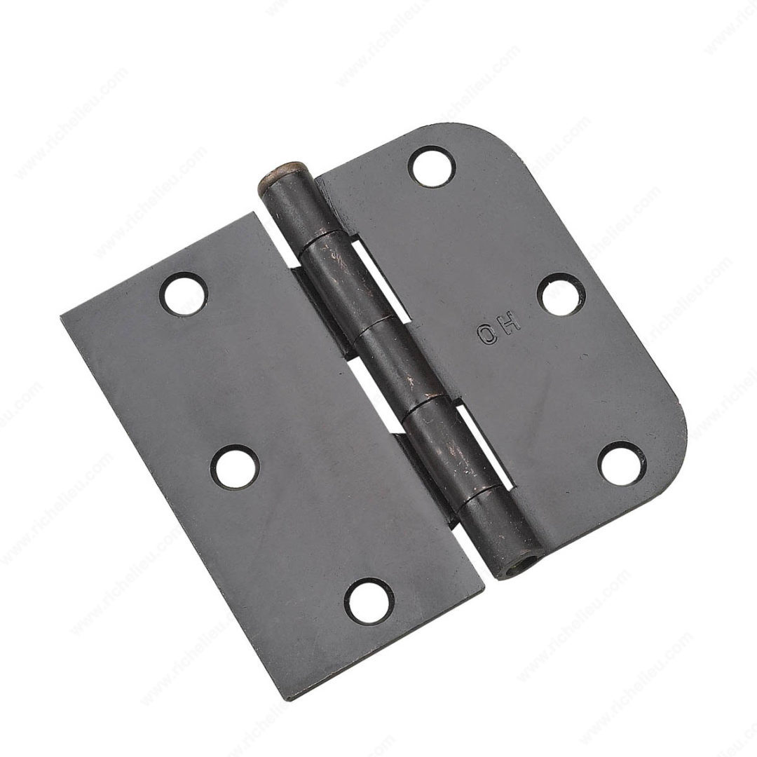 Richelieu 81821ORBB 3 1/2" Full Mortise Combination Butt Hinge - 5/8 Radius offers a perfect blend of style and functionality for your architectural projects. Crafted from durable steel, this hinge features an elegant oil-rubbed bronze finish that complements a wide range of design aesthetics. Measuring 3 1/2 inches in height and 3 11/16 inches in width, it is designed for mortise mounting, ensuring a seamless and secure fit for doors. The removable pin allows for easy installation and quick removal of the door, making maintenance a breeze. With a maximum load capacity of 45 pounds when using three hinges, this product is suitable for various door types while ensuring reliable performance. It features a 1/16-inch gap and a flat tip, providing a clean, professional appearance. Included with the hinge are screws for straightforward installation, allowing you to complete your project efficiently. The square, 5/8" radius corner design adds a touch of sophistication to any setting, making it an ideal choice for both building professionals and discerning homeowners. Elevate your door hardware with the Richelieu 81821ORBB hinge, where quality meets contemporary style.
