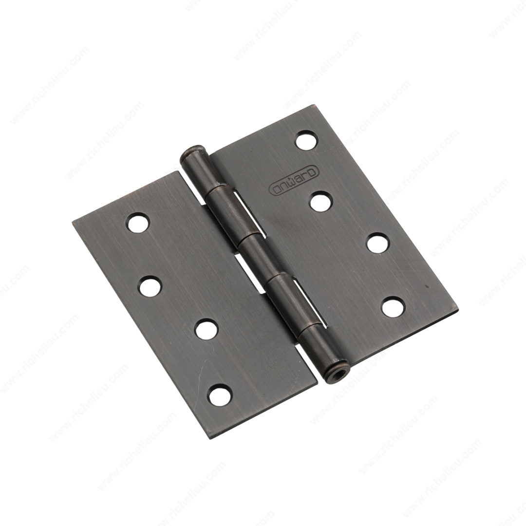 Richelieu 822ORBB 4" Full Mortise Butt Hinge offers a perfect blend of style and functionality, making it an essential addition to any home improvement project. Crafted from durable steel, this hinge is designed for light use and can support a maximum load of 60 lbs when three hinges are installed. Its sleek, oil-rubbed bronze finish not only enhances the aesthetic appeal of doors but also complements various design styles, whether contemporary or traditional. The hinge measures 4 inches in height and width, fitting seamlessly into standard door applications. With a thickness of 3/32 inches and a gap of 1/16 inches, it ensures a precise fit for optimal performance. The square corners and flat tip design contribute to its modern look, while the removable pin feature allows for easy maintenance and installation. Each package includes two hinges, along with the necessary screws for a straightforward setup. Designed for mortise mounting, the Richelieu 822ORBB is an ideal choice for homeowners and builders seeking reliable, stylish hardware. Elevate your projects with this versatile hinge, ensuring a lasting impression with every door it adorns.