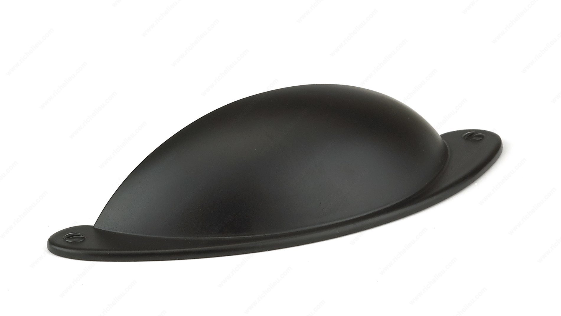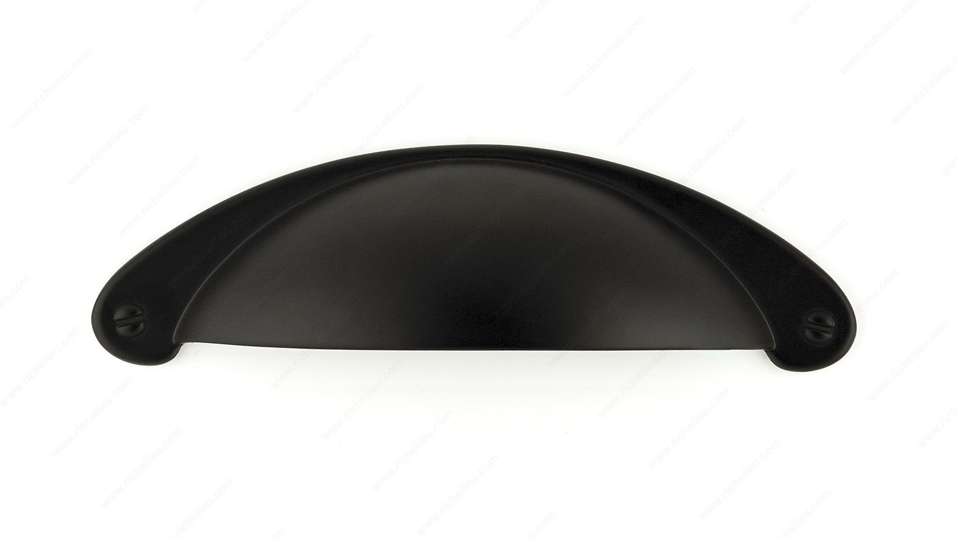 Richelieu 82333900 Traditional Metal Pull - 8233 brings a touch of classic elegance to your kitchen or bathroom with its smooth dome shape and charming faux screw embellishments. This cup pull is designed to seamlessly blend functionality with style, making it an ideal choice for both professional projects and home renovations. Crafted from high-quality zamak, the pull features a sophisticated matte black finish that adds depth and character to cabinetry. Measuring 4 29/32 inches in overall length, with a center-to-center measurement of 3 inches, it is perfectly proportioned for various cabinet styles. The pull's overall width and projection of 31/32 inches provide a comfortable grip, enhancing usability without compromising aesthetics. Available in both gray and chrome or matte black, this versatile pull allows for customization to match your design vision. Please note that installation requires 8/32 inch screws, which are not included. Each unit is packaged individually, ensuring that you receive the quality and attention to detail that Richelieu is known for. Elevate your cabinetry with the Richelieu 82333900 Traditional Metal Pull, where timeless design meets modern functionality.