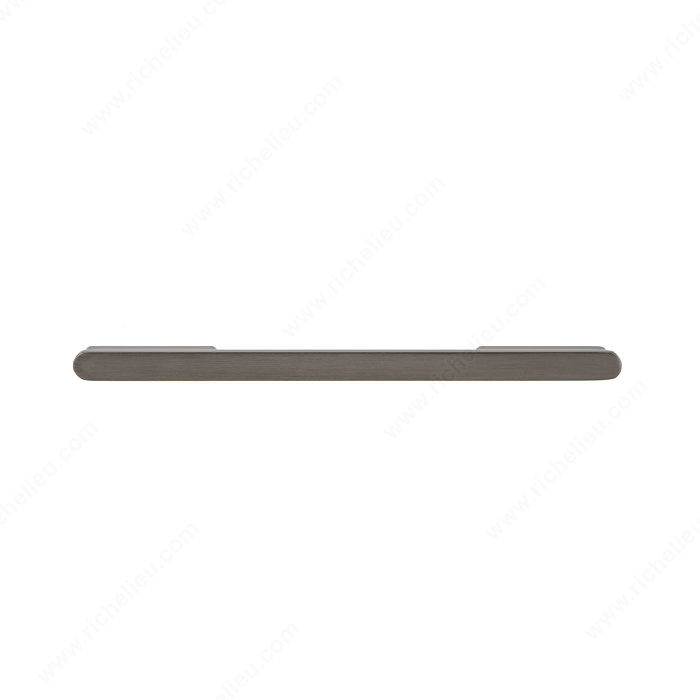 Richelieu 863616092 Modern Metal Pull is a striking addition that blends contemporary design with functionality. This pull features rounded ends and elongated posts, offering a sophisticated aesthetic that enhances any furniture piece. With an overall length of 8 21/32 inches and a center-to-center measurement of 6 5/16 inches, it is perfectly sized for cabinets and drawers alike. Crafted from durable aluminum, this pull not only boasts a modern style but also a robust construction, ensuring longevity in high-traffic areas. The brushed black nickel finish adds a sleek touch while providing a timeless look that coordinates beautifully with various decor styles. The minimalist design, measuring just 15/32 inches in width and projecting 1 3/32 inches, maintains an unobtrusive profile that won't overwhelm your space. Installation is straightforward, as M4 screws are included for your convenience. This pull is part of the complete 8636 collection, allowing for cohesive design throughout your project. Whether you're a professional builder or a discerning homeowner, the Richelieu 863616092 Modern Metal Pull is an excellent choice for enhancing your cabinetry with style and sophistication.
