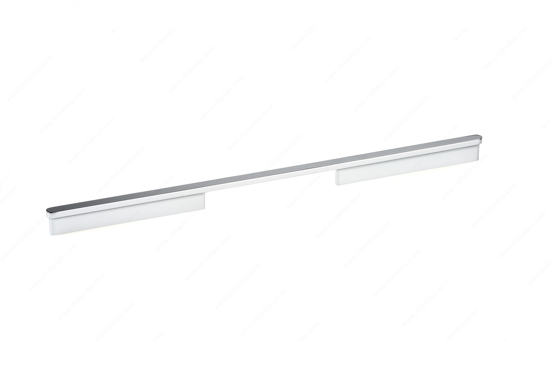 Richelieu 8636448140 Modern Metal Pull is an elegant addition to any furniture piece, offering a blend of sophistication and contemporary design. With its rounded ends and elongated posts, this pull not only enhances the aesthetic appeal of cabinets and drawers but also provides a comfortable grip for everyday use. Designed with a center-to-center measurement of 17 5/8 inches, it is perfect for various applications in modern furniture. The pull features a sleek chrome finish with gray accents, ensuring it complements a wide range of décor styles. Measuring 18 7/8 inches in overall length, 1 3/32 inches in projection, and 15/32 inches in width, it strikes a perfect balance between functionality and style. Crafted from durable aluminum, the Richelieu 8636448140 Modern Metal Pull is built to withstand the rigors of daily use while maintaining its contemporary look. Each pull comes with M4 screws included for easy installation, making it a practical choice for both professionals and DIY enthusiasts. Part of the comprehensive 8636 collection, this product is a testament to Richelieu's commitment to quality and design innovation, allowing you to elevate your space effortlessly.