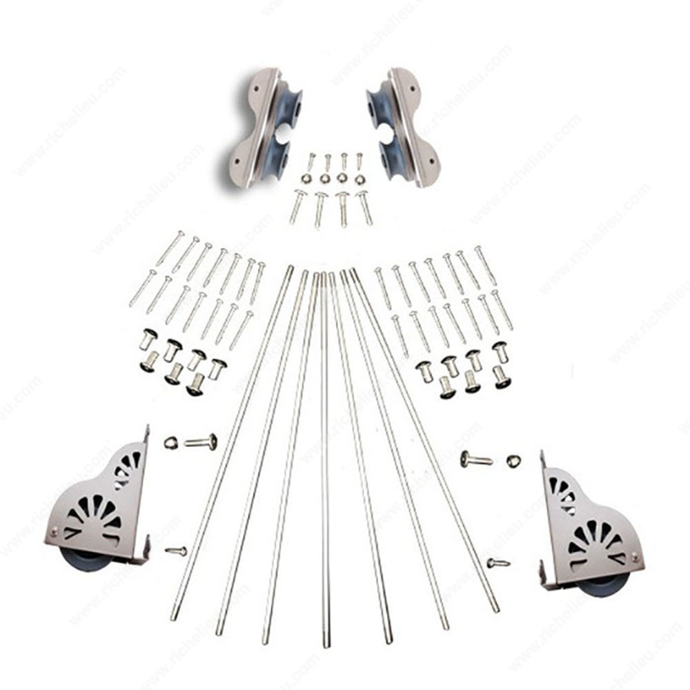Richelieu 8821002185 Rolling Ladder Hardware Kit with Brake WheelsRichelieu 8821002185 Standard Rolling Ladder Hardware Kit with Brake Wheels is designed for a seamless and secure experience when accessing elevated storage. This kit is perfect for a seven-step ladder, featuring hardware specifically engineered with bottom brake wheels that automatically engage when weight is applied, ensuring stability and safety while in use. With a weight capacity of 300 lbs (136 kg), it provides robust support for a variety of tasks. The upper standard double rollers are strategically designed to secure the ladder to the track, preventing any accidental jumping off the track during use. Furthermore, the telescopic upper rollers allow for convenient vertical storage against cabinets or walls, optimizing space when the ladder is not in use. Available in four stylish finishes-black, chrome, painted satin nickel, and satin brass-this hardware kit can match various decor styles. Additional finishes are available by special order, enhancing customization options. Please note that the ladder itself, along with tracks, brackets, and other accessories, is sold separately. For a complete setup, refer to the maple or oak wood rolling ladder webkits for a comprehensive list of components. Experience the perfect blend of functionality and aesthetics with Richelieu's expert craftsmanship.