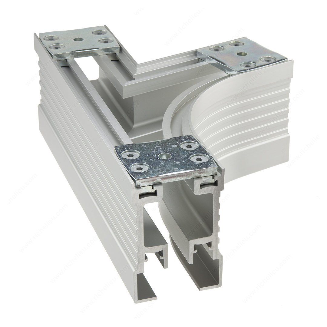 Richelieu 891584410 Curved Double Top Track Segment - 75, Right is an essential component for creating smooth and efficient sliding door systems. Designed with a 75° curvature, this right-hand track segment allows for seamless transitions, making it perfect for spaces where maximizing functionality and aesthetics is key. Crafted from high-quality aluminum, this double top track segment ensures durability while maintaining a sleek satin finish that complements various interior designs. The lightweight yet sturdy material provides reliable performance, making installation and maintenance straightforward for building professionals and knowledgeable homeowners alike. This product is classified under running and guiding tracks, specifically designed as a single track type, offering versatility for various applications. With the ability to ship via UPS, convenience is also a priority, ensuring timely delivery to your project site. Whether you are working on a residential or commercial project, the Richelieu 891584410 Curved Double Top Track Segment stands out as a practical choice for enhancing door functionality and design. Its thoughtful engineering not only accommodates stacking areas but also elevates the overall user experience, making it a valuable addition to your architectural hardware collection.