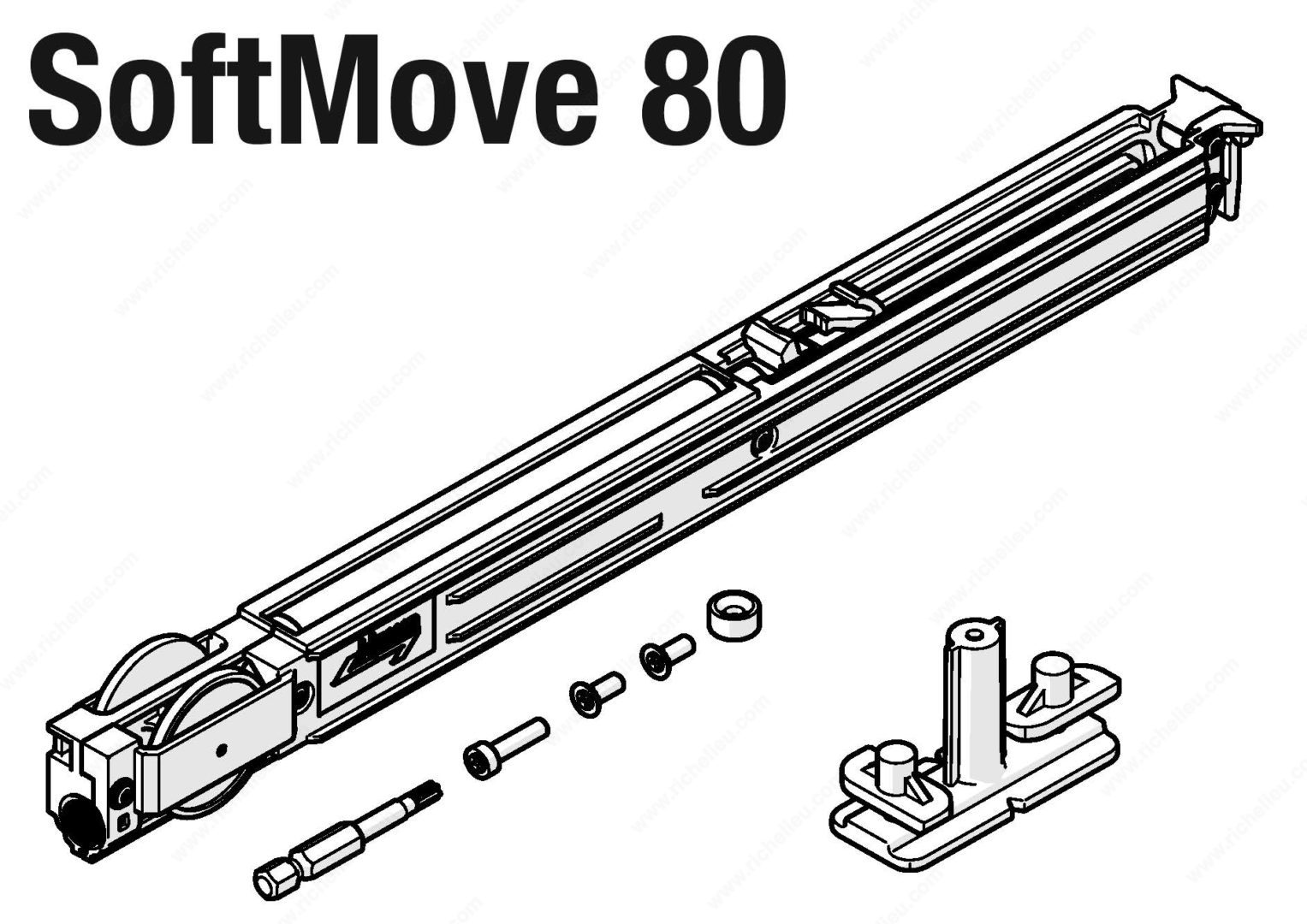 Richelieu 8922444 HAWA-SoftMove Soft-Close Mechanism offers a seamless solution for enhancing the functionality of HAWA-Junior sliding door systems. This innovative accessory is compatible with both wood and glass doors, accommodating widths from 27 1/8 to 40 1/2 inches and supporting a load capacity of up to 176 pounds. Engineered for ease of use, the SoftMove mechanism is fully integrated into the upper running track, ensuring a clean and unobtrusive installation. Its advanced hydraulic damper provides a whisper-quiet operation, gently decelerating sliding doors as they approach their final position. This feature not only enhances user experience but also protects the integrity of the doors by minimizing impact. Installation is quick and straightforward, thanks to the included aids, making it a practical choice for both building professionals and knowledgeable homeowners. The SoftMove mechanism is crafted from high-quality, maintenance-free plastic, ensuring durability and long-lasting performance. Finished in a sleek white, it complements a variety of design aesthetics. Upgrade your sliding door systems with the Richelieu HAWA-SoftMove Soft-Close Mechanism and enjoy the perfect blend of style and functionality.