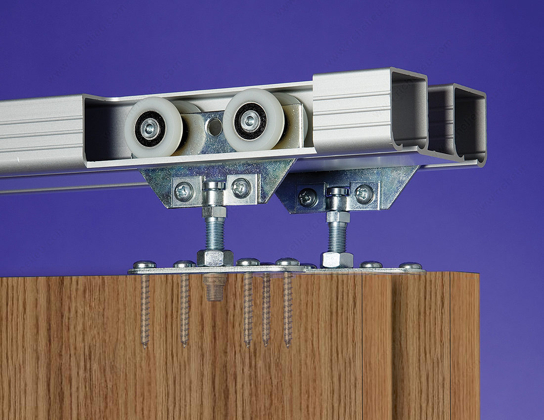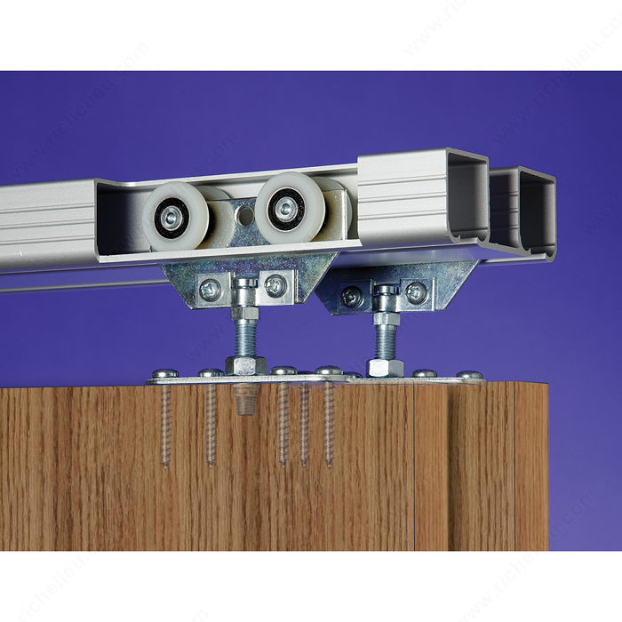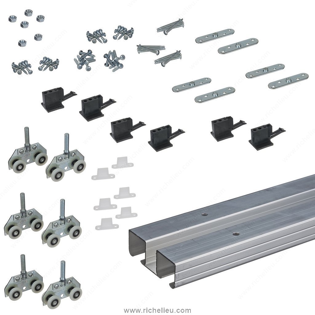 Richelieu 8953884D103DR KN Crowder C-538 offers unparalleled performance for your closet and walk-in closet applications. This sophisticated sliding door system features eight premium ball-bearing nylon-tire wheels per door, ensuring a smooth and effortless glide. Designed for doors with a thickness of 1 3/8 inches, this system can support up to 125 pounds, making it ideal for heavy wooden doors. The aluminum construction provides durability and strength, while the mill finish enhances its modern aesthetic. The upper roller position allows for easy vertical adjustment via a threaded stem and lock nut, ensuring precise alignment and operation. With an overall length of 84 inches, the system accommodates up to three doors, seamlessly integrating into your interior space. This ceiling mount track system is packaged as a complete set, simplifying installation and making it a convenient choice for both professionals and knowledgeable homeowners. Whether you're enhancing storage solutions or upgrading your home’s design, the Richelieu 8953884D103DR KN Crowder C-538 is the perfect blend of functionality and style. Enjoy the ultimate in performance and aesthetics with this expertly crafted sliding door system.