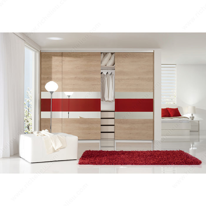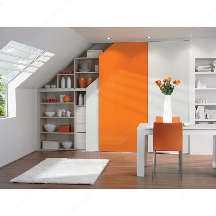 Richelieu 89K3706005110 BRIDGE 600 Bypassing Wood Door KitRichelieu 89K3706005110 BRIDGE 600 Bypassing Wood Door Kit offers a sophisticated solution for creating seamless access in your spaces. This bottom-running sliding door system is designed to accommodate doors weighing up to 60 kg (132 lbs), making it perfect for closets, walk-in closets, wardrobes, pantries, and more. Available in two finishes-Anodized Silver and Satin Black-this kit enhances any interior aesthetic. Choose between kits for two doors featuring 2 m (78-3/4 in) double upper tracks or three doors with 3 m (118 in) triple tracks, both of which are surface-mounted for easy installation. The three-door option includes a locator device for the middle door to ensure smooth operation. An optional soft close mechanism with adjustable spring adds a touch of refinement, allowing doors to glide shut gently. Designed with practicality in mind, the BRIDGE 600 requires the use of metric dimensions for precise installation, and it’s recommended to incorporate a door stiffener for optimal stability. Ideal for doors with a thickness between 23/32 to 7/8 in and widths ranging from 23 5/8 to 39 3/8 in, this complete set is the perfect choice for any modern project requiring elegant functionality.