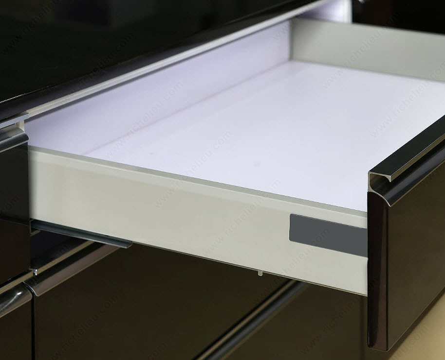 Richelieu 90884400106 Standard 908 Drawer Sets deliver an exceptional blend of performance and affordability, making them an ideal choice for frameless cabinetry. Designed with a dual-synchronizing technology, these drawers offer a smooth opening experience requiring minimal effort. Each unit is constructed from durable steel, ensuring a robust load capacity of 77.2 lbs (35 kg), perfect for accommodating a variety of kitchen essentials. The standard panels feature a sleek gray finish that complements modern interiors while maintaining lasting durability. With dimensions of 15 3/4 inches in length and 3 5/16 inches in height, these double-wall drawers are built to fit seamlessly into your cabinetry. The full-extension undermounted slides provide easy access to the entire drawer, enhancing usability and organization. One of the standout features of the Richelieu 908 Drawer Sets is the soft-close motion technology, which prevents slamming and ensures a gentle, quiet closure. This thoughtful design not only protects your cabinetry but also adds an element of luxury to your kitchen space. Additionally, these drawer sets ship conveniently via UPS, making them a practical choice for your next project. Upgrade your kitchen with Richelieu’s reliable and stylish drawer solutions today.