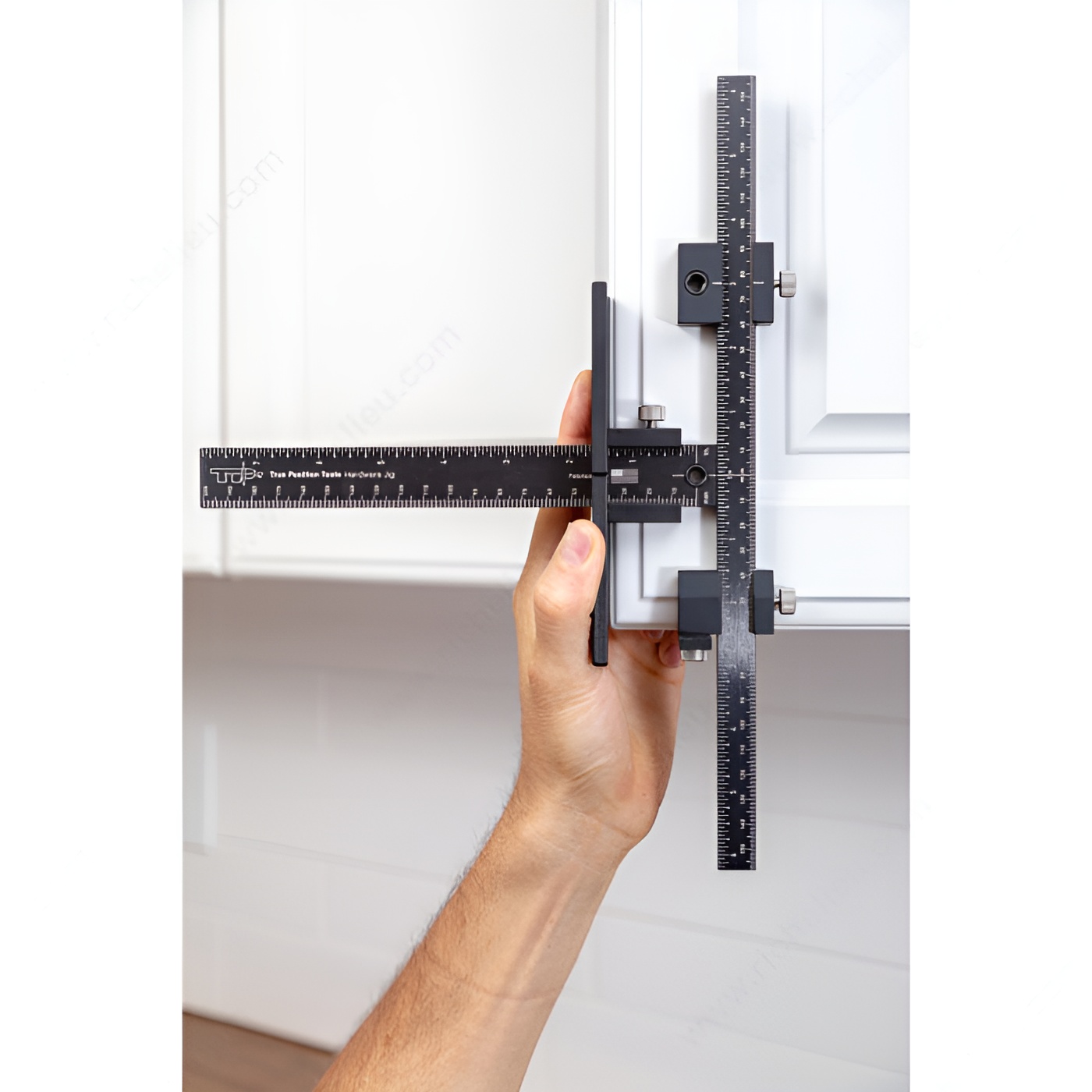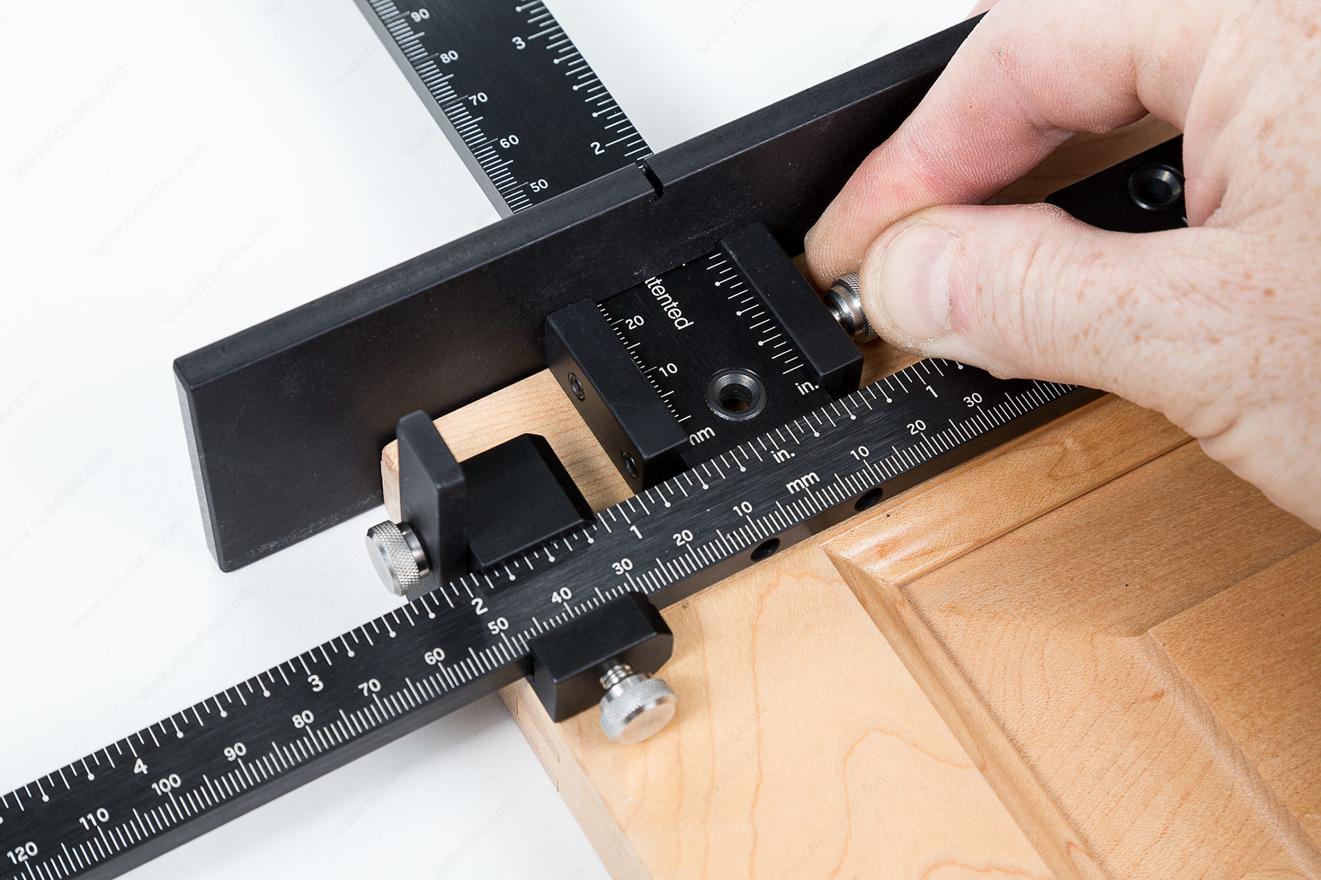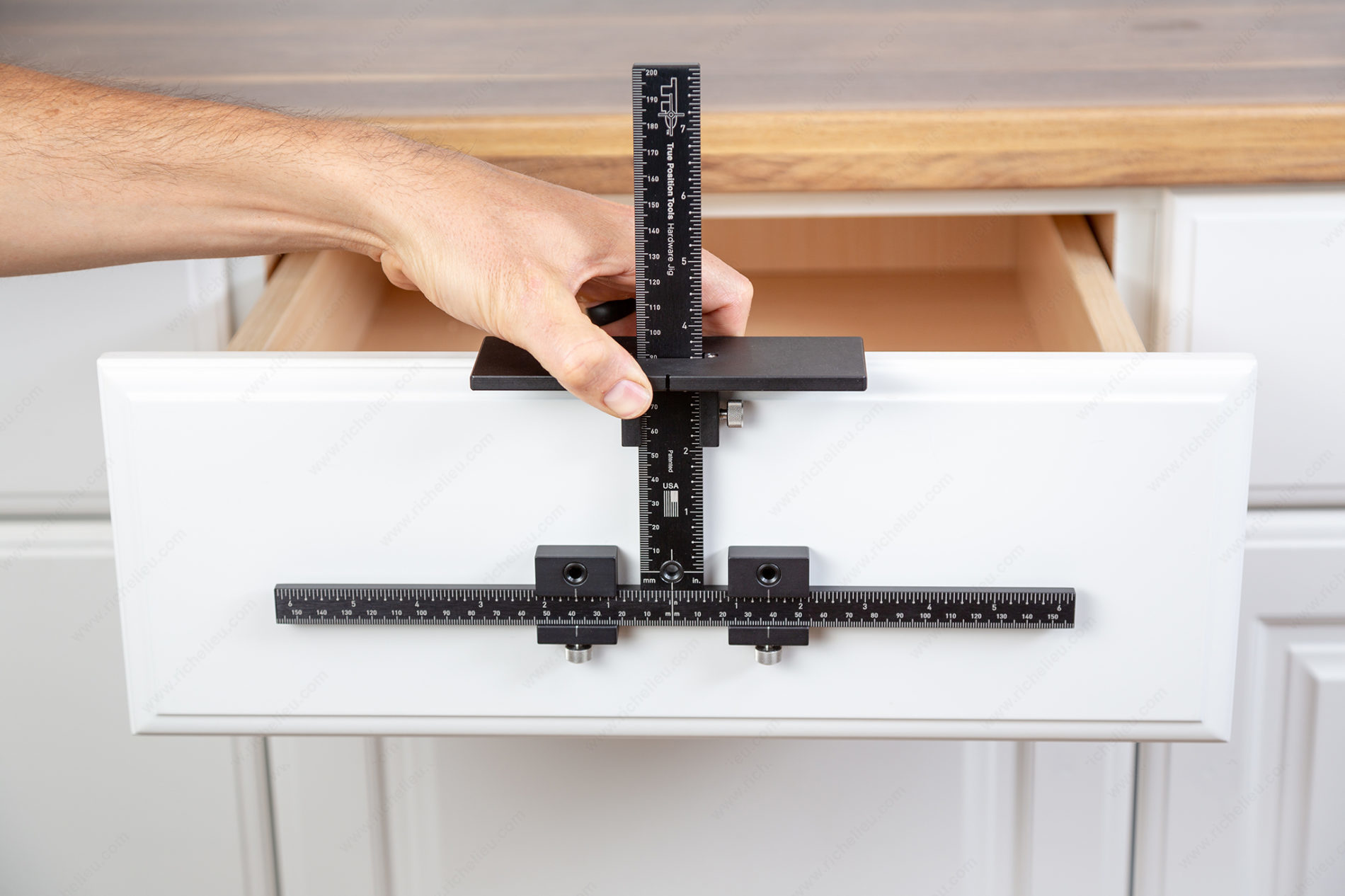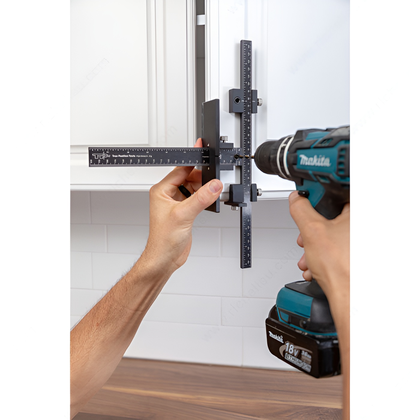 Richelieu 9125BASICJIG Jig System for Handles, Knobs and Case offers an essential solution for professional installation of handles and knobs on doors and drawer fronts. This jig system is a must-have for cabinet installers looking to achieve precision and efficiency in their projects. The design incorporates durable lightweight aluminum construction paired with case-hardened steel bushings, ensuring longevity and reliability in use. The jig features adjustable aluminum guides and stops that slide along both imperial and metric rulers, allowing for simple setup. By tightening the thumb screws, users can drill with confidence, knowing they'll achieve perfect symmetry every time. Its reversible design minimizes setup time, making it incredibly user-friendly for quick installations. With a minimum style and rail width of just 1/2 inch, the 9125BASICJIG is versatile enough to handle various applications. The 5 mm case-hardened steel bushings are not only replaceable but come with a lifetime warranty, adding to its value. Weighing in at a manageable 4.3 pounds and finished in sleek black, this jig measures 8.75 inches in height and 12.5 inches in width, making it easy to store and transport. Enhance your installation process with the reliability and precision of the Richelieu 9125BASICJIG.