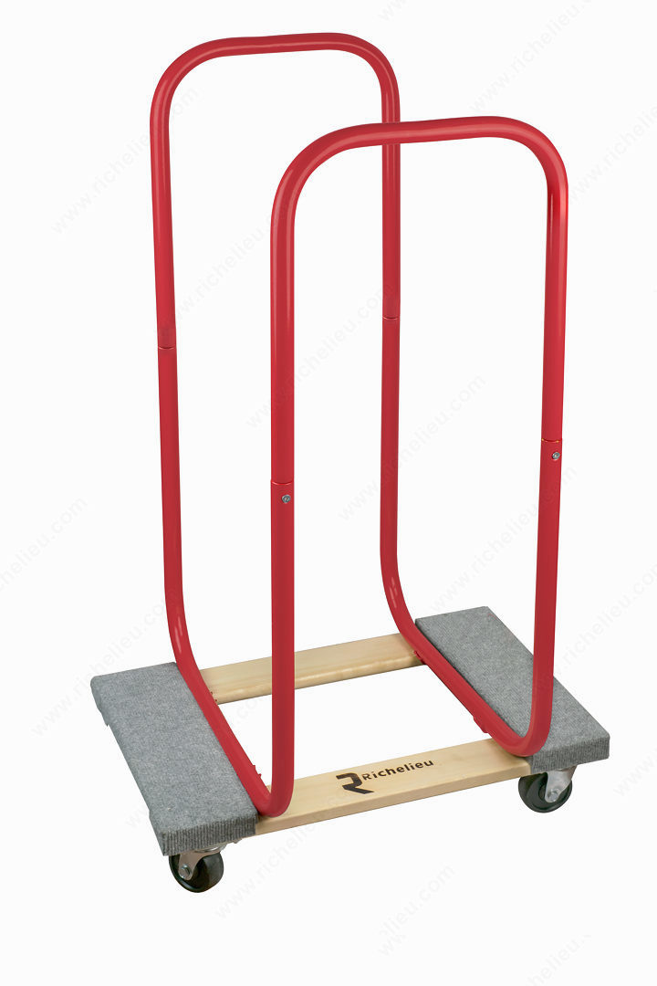 Richelieu 91294303 Rack for Wooden Dolly transforms your wooden dolly into a versatile panel cart, enhancing its functionality for transporting materials efficiently. Designed with durability in mind, this rack is constructed from robust steel, ensuring it can withstand the rigors of daily use in professional environments. Measuring 37 3/8 inches in height, 21 1/4 inches in length, and 14 5/8 inches in width, the rack is perfectly sized to accommodate various panel sizes while maintaining stability during transport. The striking red color not only adds a bold aesthetic but also makes the rack easily visible on the job site, reducing the risk of misplacement. This product is designed to be paired with the wooden dolly (91294304), sold separately, allowing you to create a comprehensive solution for moving panels and other materials effortlessly. The convenient shipping option via UPS ensures that you can receive your order quickly and efficiently, allowing you to get back to work with minimal downtime. Richelieu's commitment to quality and functionality is evident in this rack, making it an essential addition for any builder or knowledgeable homeowner looking to streamline their material handling process.