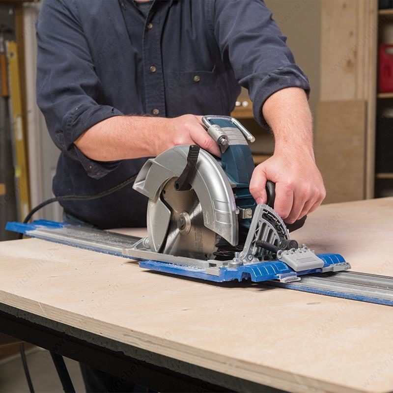 Richelieu 9132131 Circular Saw Guide Track SystemRichelieu 9132131 Circular Saw Guide Track System transforms your circular saw into a high-performance, track-guided cutting tool. With this innovative system, you can achieve straight, accurate, and splinter-free cuts on plywood, MDF, and other large panels, making it an essential addition to any workshop or job site. The Accu-Cut design allows for easy setup by simply aligning the aluminum track with your cut line, eliminating the need for clamps thanks to its dual guide strips. These strips feature an anti-slip coating that ensures stability during cuts, while the anti-chip feature minimizes splintering, providing a clean edge every time. The system accommodates rip, crosscut, and angled cuts up to 48" in length. Designed for both novice users and seasoned professionals, the Accu-Cut enhances productivity and precision. It addresses common challenges faced with circular saws, such as maintaining a straight cut and visibility of the blade's path, thereby simplifying the cutting process. Its portability allows you to bring the saw directly to the workpiece, making it convenient for on-site tasks. Whether you're a DIY enthusiast or a pro, the Richelieu Circular Saw Guide Track System is your answer to efficient and accurate cutting.