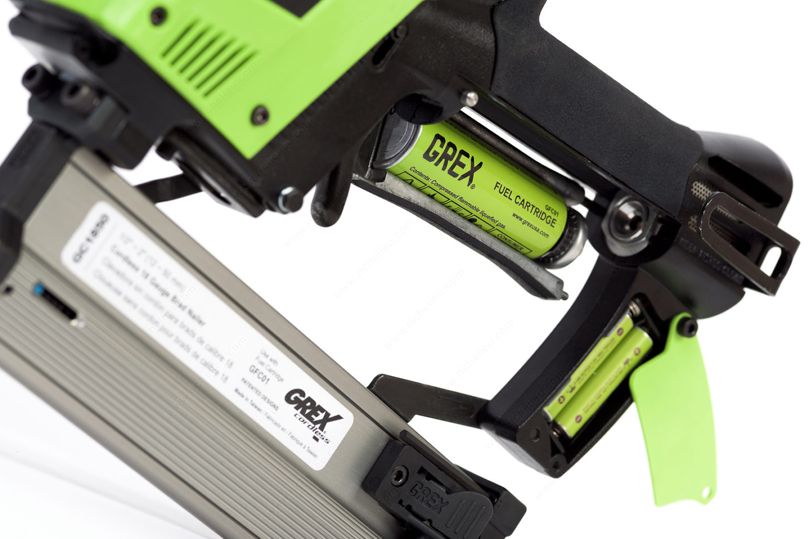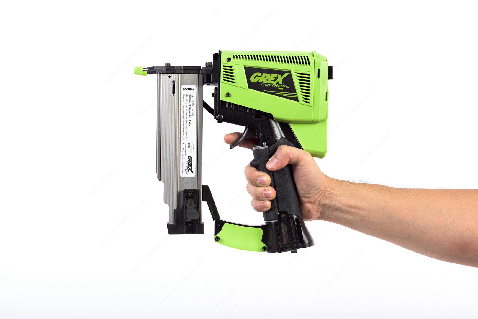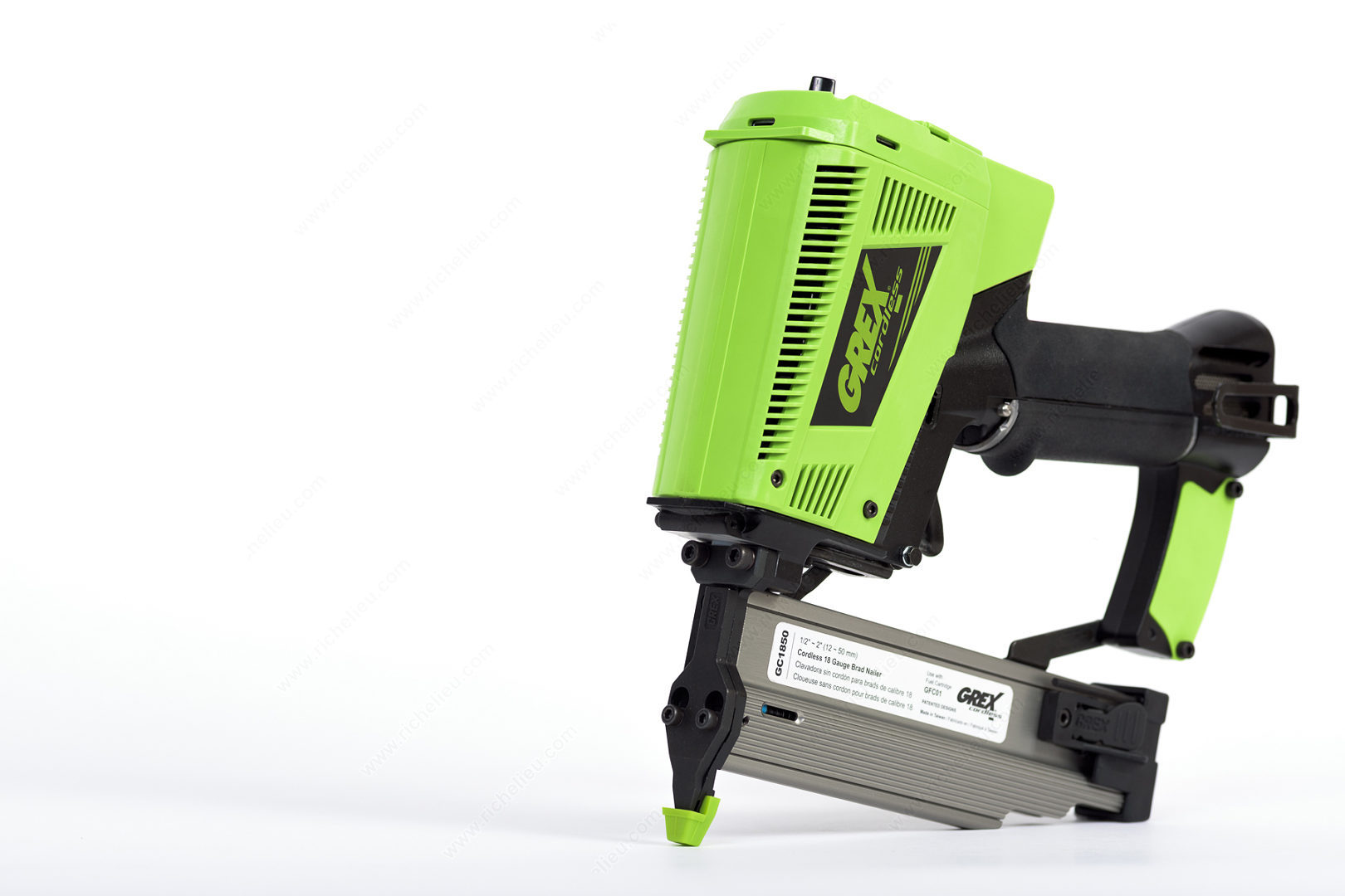 Richelieu 9145GC1850 Cordless 18-Gauge Brad Nailer is the ultimate solution for professionals seeking efficiency and portability in their projects. This compact, cordless brad nailer is designed with a small nose, making it the smallest tool of its kind on the market. It boasts an impressive capacity of over 1300 shots per gas cylinder, ensuring extended use without frequent interruptions. Notably, the gas cylinders have no expiry date, adding to the convenience. Powered by two inexpensive AAA Li-ion batteries, this nailer offers an astounding 50,000 shots per battery pair, with the option to use rechargeable batteries, further enhancing its cost-effectiveness. Crafted from durable solid metal, the construction features advanced materials that eliminate the need for oil, significantly reducing maintenance efforts. With a fastening capacity of 100 nails and an 18-gauge fastener type, the Richelieu 9145GC1850 is equipped with depth adjustment capabilities and employs an intermittent sequential firing method. This fuel-driven nailer is a robust pneumatic tool, perfect for a variety of applications. Whether you're a building professional or a knowledgeable homeowner, this nailer will elevate your craftsmanship with its reliability and performance.