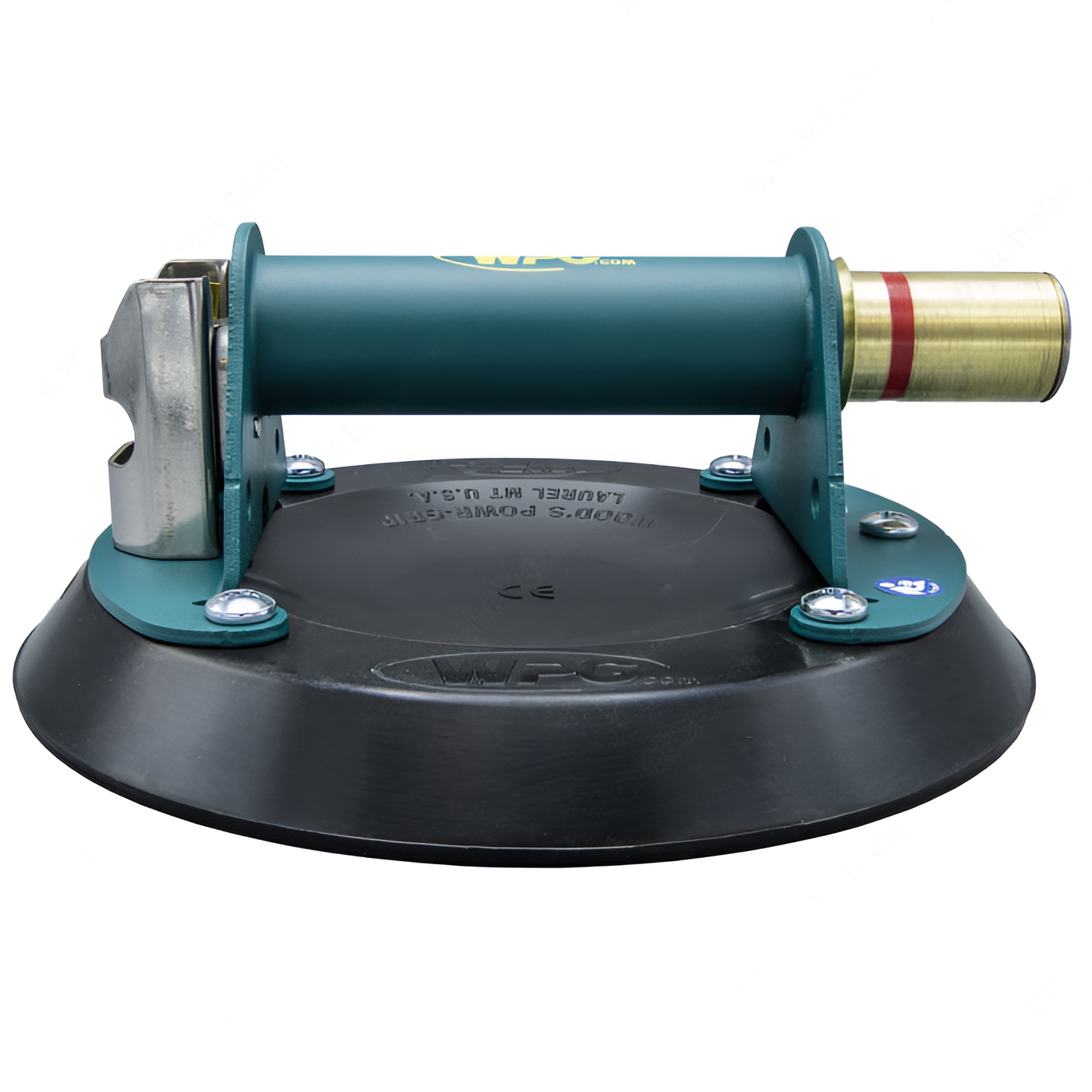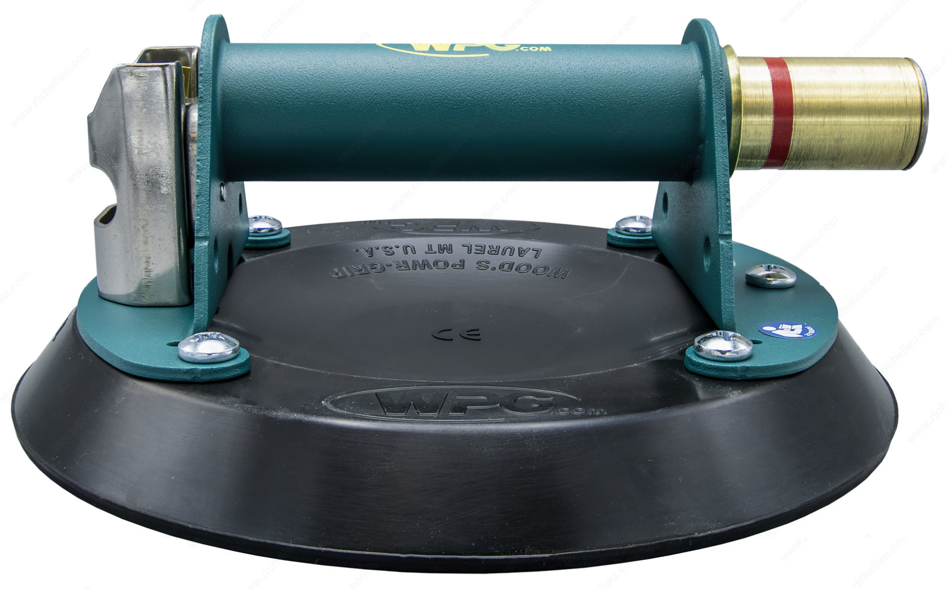 Richelieu 914791700 Flat Vacuum Cup with Metal Handle offers exceptional performance for lifting and moving smooth, nonporous surfaces. Designed with a durable metal handle, this vacuum cup ensures a reliable grip while facilitating rapid attachment to flat surfaces, making it an essential tool for professionals in the glazing and construction industries. Featuring a 9-inch diameter, this vacuum cup boasts an impressive load capacity of 150 pounds, providing the strength needed for heavy-duty applications. The innovative red-line indicator alerts users to any potential vacuum loss, ensuring safety and efficiency during operation. Additionally, the integrated check valve allows for easy repumping without sacrificing the remaining vacuum, enhancing productivity on the job site. For quick and effortless detachment, the release valve lever enables a complete and swift release, minimizing downtime. This product is also eligible for the Powr-Grip Exchange Program, underscoring Richelieu's commitment to quality and customer satisfaction. Constructed from high-quality steel and rubber, this vacuum cup is built to withstand the rigors of daily use. Whether you're a seasoned professional or an informed homeowner, the Richelieu 914791700 Flat Vacuum Cup is a reliable tool that enhances your lifting capabilities while ensuring safety and ease of use.