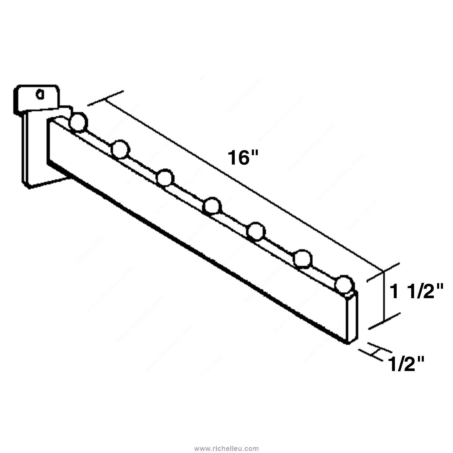 Richelieu 92807140 Waterfall Bracket is a versatile and stylish solution for your slatwall panel needs. Designed with functionality in mind, this bracket features an elegant chrome finish that not only enhances the aesthetic of your space but also offers durability. Measuring 16 inches in length and 1 1/2 inches in height, it provides ample support and easy access for displaying a variety of items. Equipped with seven hooks, the Waterfall Bracket maximizes vertical space, making it an ideal choice for retail environments, home organization, or exhibition setups. Each hook is designed to securely hold merchandise, ensuring that your displays are both attractive and practical. With a width of just 1/2 inch, this bracket seamlessly integrates into your existing slatwall panel, providing a clean, professional look. Shipping is convenient as the product can be sent via UPS, allowing for straightforward logistics. Whether you are a building professional looking to enhance a commercial space or a knowledgeable homeowner seeking to optimize storage solutions, the Richelieu Waterfall Bracket is an essential addition to your toolkit. Elevate your display capabilities with this functional and sophisticated hardware solution.