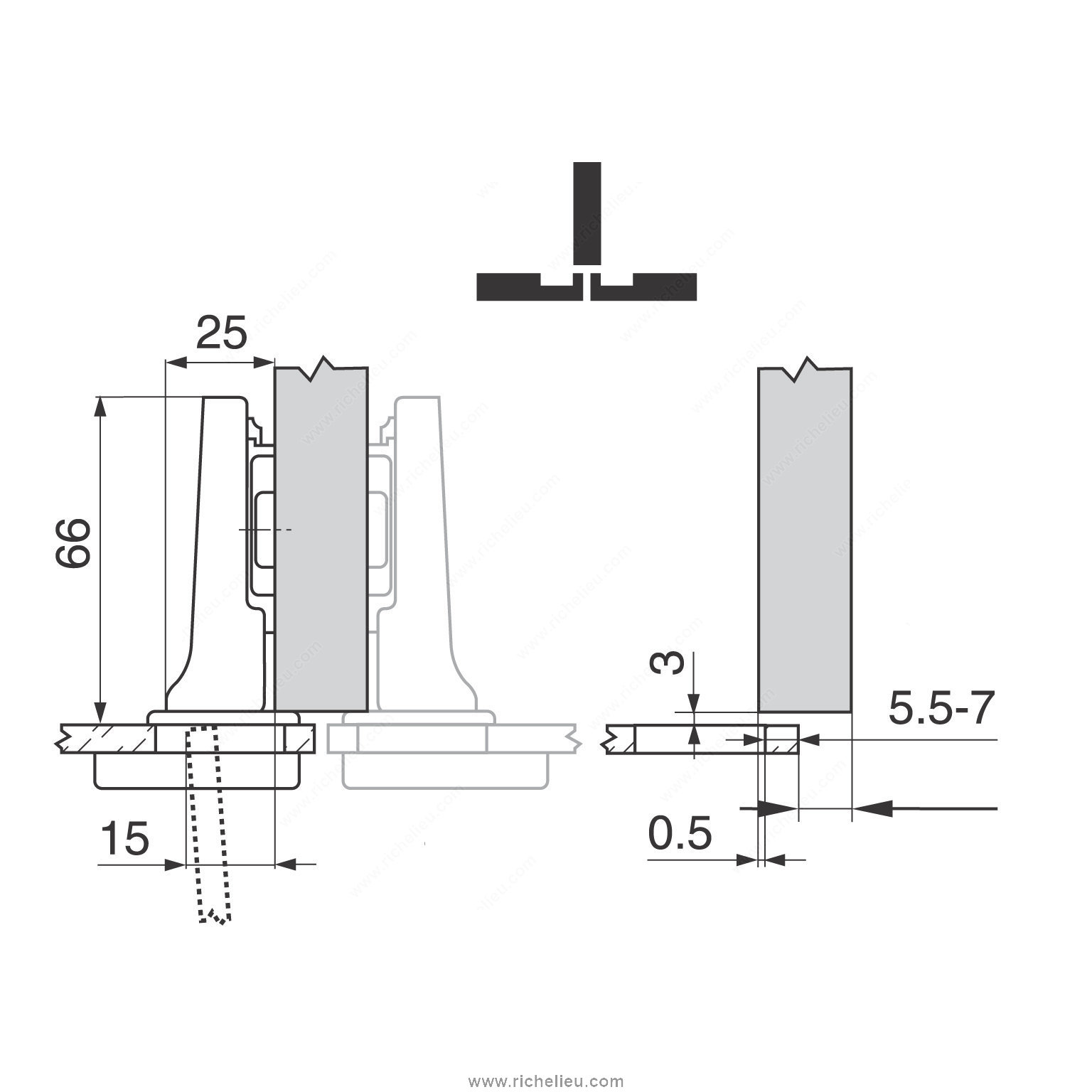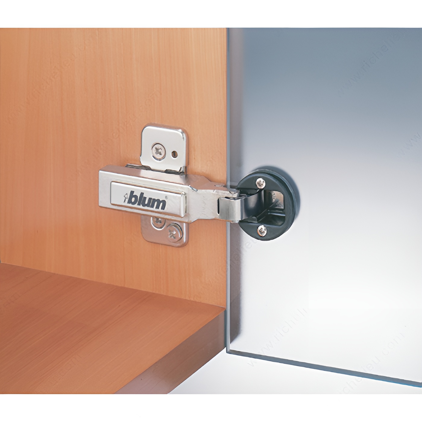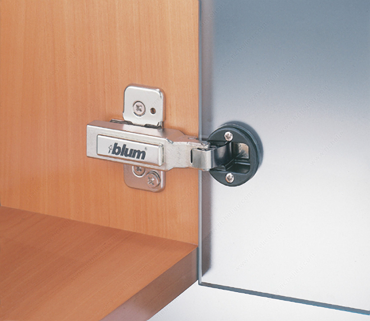 Richelieu 75M42090 94 Screw-On Glass Door Hinge - Self-Closing is designed for seamless integration in frameless cabinetry with twin overlay doors. This high-quality CLIP hinge offers a generous 94° opening angle, making it an ideal choice for maximizing accessibility to your glass doors. Crafted with a screw-on plastic case, this hinge not only provides stability but also features a spring-closing mechanism that ensures your doors shut effortlessly and securely. The hinge is finished in a sleek black color, adding a modern touch to any kitchen or display cabinet. Its adjustable design allows for three-dimensional adjustments, ensuring precise alignment and a perfect fit, accommodating cabinet thicknesses of a minimum of 5/8 inches and door thicknesses ranging from 3/16 to 9/32 inches. The milling diameter of 1 1/32 inches allows for easy installation, while its self-closing feature enhances user convenience. Whether you're a building professional or a knowledgeable homeowner, the Richelieu 75M42090 hinge combines functionality with aesthetic appeal, making it a reliable choice for all glass door applications. With UPS shipping available, you can easily incorporate this essential hardware into your next project.