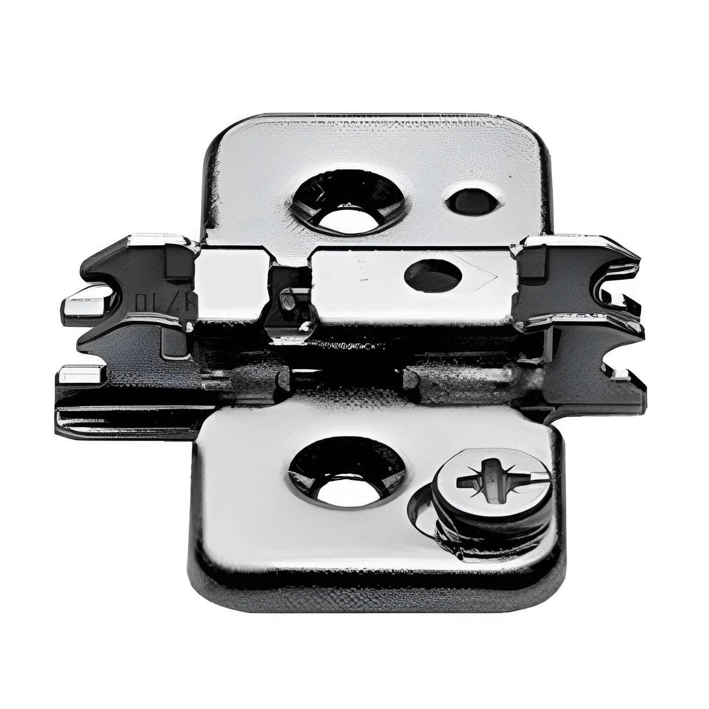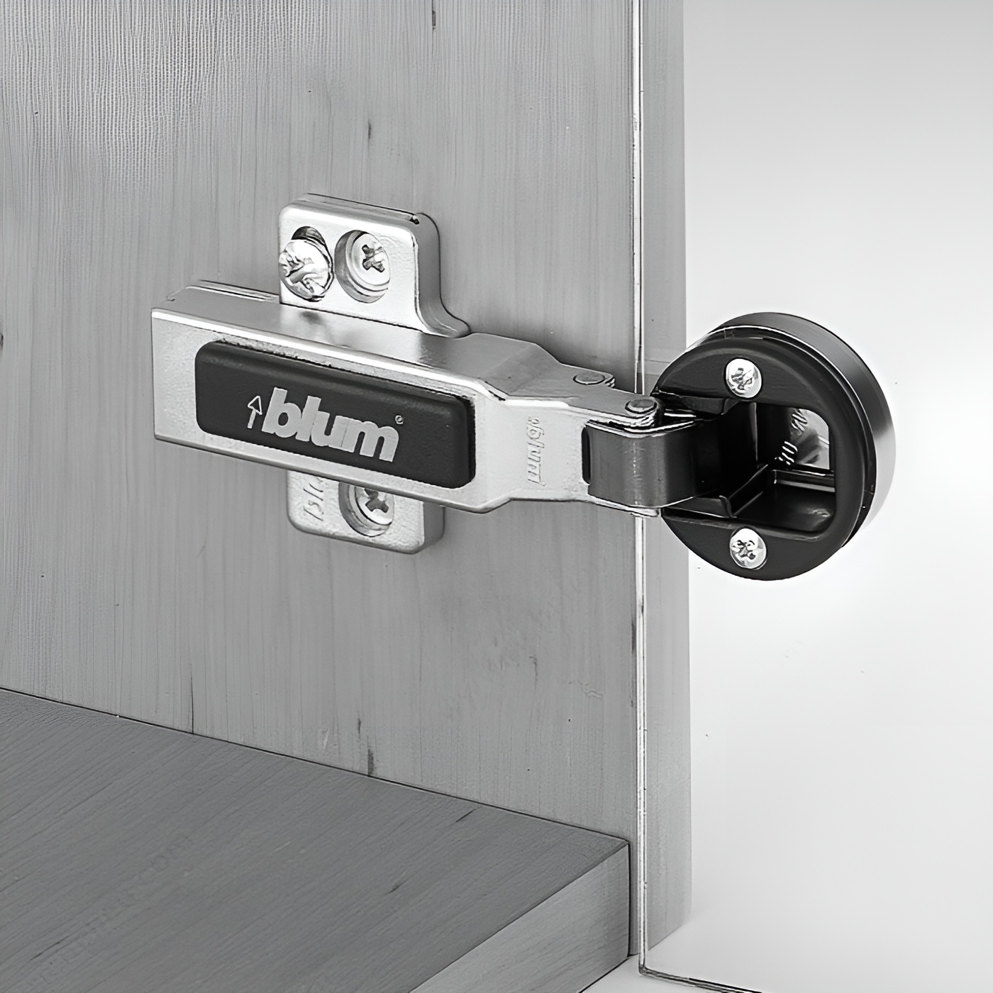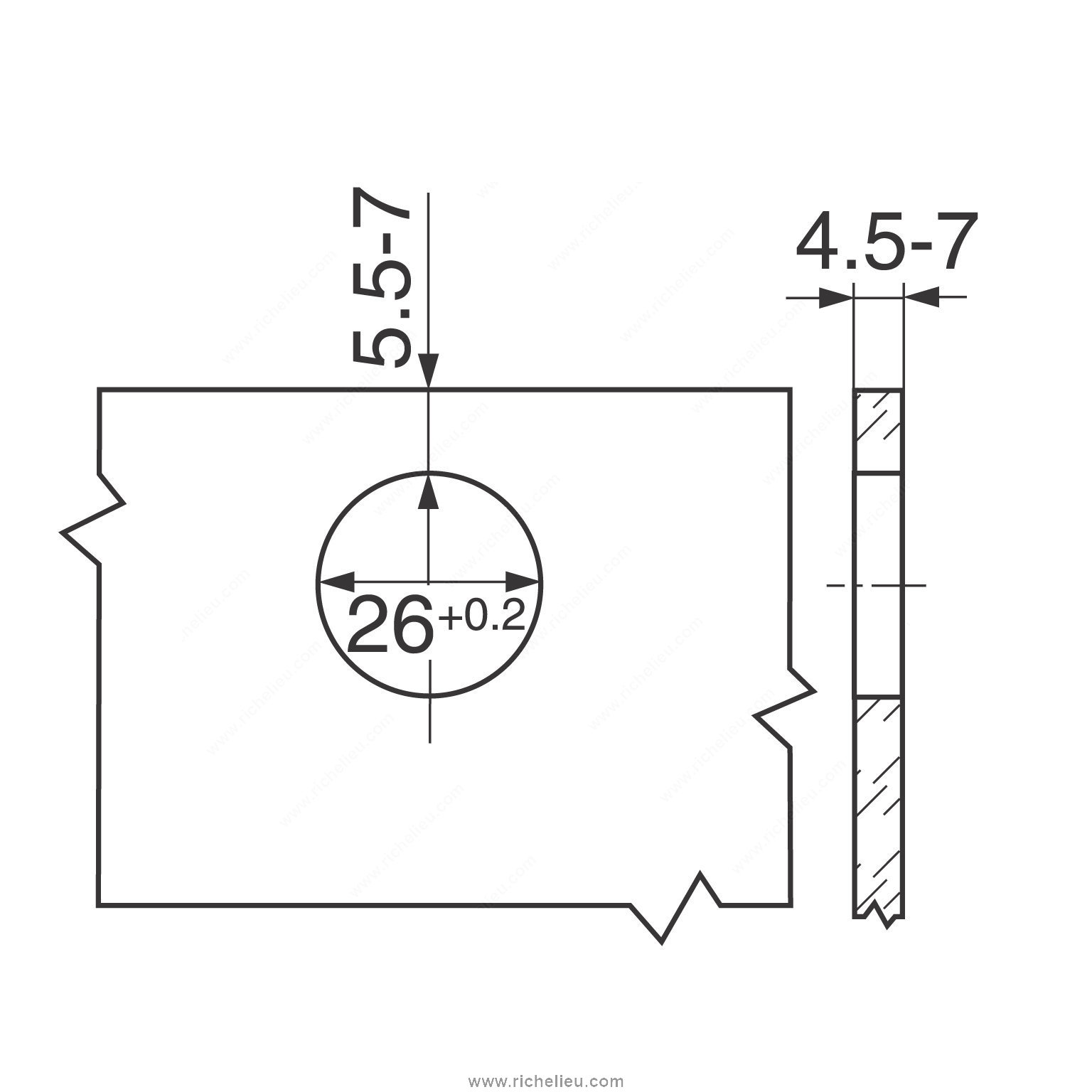 Richelieu 75M42090 94 Screw-On Glass Door Hinge - Self-Closing is designed for seamless integration in frameless cabinetry with twin overlay doors. This high-quality CLIP hinge offers a generous 94° opening angle, making it an ideal choice for maximizing accessibility to your glass doors. Crafted with a screw-on plastic case, this hinge not only provides stability but also features a spring-closing mechanism that ensures your doors shut effortlessly and securely. The hinge is finished in a sleek black color, adding a modern touch to any kitchen or display cabinet. Its adjustable design allows for three-dimensional adjustments, ensuring precise alignment and a perfect fit, accommodating cabinet thicknesses of a minimum of 5/8 inches and door thicknesses ranging from 3/16 to 9/32 inches. The milling diameter of 1 1/32 inches allows for easy installation, while its self-closing feature enhances user convenience. Whether you're a building professional or a knowledgeable homeowner, the Richelieu 75M42090 hinge combines functionality with aesthetic appeal, making it a reliable choice for all glass door applications. With UPS shipping available, you can easily incorporate this essential hardware into your next project.