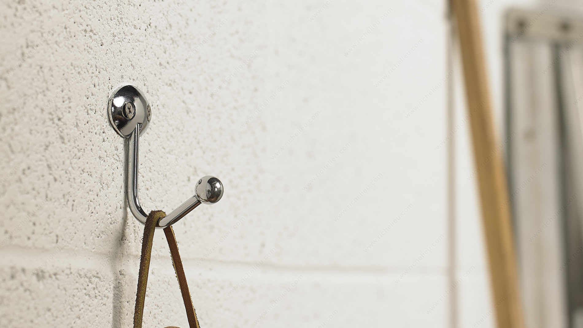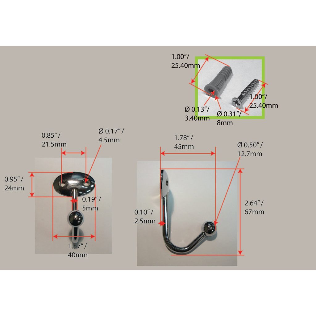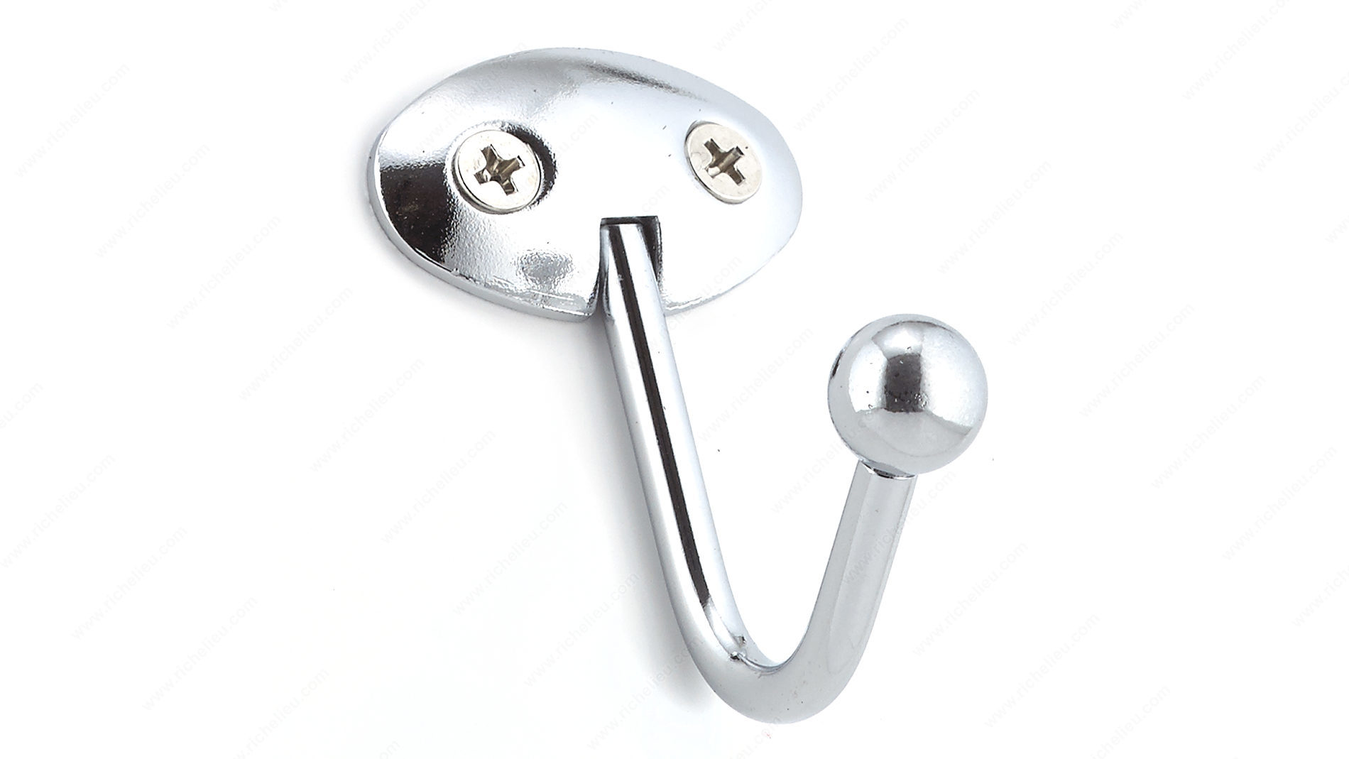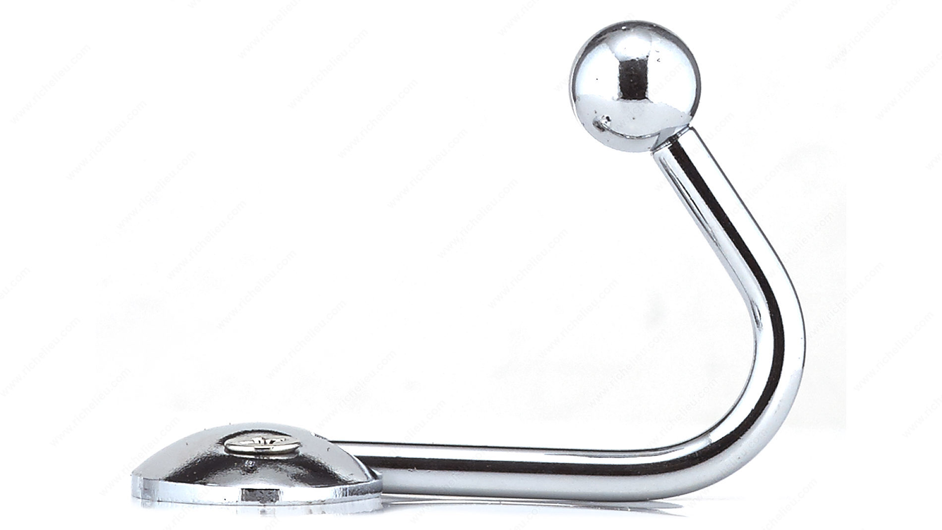 Richelieu 99847BAG Metal Utility Hook - 998 offers a blend of style and practicality, making it an essential addition to any home. This single wall scoop hook features a sleek chrome finish that adds a modern touch while seamlessly complementing a variety of decors, from contemporary to traditional. With a compact height of 2 5/8 inches and a width of 1 9/16 inches, this utility hook is designed for versatile use in spaces such as bedrooms, bathrooms, entryways, mudrooms, and closets. Constructed from durable metal, the Richelieu utility hook boasts a robust load capacity of 22 pounds, allowing it to securely hold coats, bags, or towels without concern. The overall projection of 1 25/32 inches means it fits neatly into your space, keeping items organized without taking up excessive room. Installation is straightforward, with screws included for added convenience, allowing you to quickly mount it on walls or doors as needed. Whether you need to declutter your entryway or organize a busy mudroom, the Richelieu 99847BAG Metal Utility Hook is a stylish and functional solution that brings order to any environment.