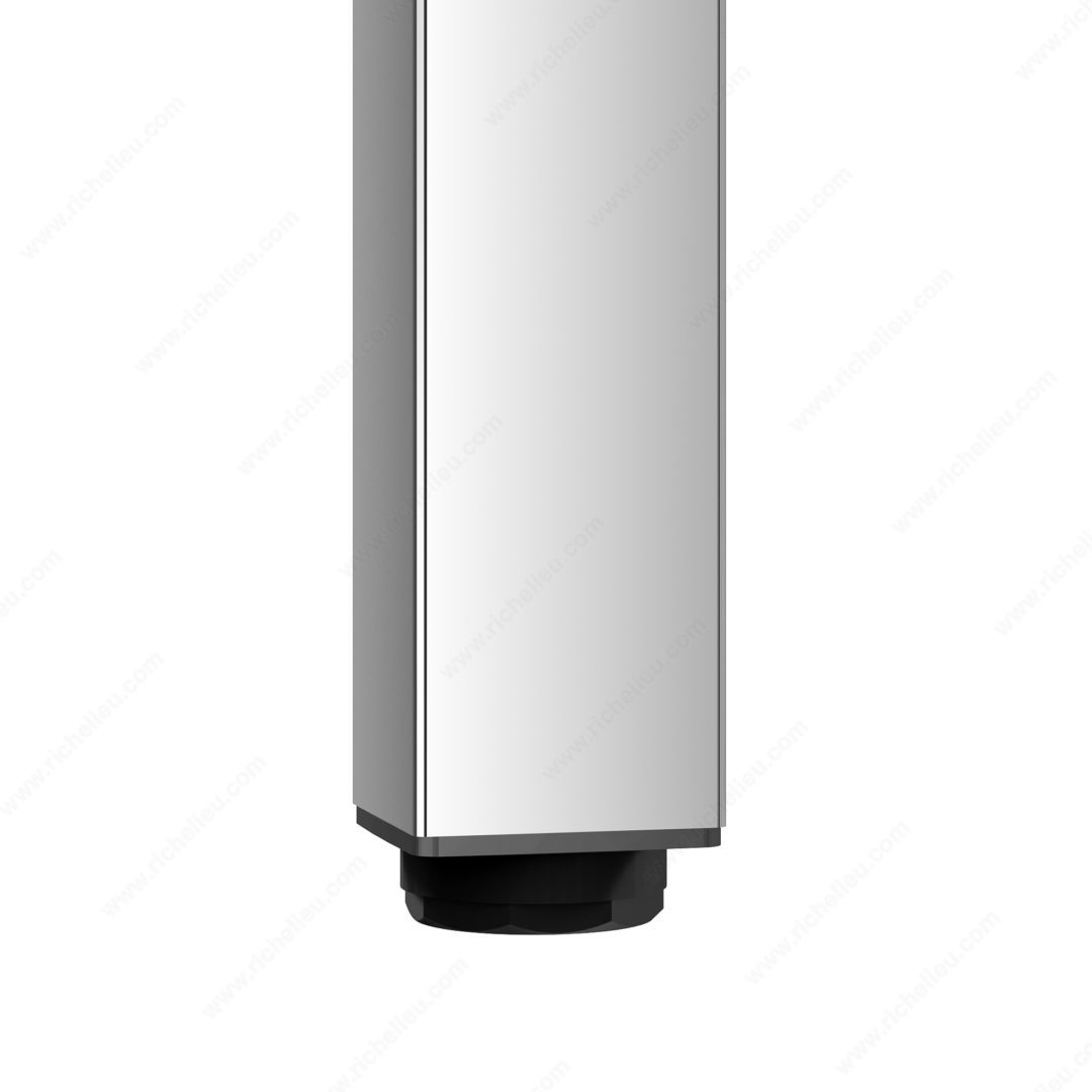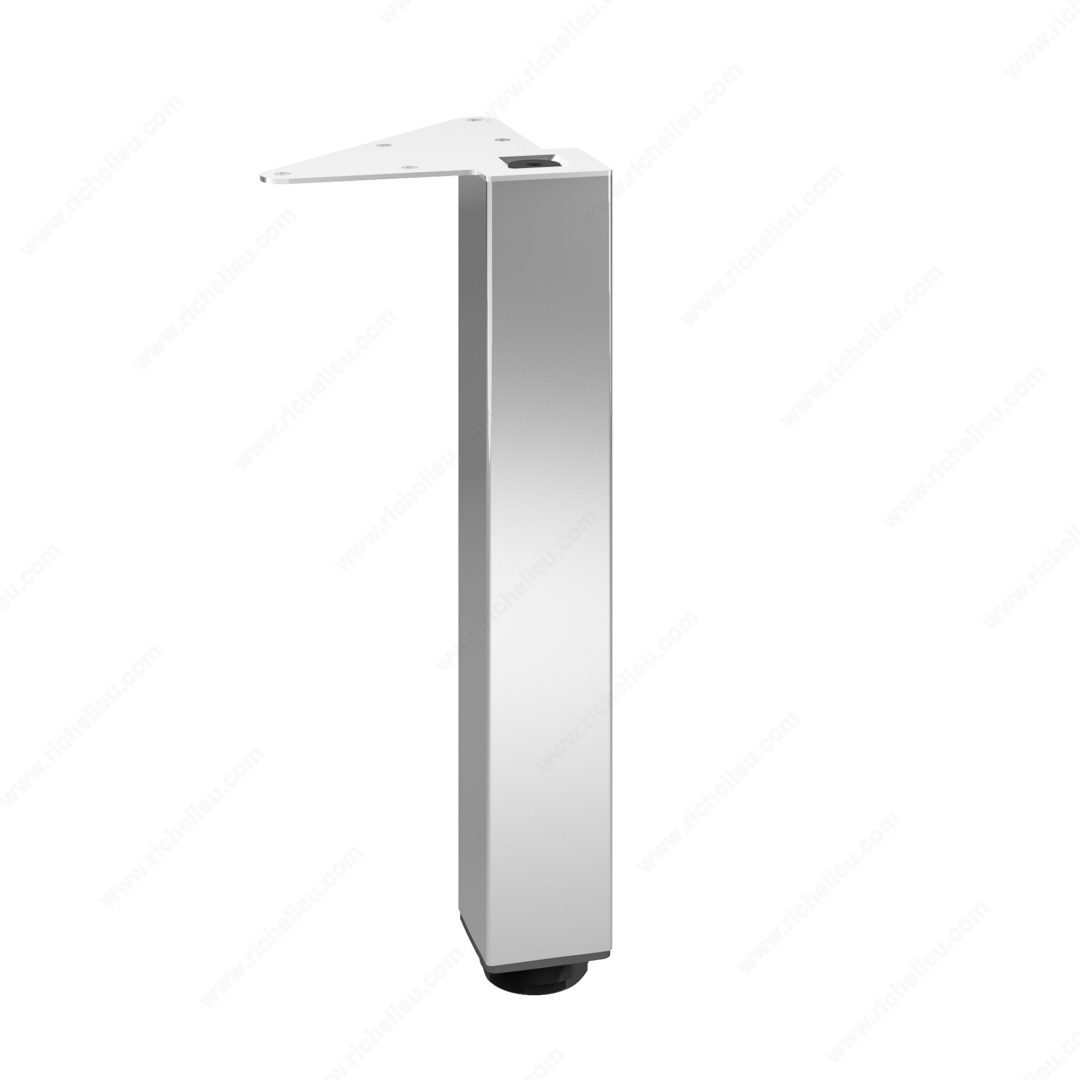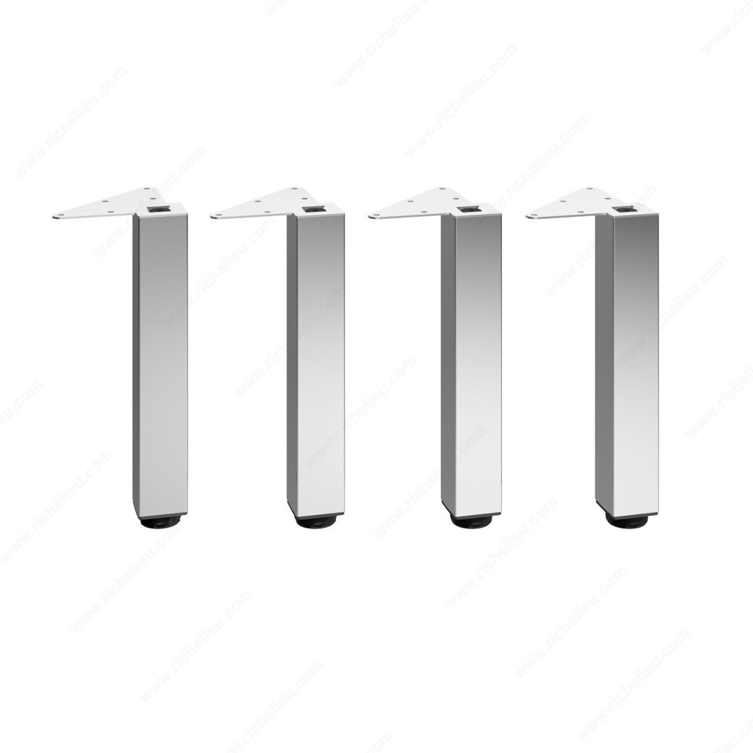 Richelieu 555300140 Adjustable Furniture Leg 555Richelieu 555300140 Adjustable Furniture Leg - 555 adds a touch of modern elegance to various spaces, including kitchens, bathrooms, living rooms, and bedrooms. Crafted from durable metal, these square furniture legs are designed to support a range of furnishings such as cabinets, sideboards, vanities, nightstands, and small tables, offering versatility for your design projects. Sold as a set of four, these heavy-duty legs are equipped with levelers that enable height adjustments of up to 3/4" to accommodate uneven floors, ensuring stability and a refined appearance. The legs can be mounted flush with the corners of your furniture, which enhances their sleek aesthetic. Each leg can support an impressive load capacity of 772 lbs, making them not only stylish but also practical. With a base dimension of 49 mm x 49 mm and a height of 11 3/4", these legs are available in a chrome finish that complements various design styles. Included in the package are mounting plates, bolts, and an Allen key for straightforward installation. Whether you’re revamping existing furniture or creating new pieces, Richelieu’s adjustable furniture legs offer the strength and adaptability you need.