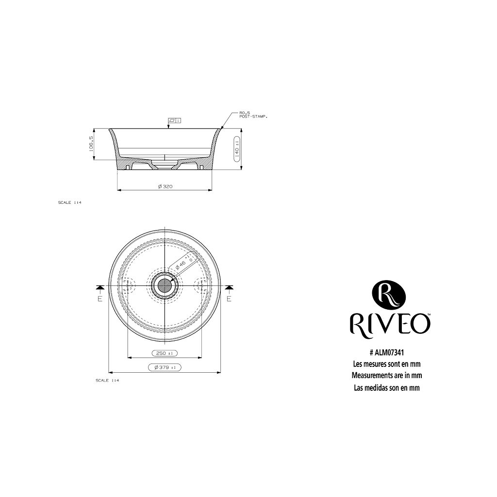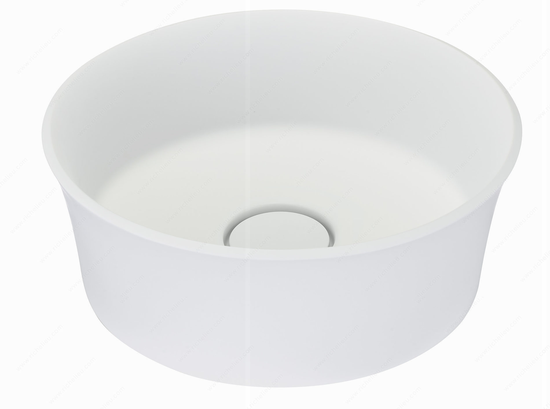 Richelieu ALM07341 Riveo Vessel - Round Alm07341 offers a sophisticated solution for modern bathrooms, marrying aesthetics and functionality seamlessly. Crafted from Mineralsolid, this vessel sink features a composite material that combines natural mineral fillers and resin, ensuring durability and a striking matte white finish. The technical coating not only enhances its elegant appearance but also provides optimal resistance and complete restorability of the surface, making it ideal for daily use. With dimensions of 14 7/8 inches in width and depth, and a total height of 5 1/2 inches, this round vessel sink is designed to fit comfortably on a vanity, adding a touch of contemporary flair to your space. Its visible height of 4 3/16 inches allows for an inviting and functional design without compromising on style. The ALM07341 model does not include an overflow, maintaining its sleek silhouette. Whether you're renovating a bathroom or designing a new space, the Richelieu Riveo Vessel is a perfect choice for washbasin solutions, enhancing the harmony of your decor. This product ships conveniently via UPS, ensuring a smooth delivery experience. Transform your bathroom with this elegant and practical vessel sink that reflects modern sophistication.