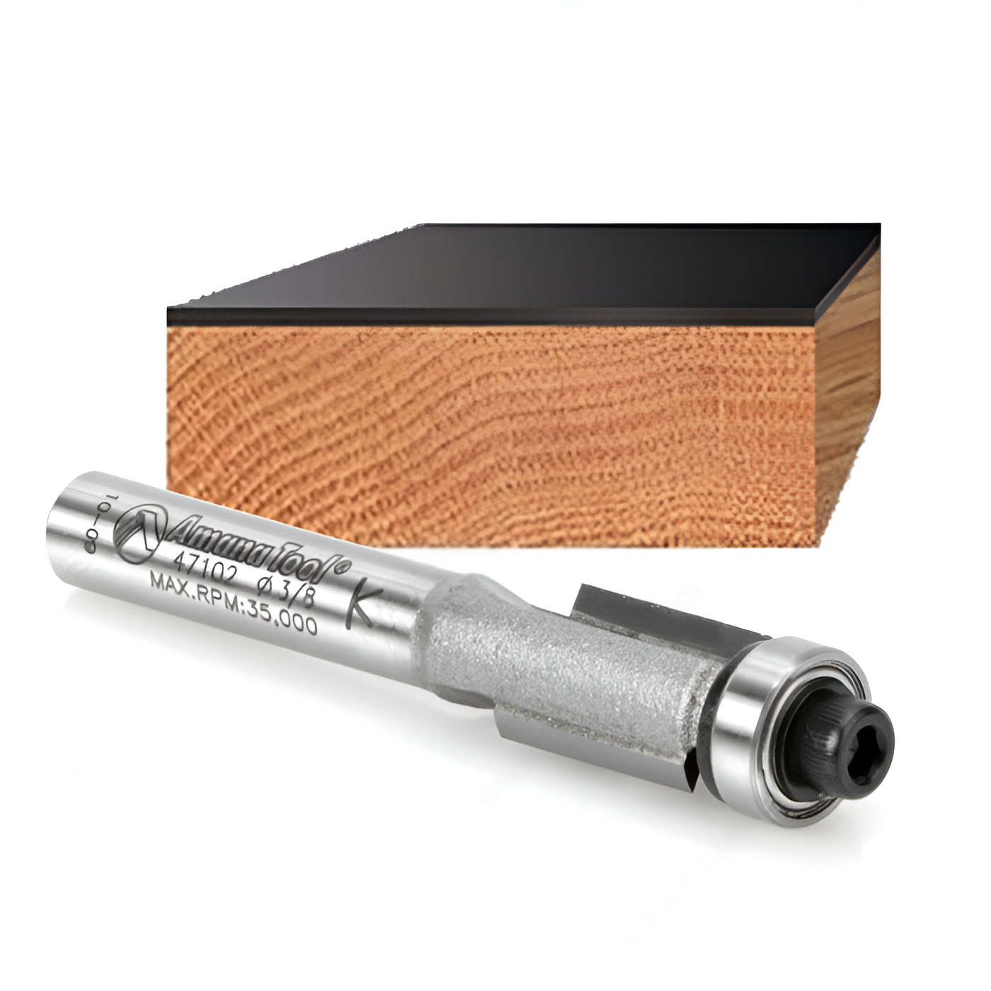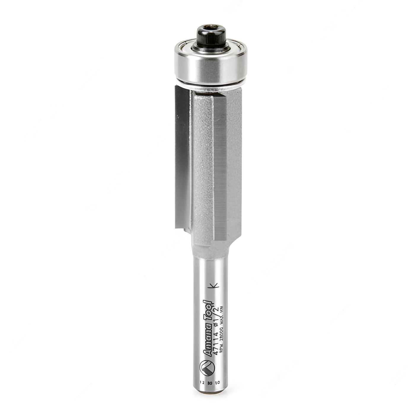 Richelieu AT47114 Flush Trim Bit is an essential tool for laminate work, template, and pattern applications. Designed for precision, this bit features a 1/2-inch cut diameter and a cutting height of 1 inch, allowing you to achieve clean edges and smooth finishes on various materials. The innovative 3-flute design enhances cutting efficiency and reduces vibration, making your trimming tasks more manageable and accurate. When utilizing the Richelieu AT47114, the bearing follows your template, ensuring that your cutting edges trim the workpiece precisely. Whether using a handheld router or a table-mounted router, the bit adapts seamlessly to your setup, providing optimal performance with both configurations. Constructed from durable carbide-tipped material, this flush trim bit promises longevity and reliability for all your woodworking projects. With an overall length of 2 5/8 inches and a 1/4-inch shank, the Richelieu AT47114 is compatible with a wide range of routers, making it a versatile addition to your toolkit. Ideal for both professional builders and knowledgeable DIY enthusiasts, this flush trim bit ensures that your projects are completed with the highest quality craftsmanship. Experience the difference in your woodworking endeavors with this reliable and efficient trimming solution.