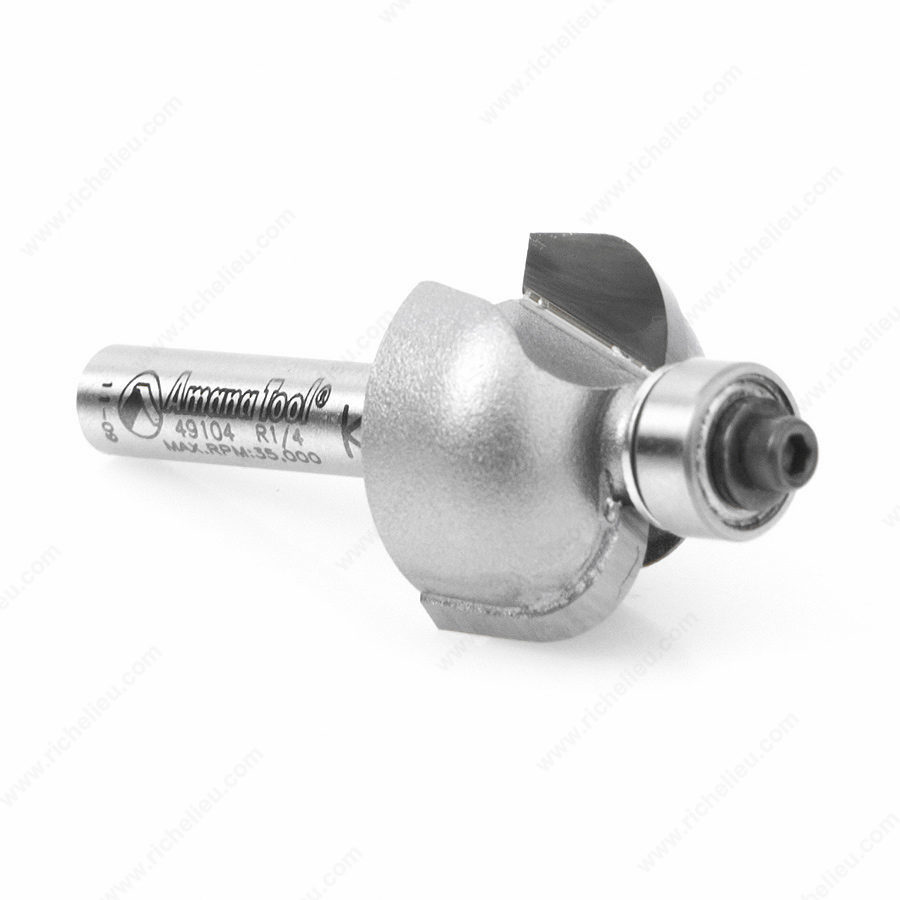 Richelieu AT49104 Cove Bit is an essential tool for any woodworker looking to enhance their crafting capabilities with precision and style. Designed to create the classic covetto form, this bit is ideal for profiling edges on casework, doors, drawers, and more. Its versatility allows it to be used alone or in conjunction with beads and fillets to achieve intricate molding profiles. Additionally, it plays a crucial role in creating the rule joint found on drop-leaf tables. Constructed with a carbide-tipped design, the AT49104 ensures durability and longevity, making it a reliable choice for both handheld and table-mounted routers. With a cut profile radius of 1/4 inch and a diameter of 7/8 inch, this bit delivers clean and precise cuts. It is important to remember that for optimal results, especially with larger radius applications, a preliminary cut with a smaller radius bit is recommended. Running the bit at reduced speeds will further enhance its performance and extend tool life. Whether you are a professional woodworker or a dedicated DIY enthusiast, the Richelieu AT49104 Cove Bit is a valuable addition to your toolkit, enhancing your ability to create beautiful, detailed finishes.