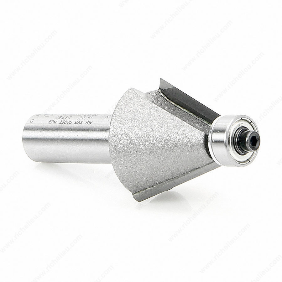 Richelieu AT49410 Chamfer Bit is expertly designed to elevate your woodworking projects with precision and finesse. This versatile tool allows you to chamfer or bevel edges, creating decorative effects or forming clean edge miter joints that enhance the overall aesthetic of your work. With the ability to produce crisp, uniform edges at accurate angles, this bit is ideal for crafting 4-, 6-, 8-, 12-, or even 16-sided boxes, ensuring that your designs are both attractive and structurally sound. Crafted with a carbide-tipped material, the AT49410 guarantees durability and long-lasting performance, making it a reliable choice for both professionals and serious DIY enthusiasts. The bit features a cut diameter of 1 1/4 inches and operates at a 22.5° angle, perfect for profiling and rabbeting applications. Its overall length of 2 7/8 inches and 1/2 inch shank ensure compatibility with most router tables, allowing for optimal results. Shipping via UPS, this chamfer bit is not only efficient in performance but also convenient to obtain. Enhance your woodworking capabilities with the precision and reliability that the Richelieu AT49410 Chamfer Bit brings to your projects.