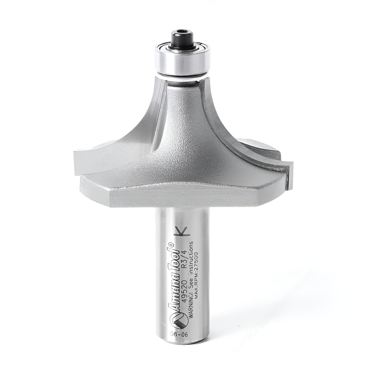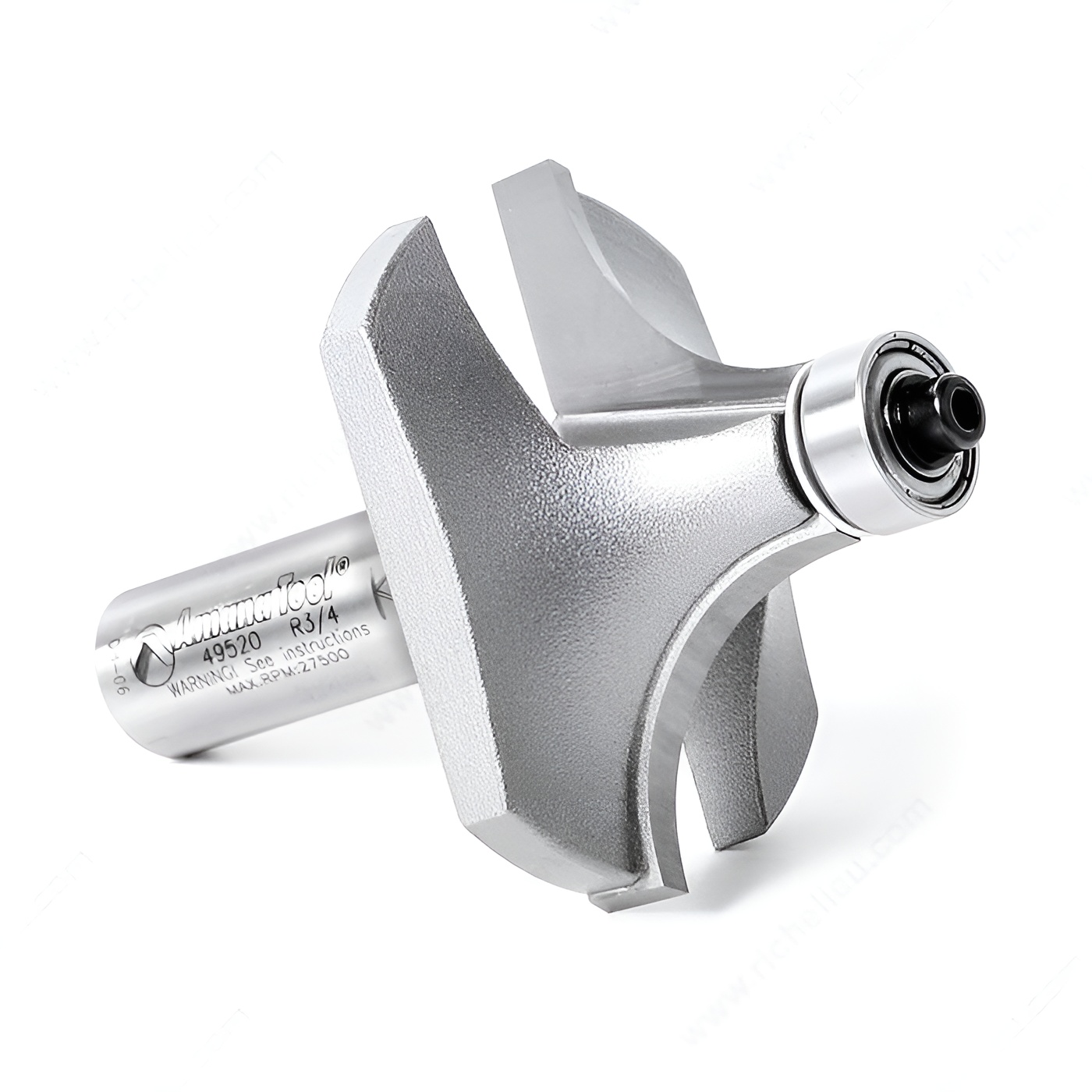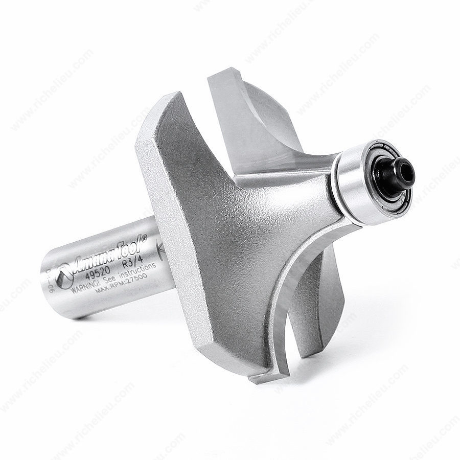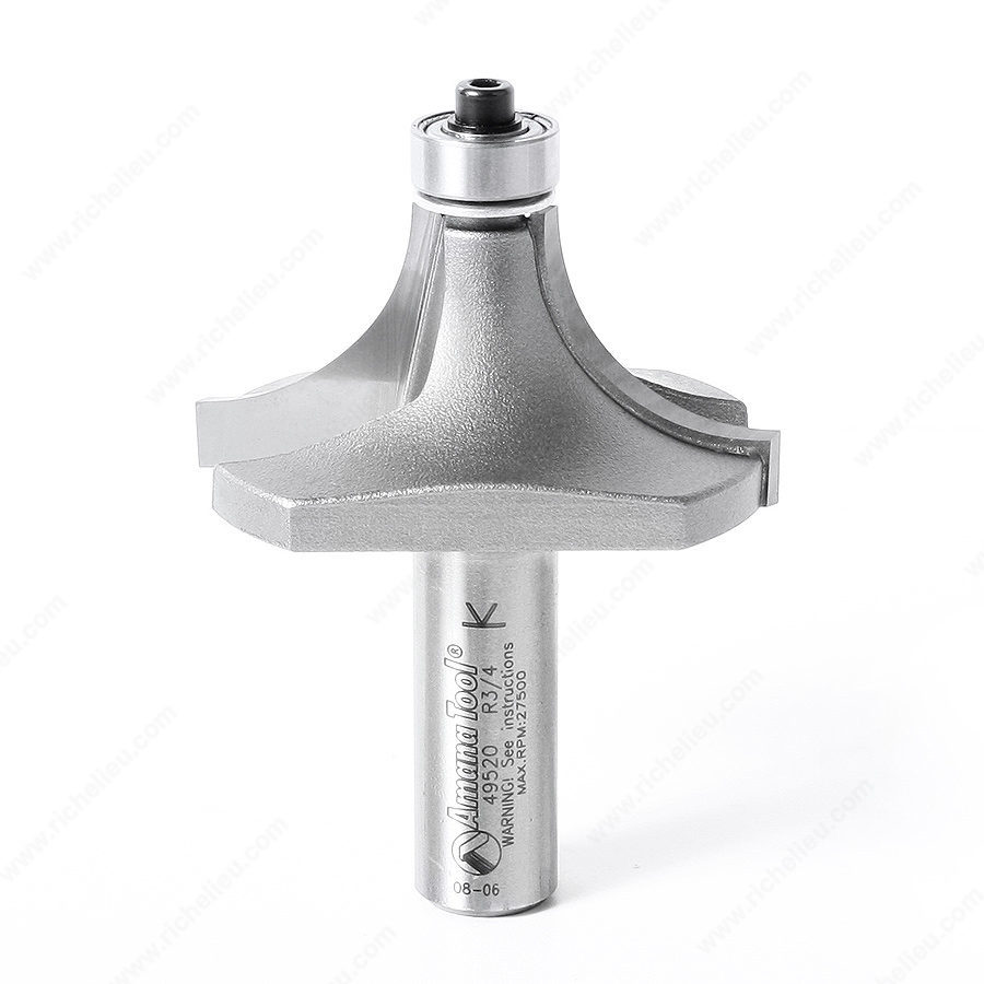 Richelieu AT49520 Corner Rounding Bit is a versatile tool designed for precision edge profiling. This basic edge-forming bit effectively rounds an edge to a specified radius, making it an essential accessory for any router. Crafted with a carbide-tipped design, the bit ensures durability and longevity, allowing for clean, efficient cuts in a variety of materials. With a diameter of 2 inches and a radius of 3/4 inch, the AT49520 is perfect for easing edges or creating simple profiles, as well as being a key component in more complex designs. Its shouldered design allows for cutting a fillet, adding versatility to your woodworking projects. If you choose to use a smaller pilot bearing, you can create a second shoulder, effectively transforming the bit into a beading bit for added detail. Measuring 2 7/8 inches in overall length and featuring a 1/2-inch shank, this corner rounding bit is compatible with standard routers, making it an easy addition to your toolkit. Ideal for both professional woodworkers and knowledgeable DIY enthusiasts, the Richelieu AT49520 Corner Rounding Bit will elevate your craftsmanship and enhance the quality of your finished projects.