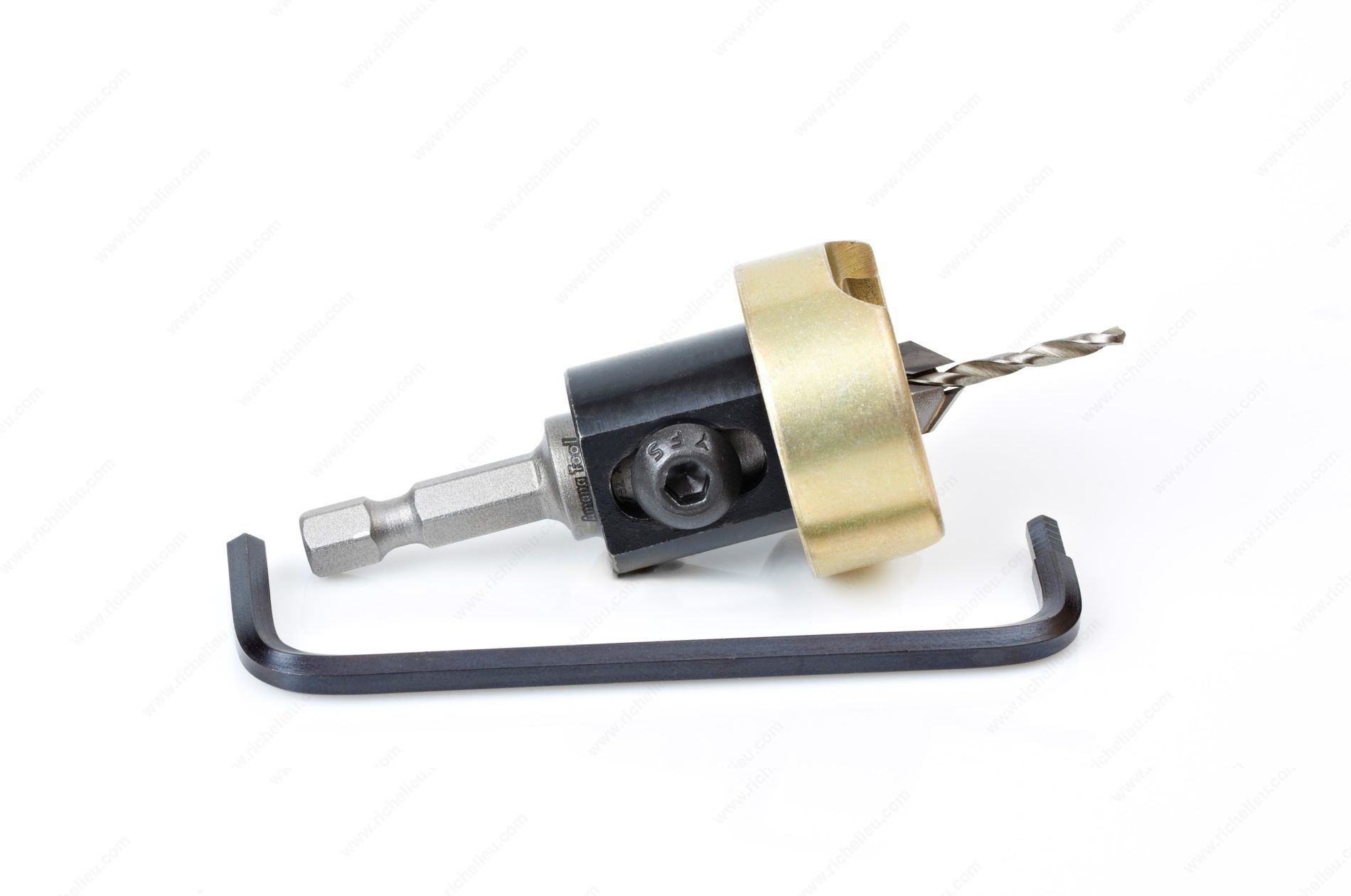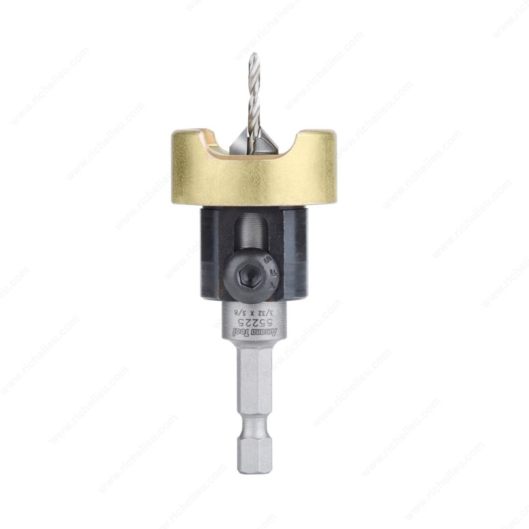 Richelieu AT55225 Carbide Tipped 82° countersink is engineered for precision and durability, making it an essential tool for any woodworking professional or discerning DIY enthusiast. This countersink features a carbide-tipped cutting edge, ensuring longevity and efficient performance even in the toughest materials. With an adjustable depth stop, it allows for consistent countersink depth, providing a clean and professional finish on every project. Designed to accommodate wood screw sizes of #4 (compatible with wood screw size 8), the countersink has a 49° angle, perfect for creating the ideal pilot hole for your screws. The 3/8-inch diameter and 3/32-inch (2.3 mm) drill bit size ensure versatility across a range of applications, while the overall length of 2 5/8 inches makes it easy to handle. The inclusion of a no-thrust ball bearing enhances smooth operation, minimizing the risk of wear and tear during use. With a shank diameter of 1/4 inch, the AT55225 is compatible with standard drill chucks, allowing for seamless integration into your toolset. This product is designed for professionals who demand quality and reliability in their tools, making it a must-have addition for your workshop.