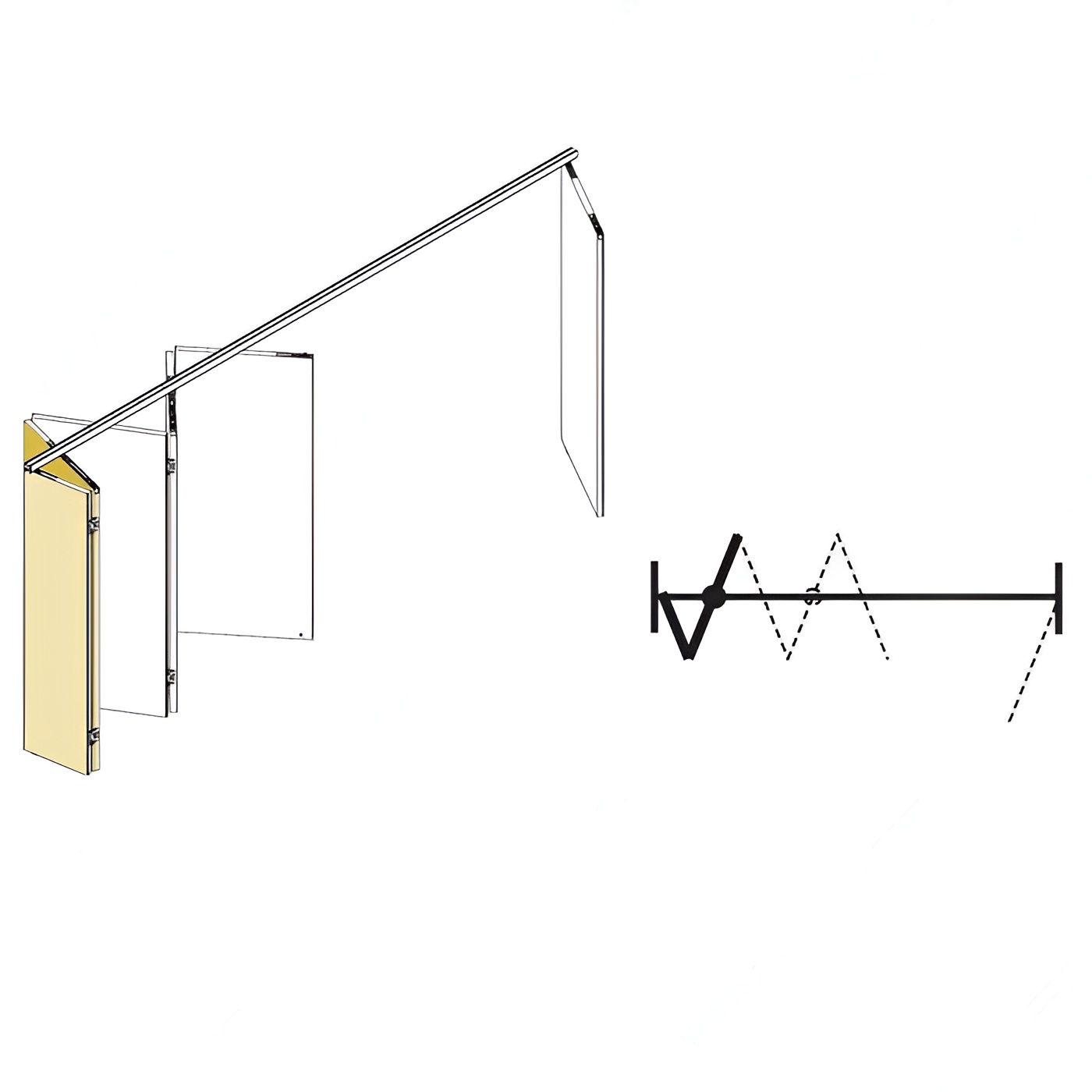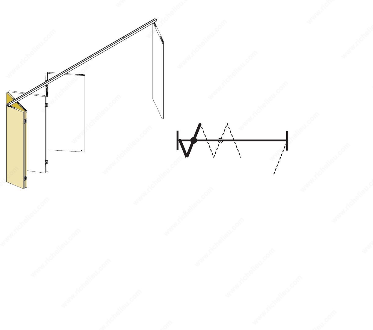Richelieu 65919535D10 Basic Set with Pivot 1 1/2 Panels - Centerfold 80H is an essential hardware solution designed for efficient door movement in various spaces. This basic set includes a pivot bearing (19535) specifically tailored for the Hawa Centerfold 80H system, ensuring smooth and reliable performance. Ideal for wood doors, this set accommodates a door thickness ranging from 1 3/8 to 1 25/32 inches, making it versatile for different applications. The system supports a door width between 19 5/8 to 35 3/8 inches, and it can handle a load capacity of up to 176 pounds, making it suitable for both residential and commercial environments. The center folding mechanism allows for seamless operation, providing a clean and modern aesthetic in any room. The track can be mounted either on the ceiling or recessed within the ceiling, offering flexibility in installation while maintaining a sleek appearance. With the capability to support one and a half doors, this hardware set is perfect for creating space-saving solutions without compromising on style or functionality. Elevate your interior design with the Richelieu 65919535D10 Basic Set, where quality meets practicality.